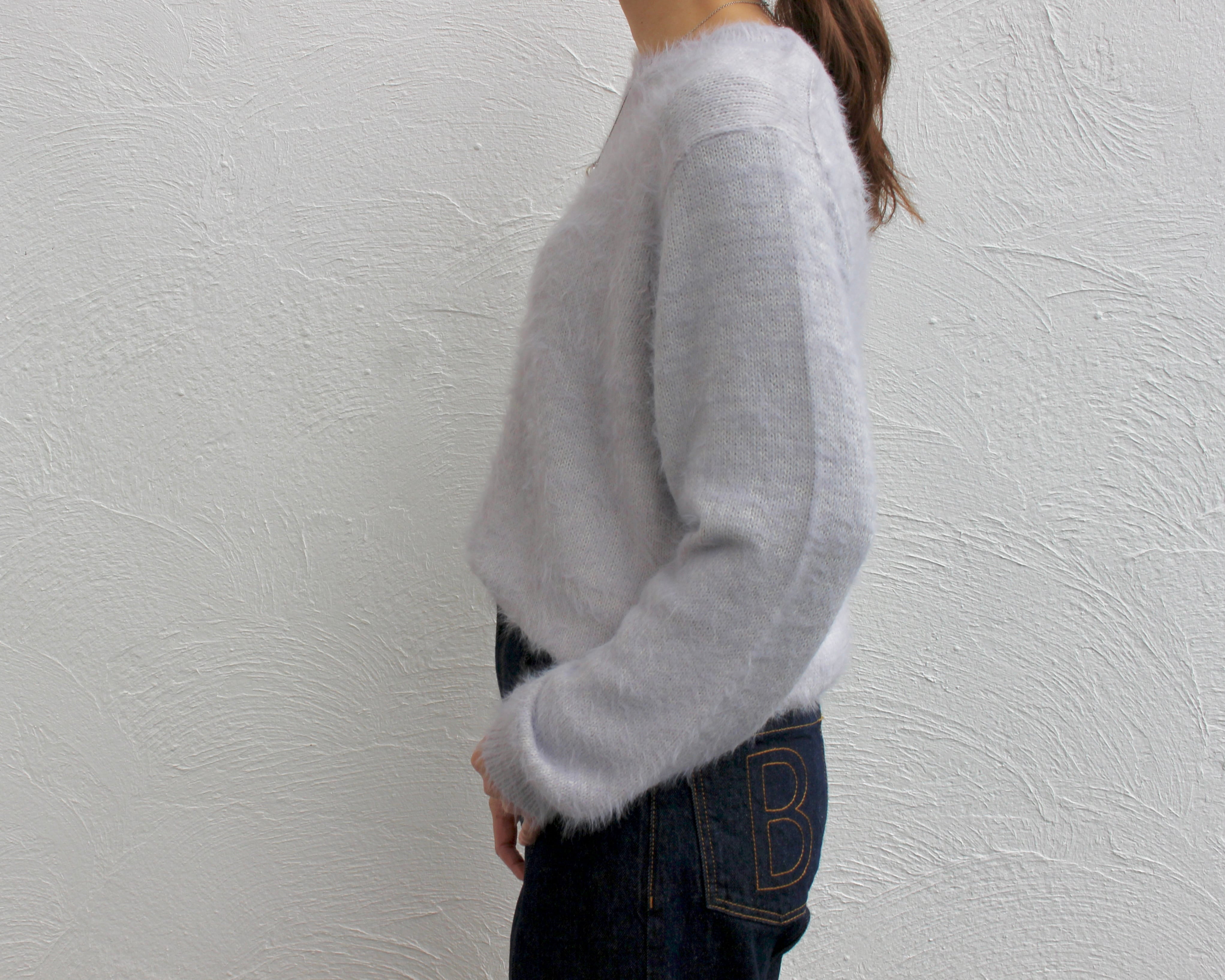 長い毛足がカジュアルなニットに華やかわを持たせ、