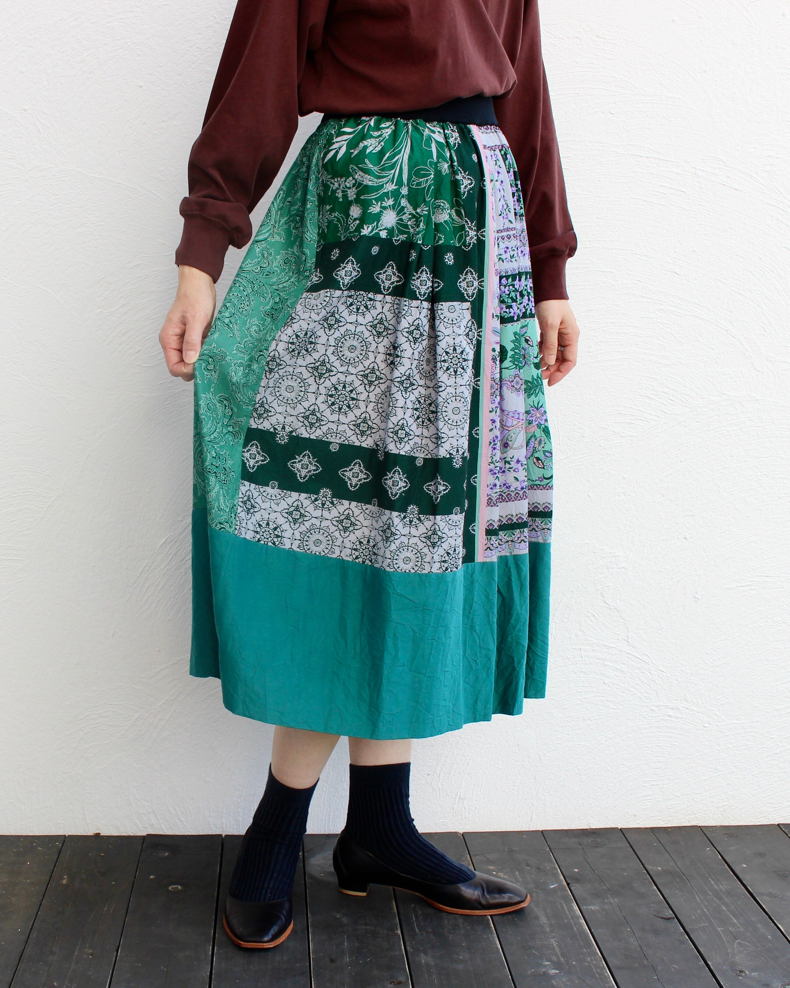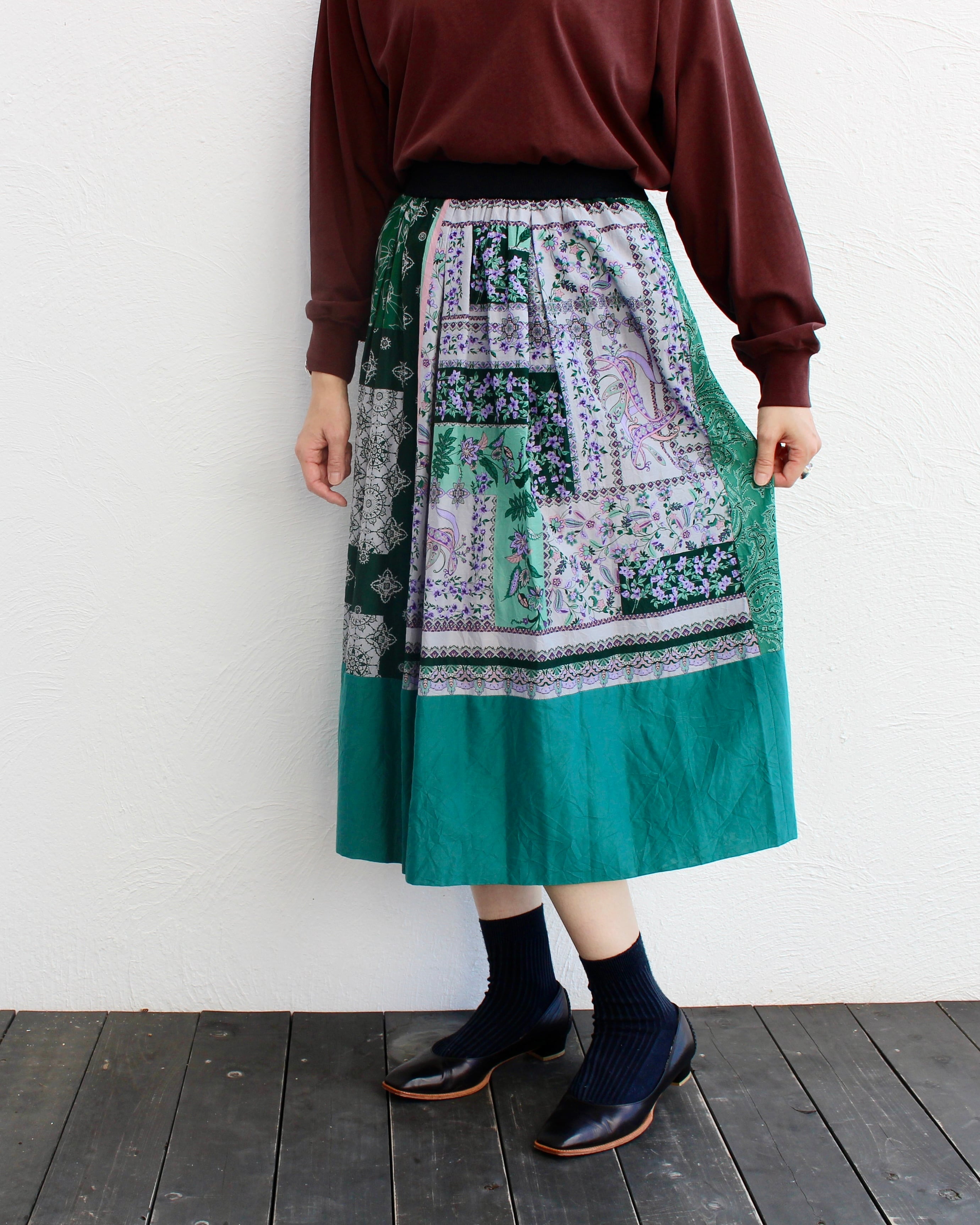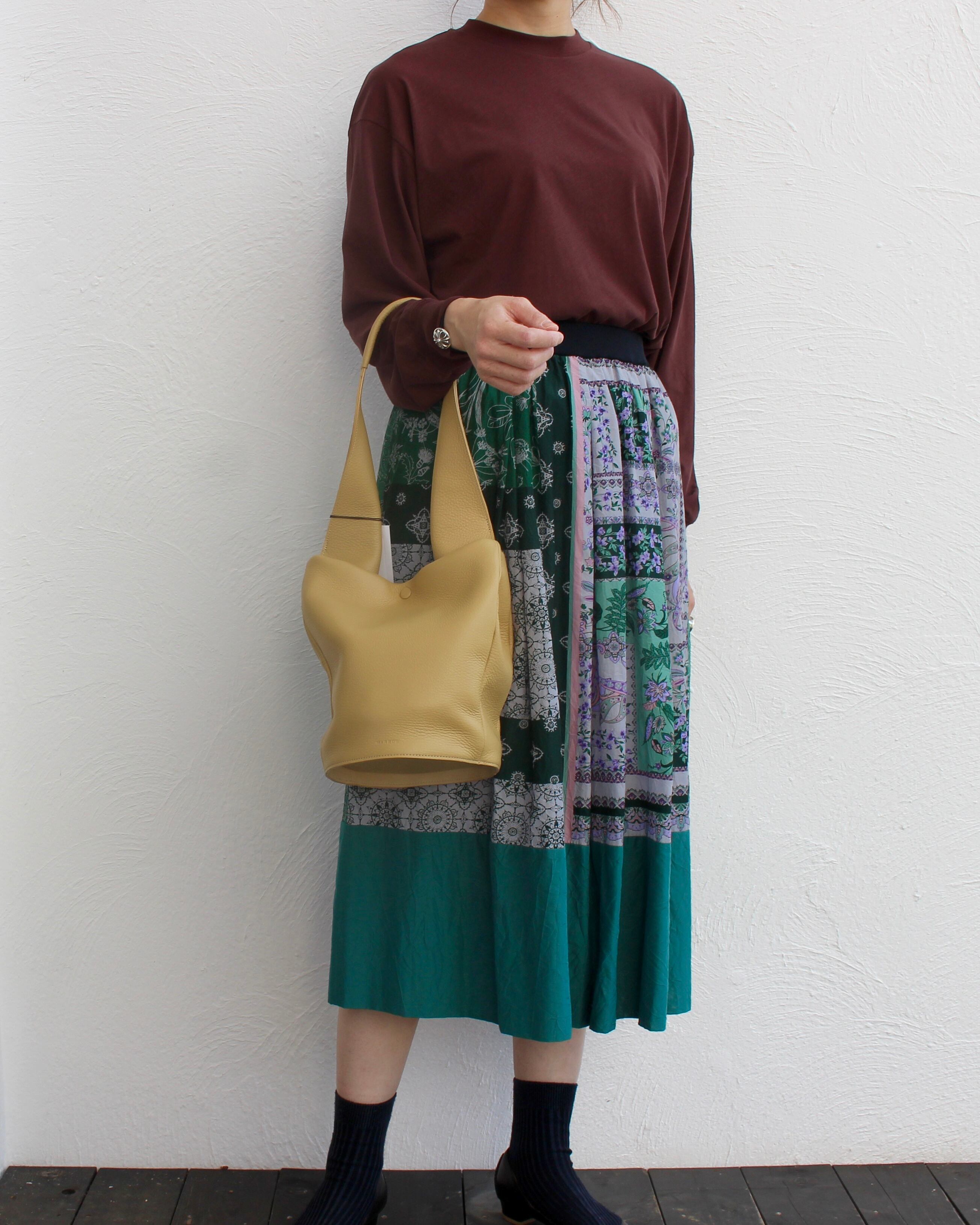 裾部分に無地素材を切り替えることで、プリントの際立つデザインに。