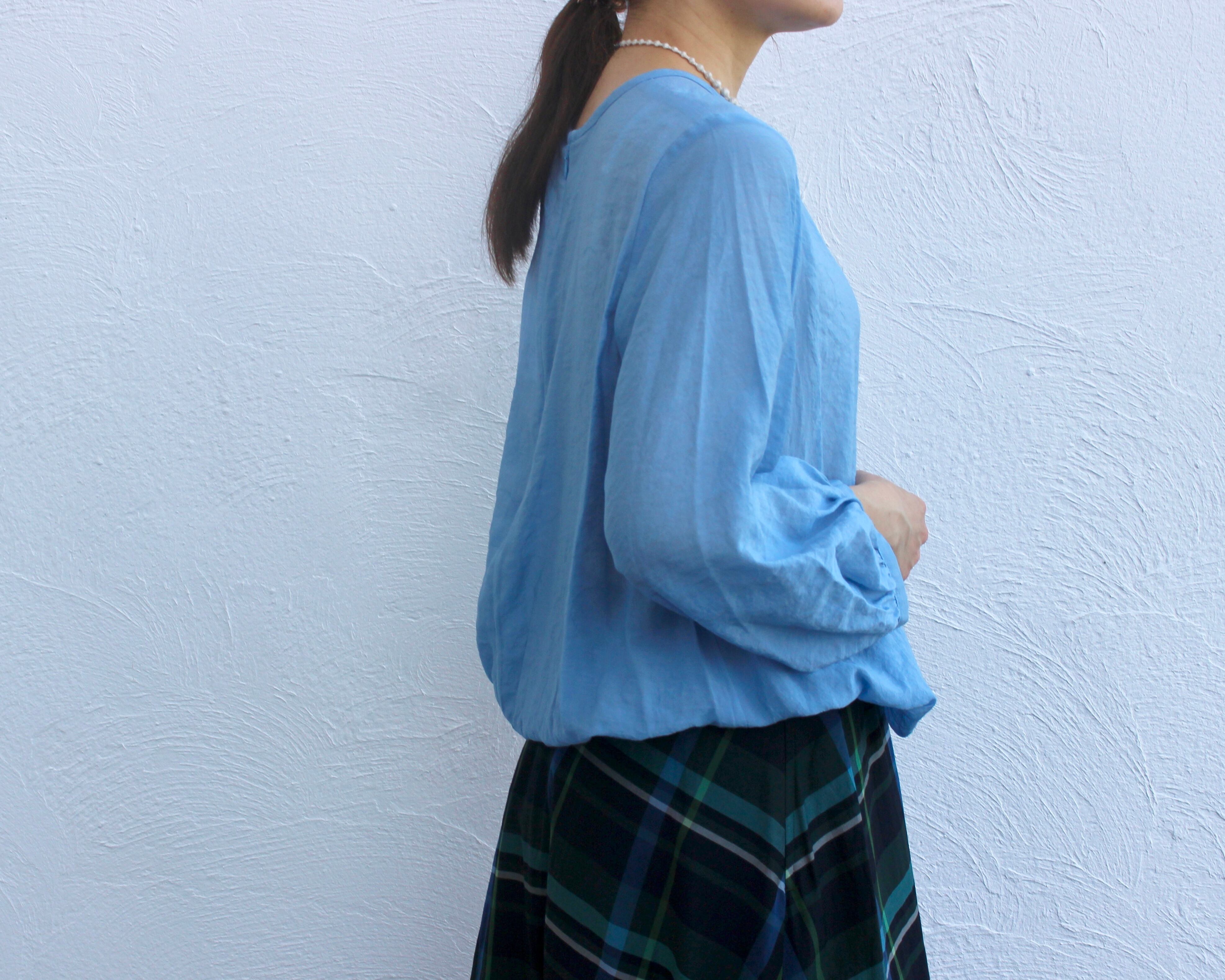 袖口・裾元にギャザーを効かせた女性らしいデザインのボリュームブラウス。