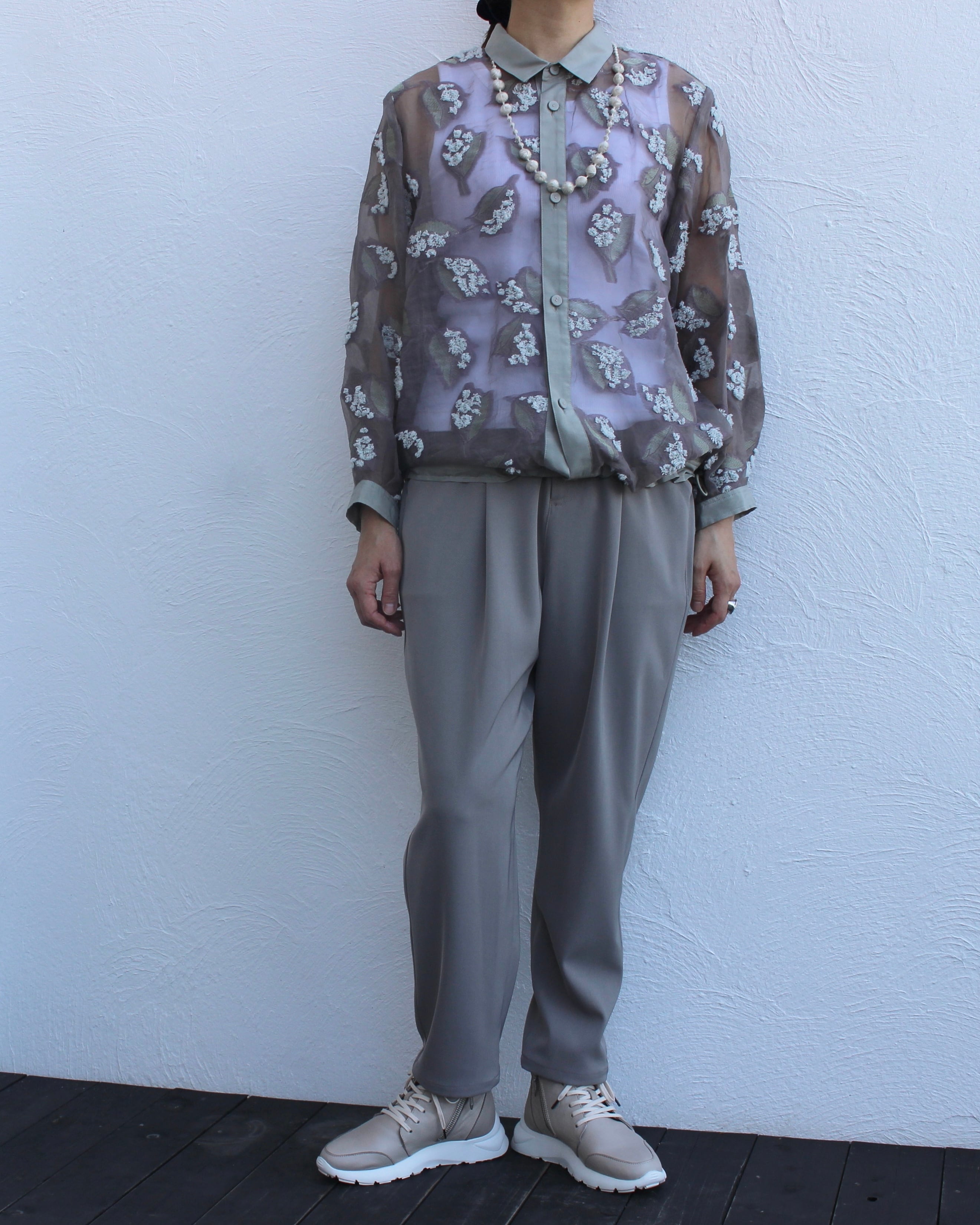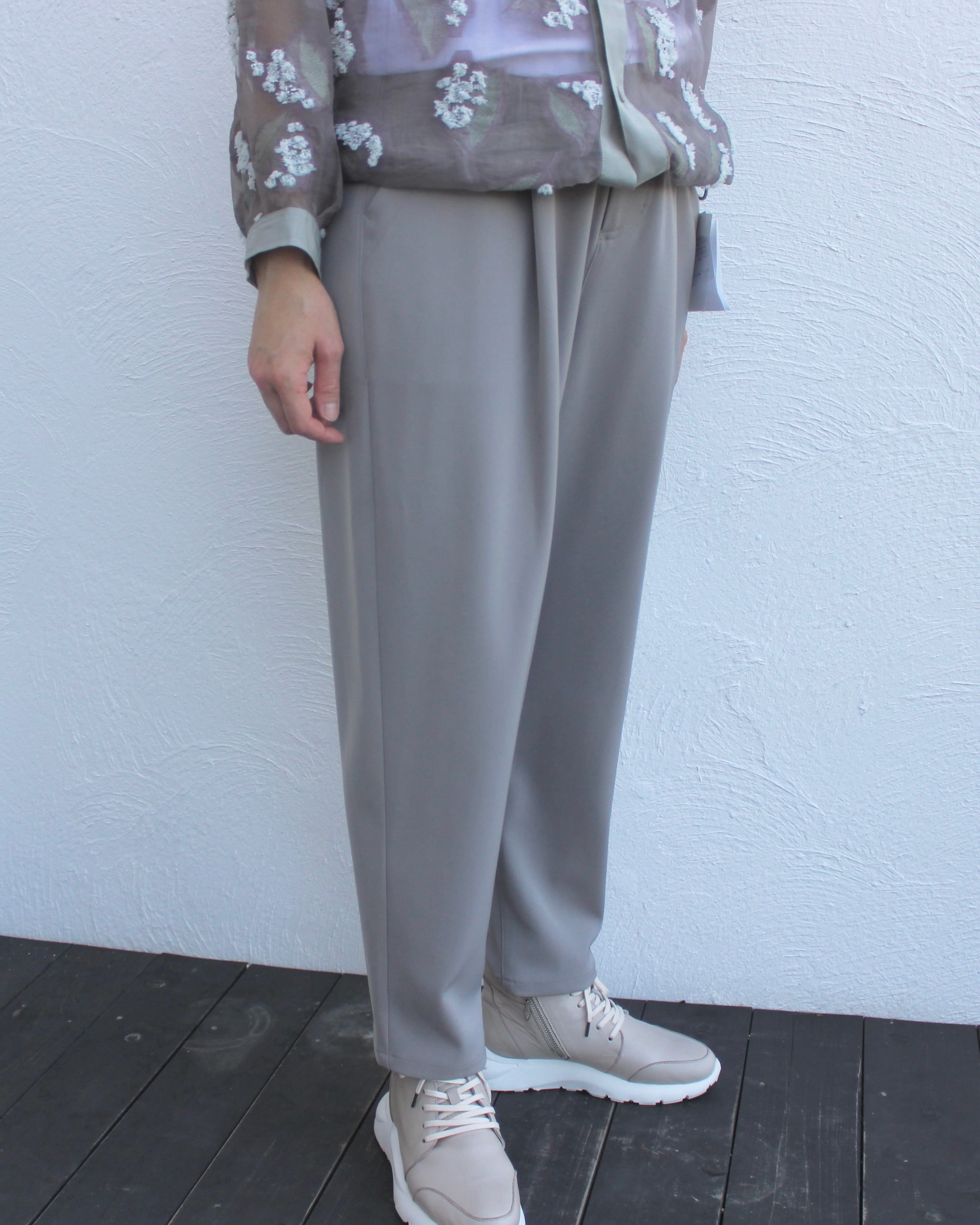 ゆとりがありながらもすっきりと見えるテーパードシルエットです。