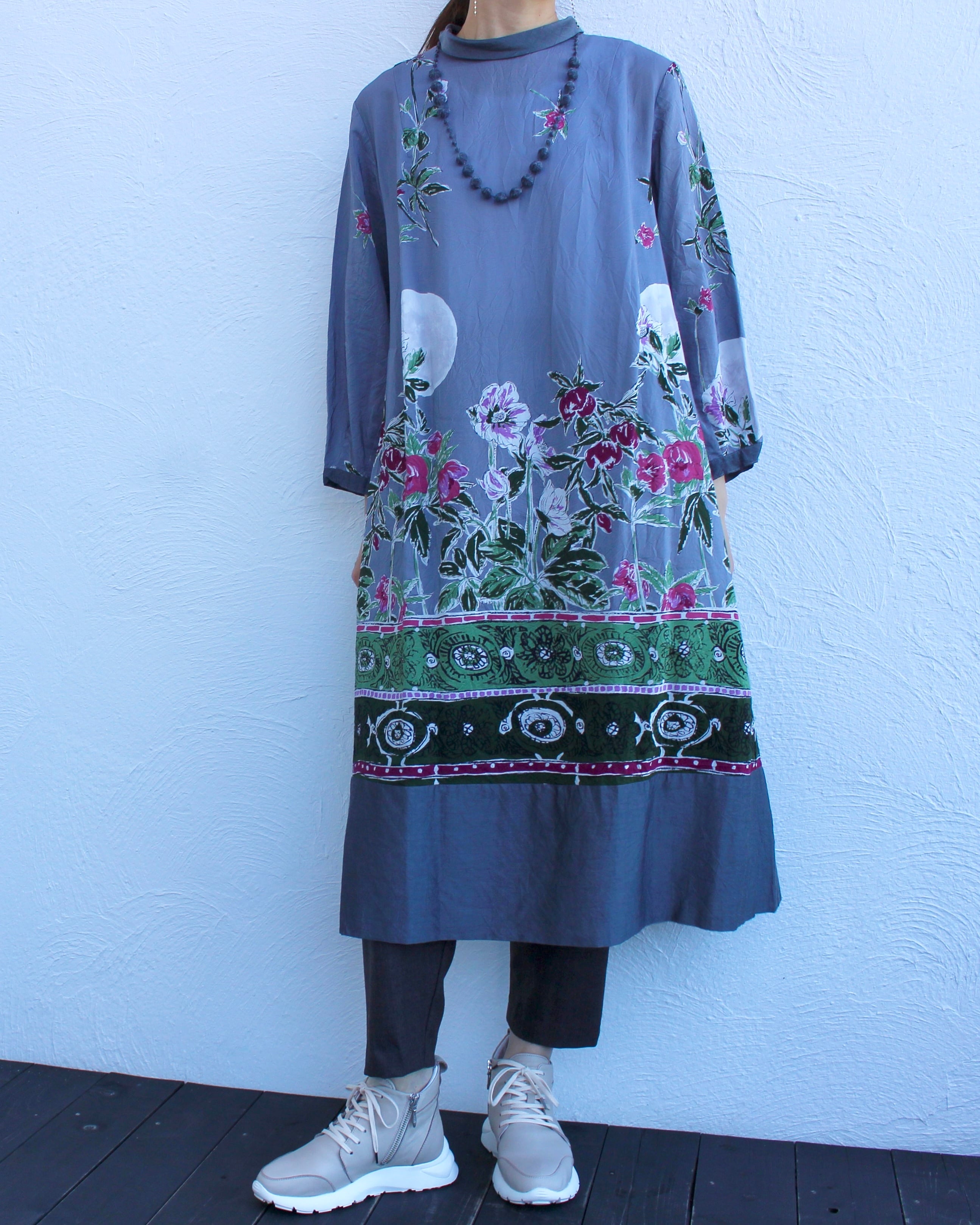 ブランドらしい月とお花の幻想的なプリントがダイナミックでエレガントなワンピース。