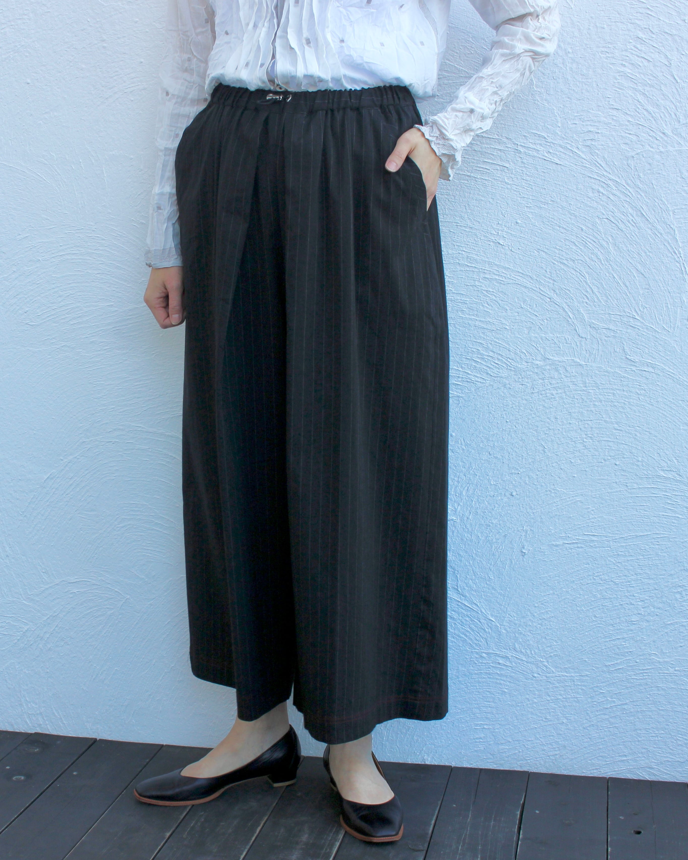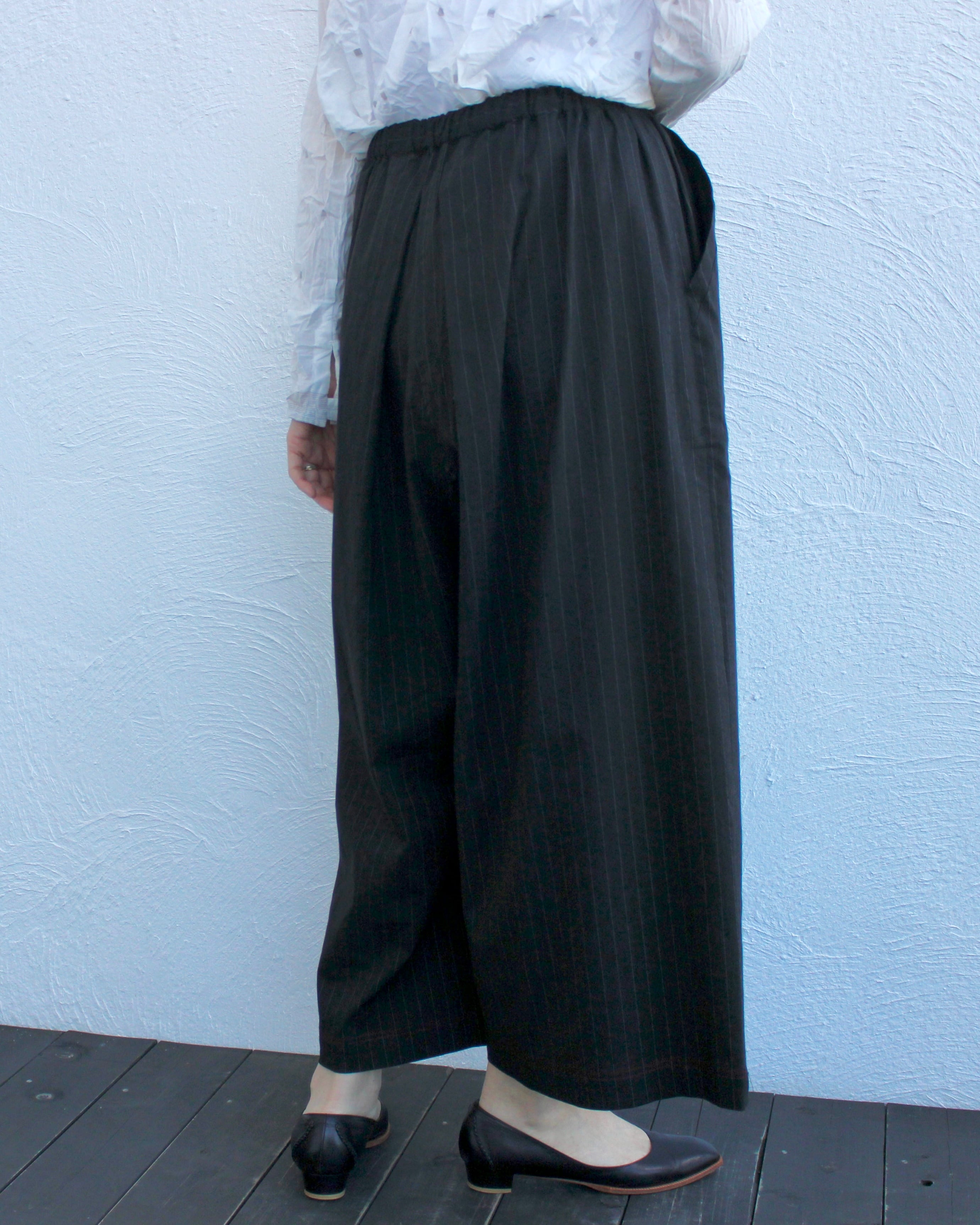 ふわっと広がったシルエットがロングスカートのようにも見える不思議なワイドパンツ。