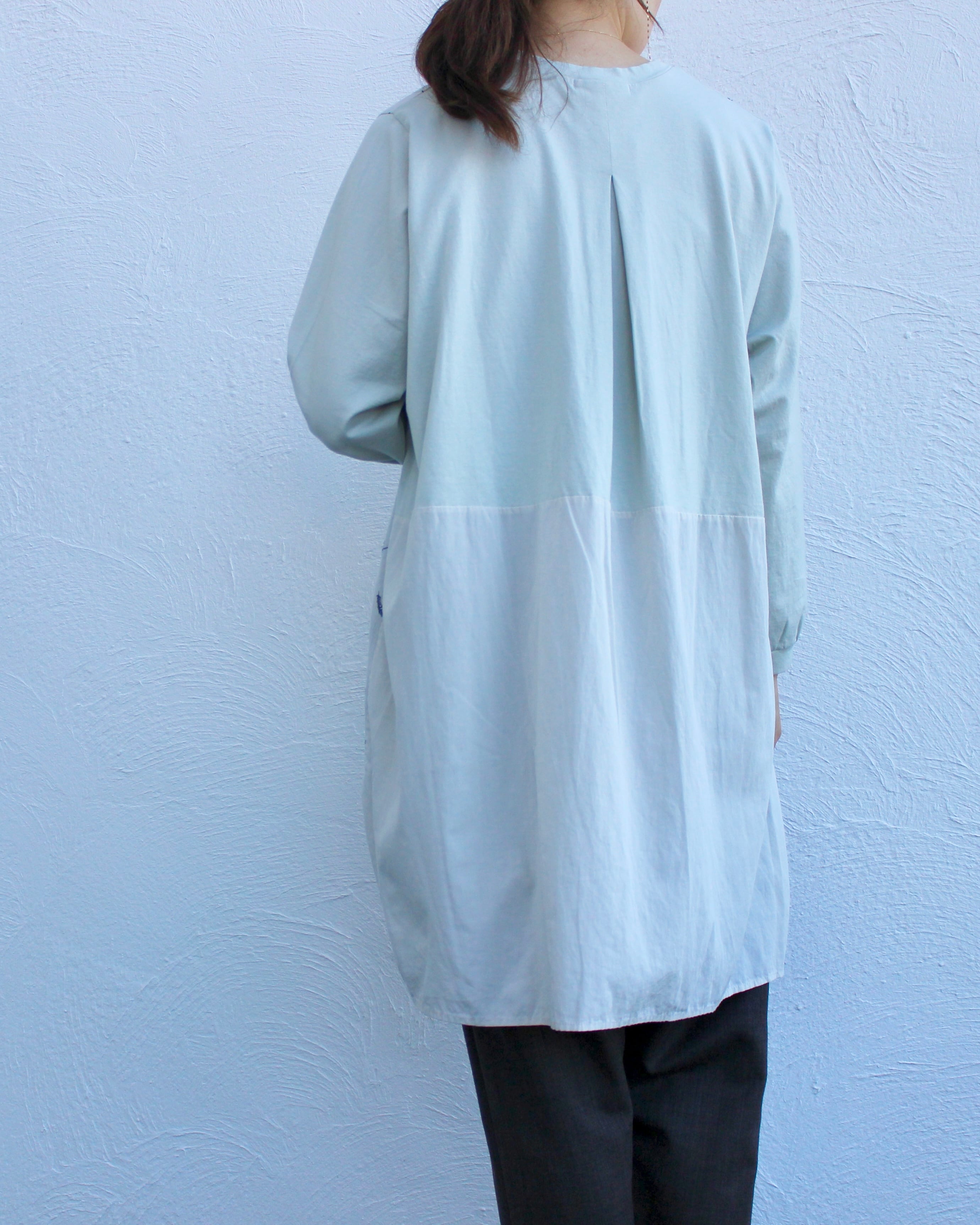 ひらっと踊る裾デザインで、閉めるとプルオーバーとして着られます。