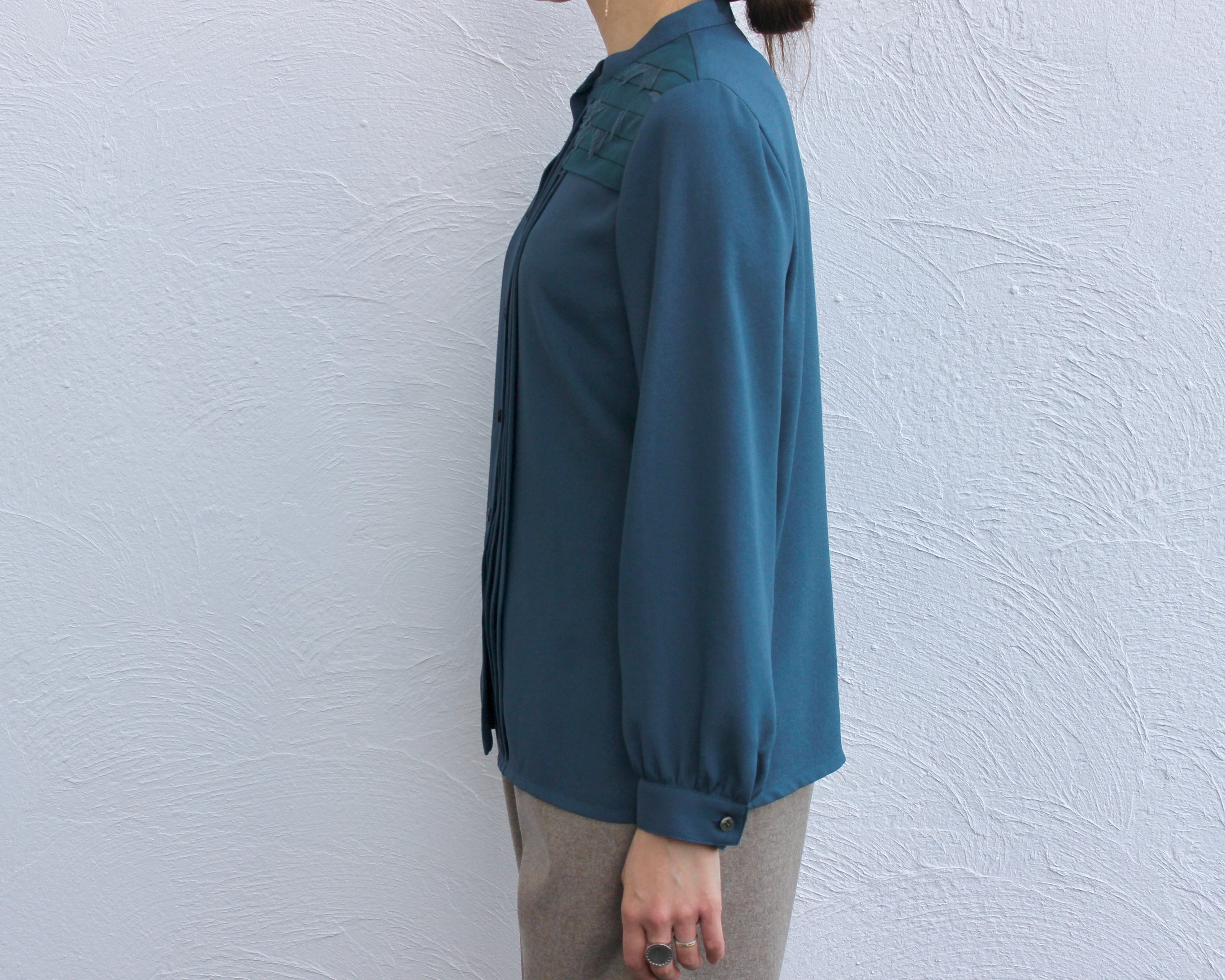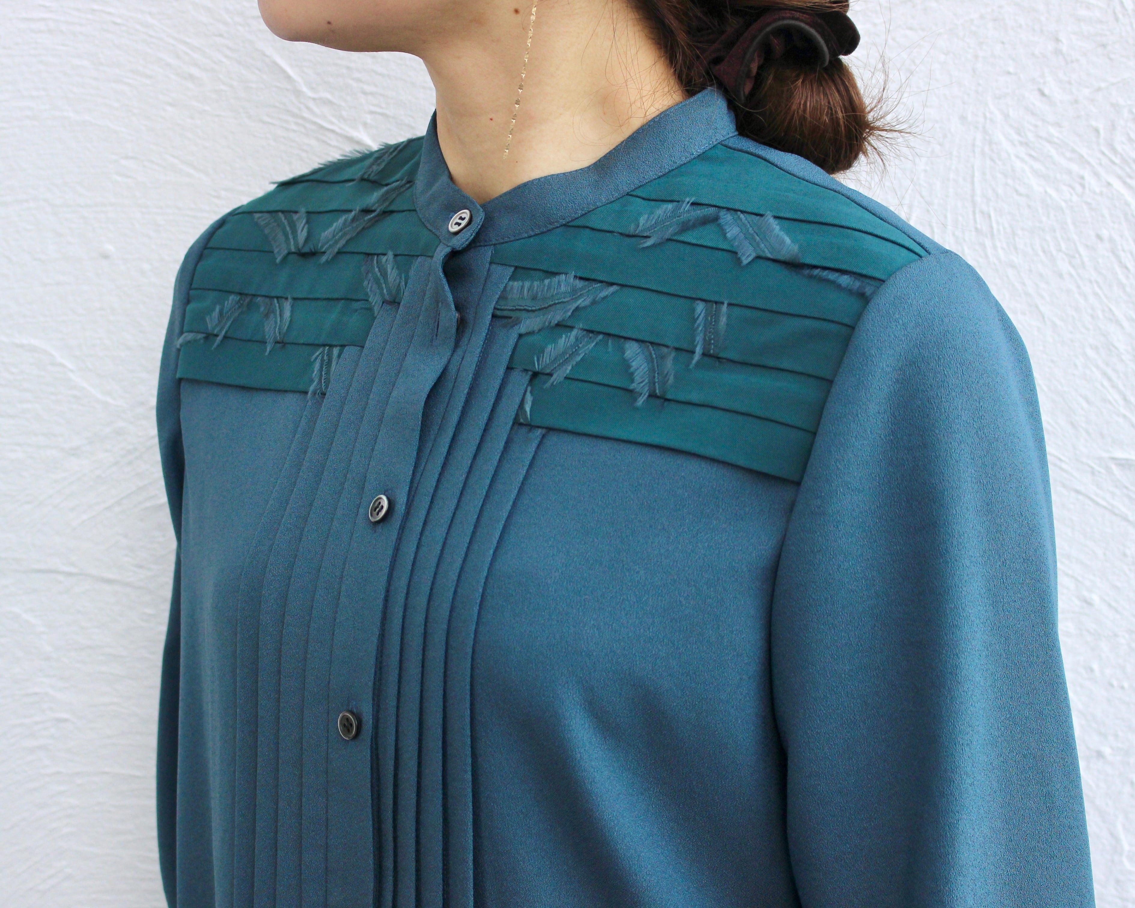JUNOKAMOTOのシグネチャーであるクロスタックを施したブラウス。
