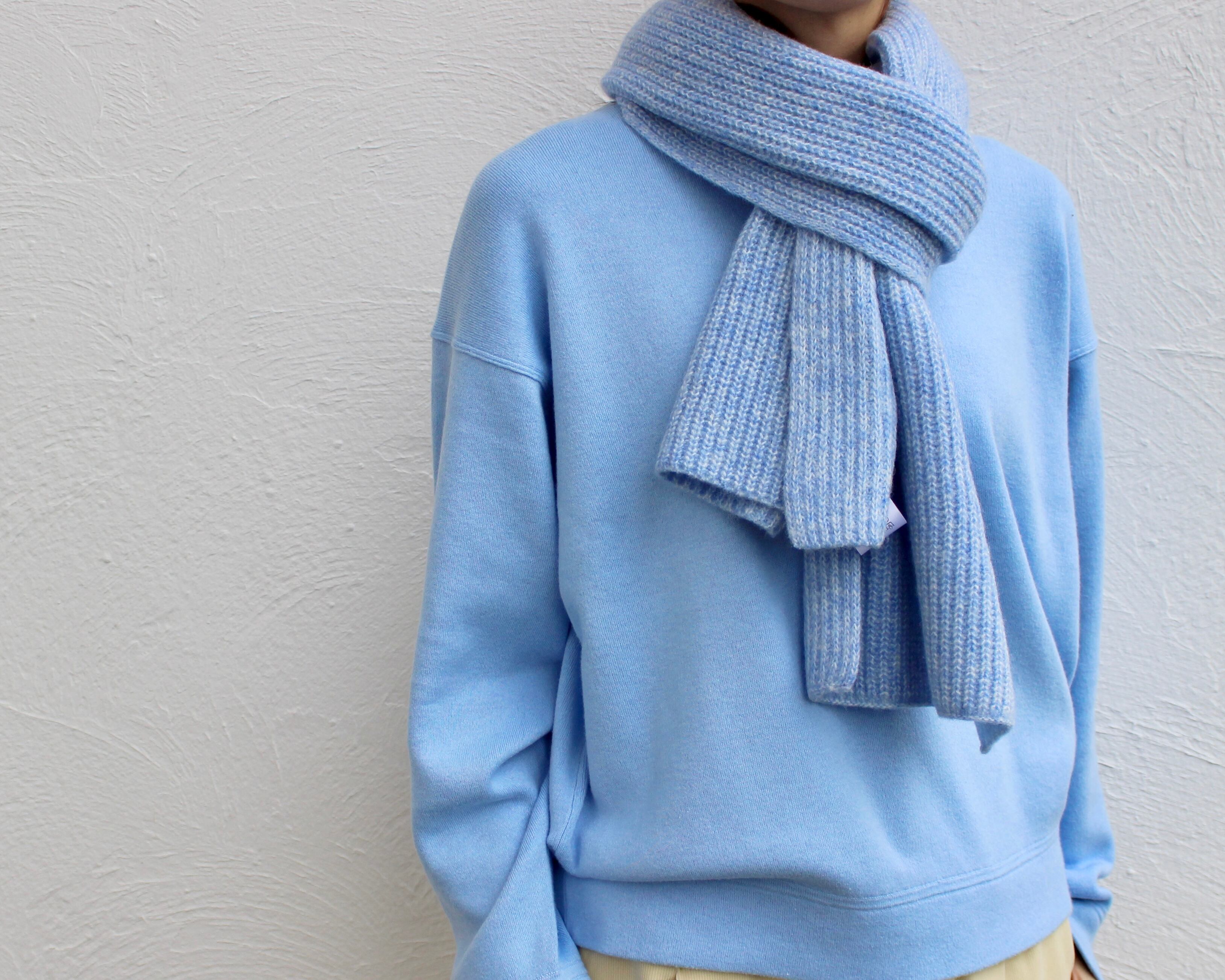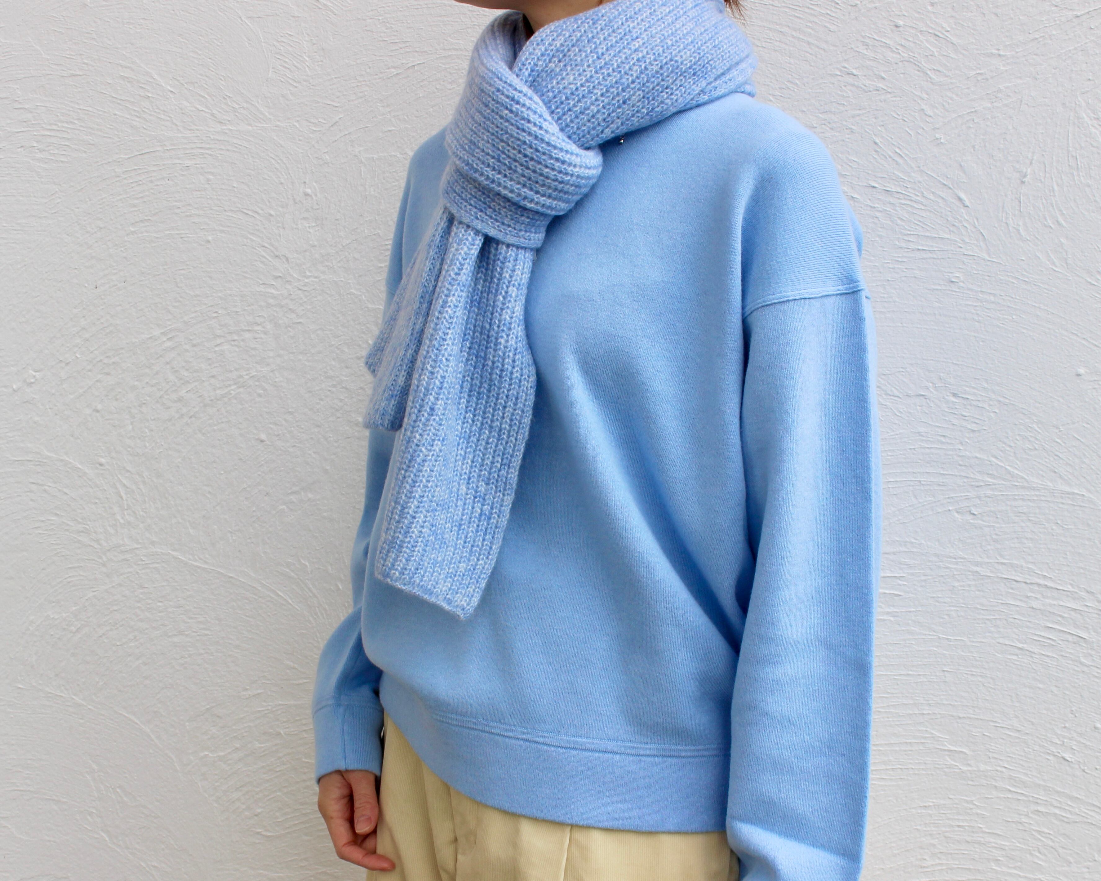シンプルで程よい肉感で冬に暖かなニットストール。