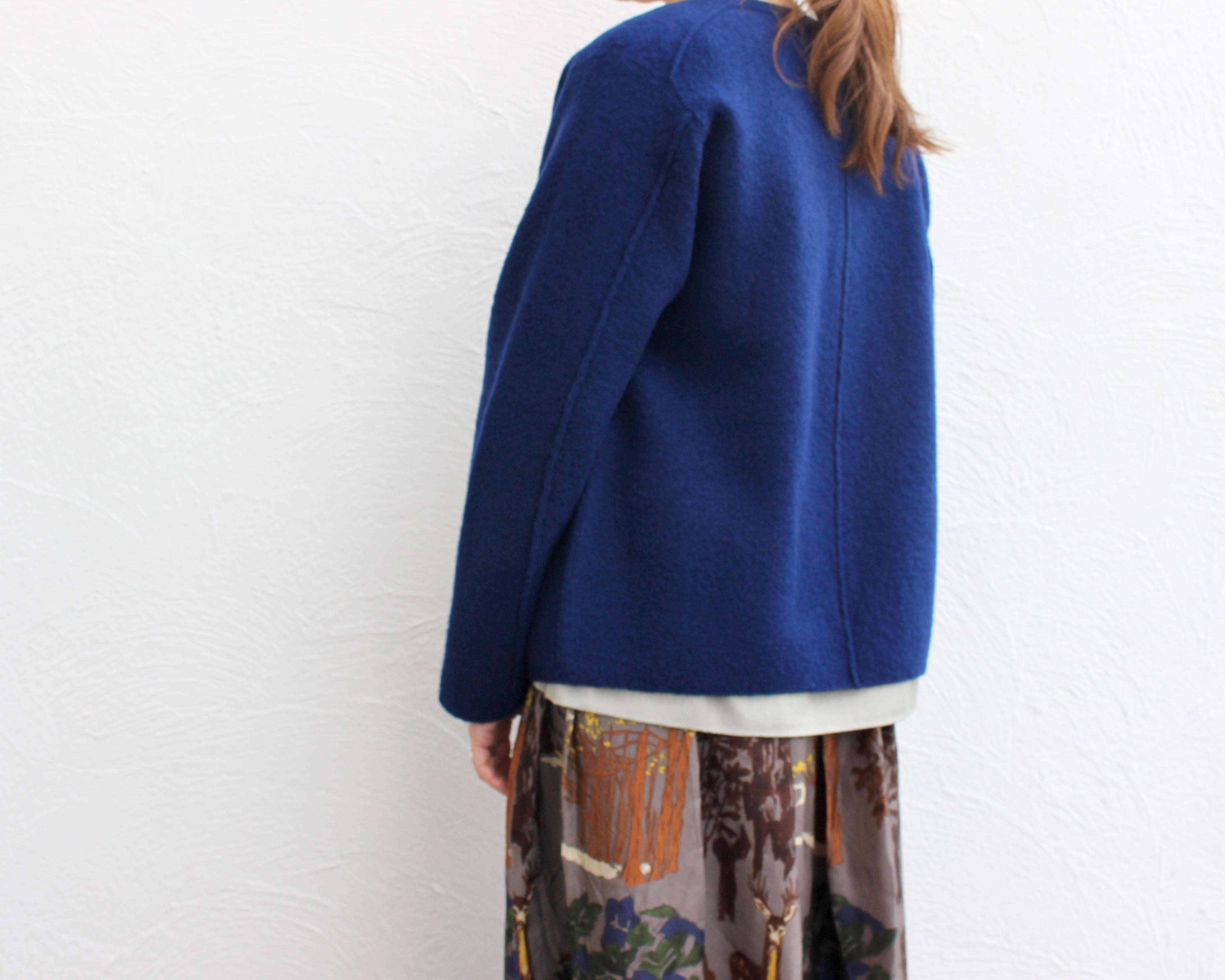 すっきりとした着丈で、コートを羽織る前まで重宝します。