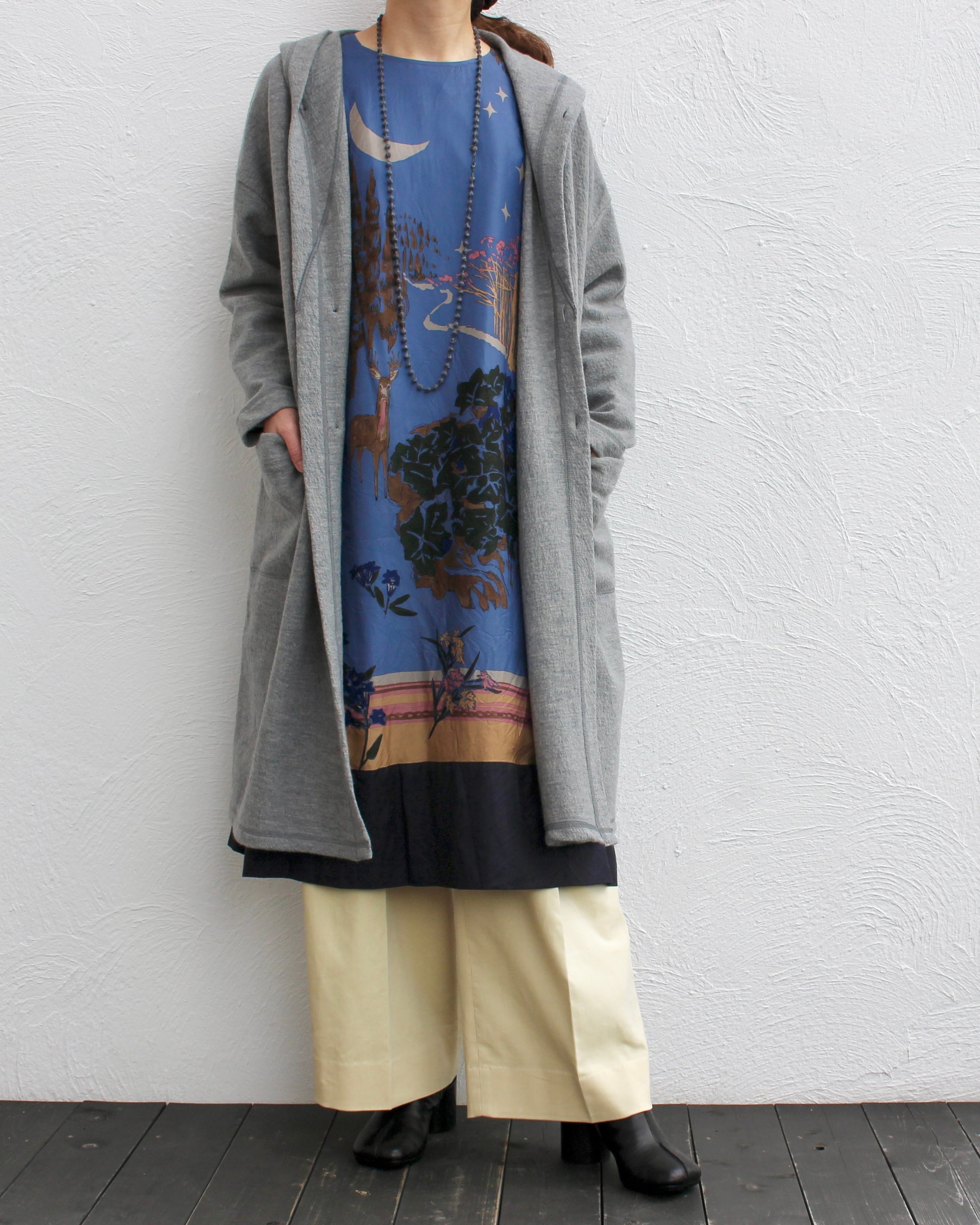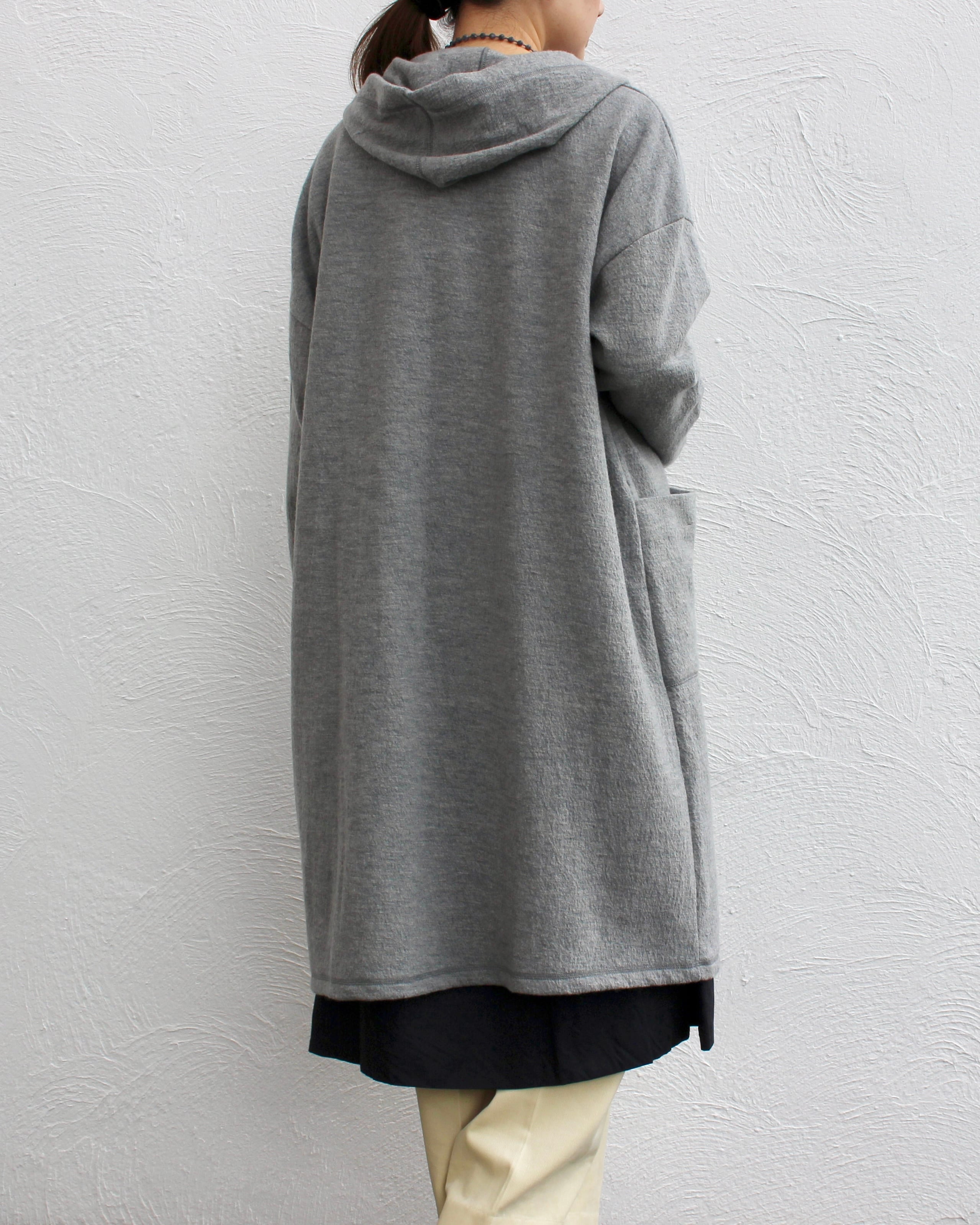 すとんと落ちるシルエットにフードをあしらったカジュアルなデザインで、