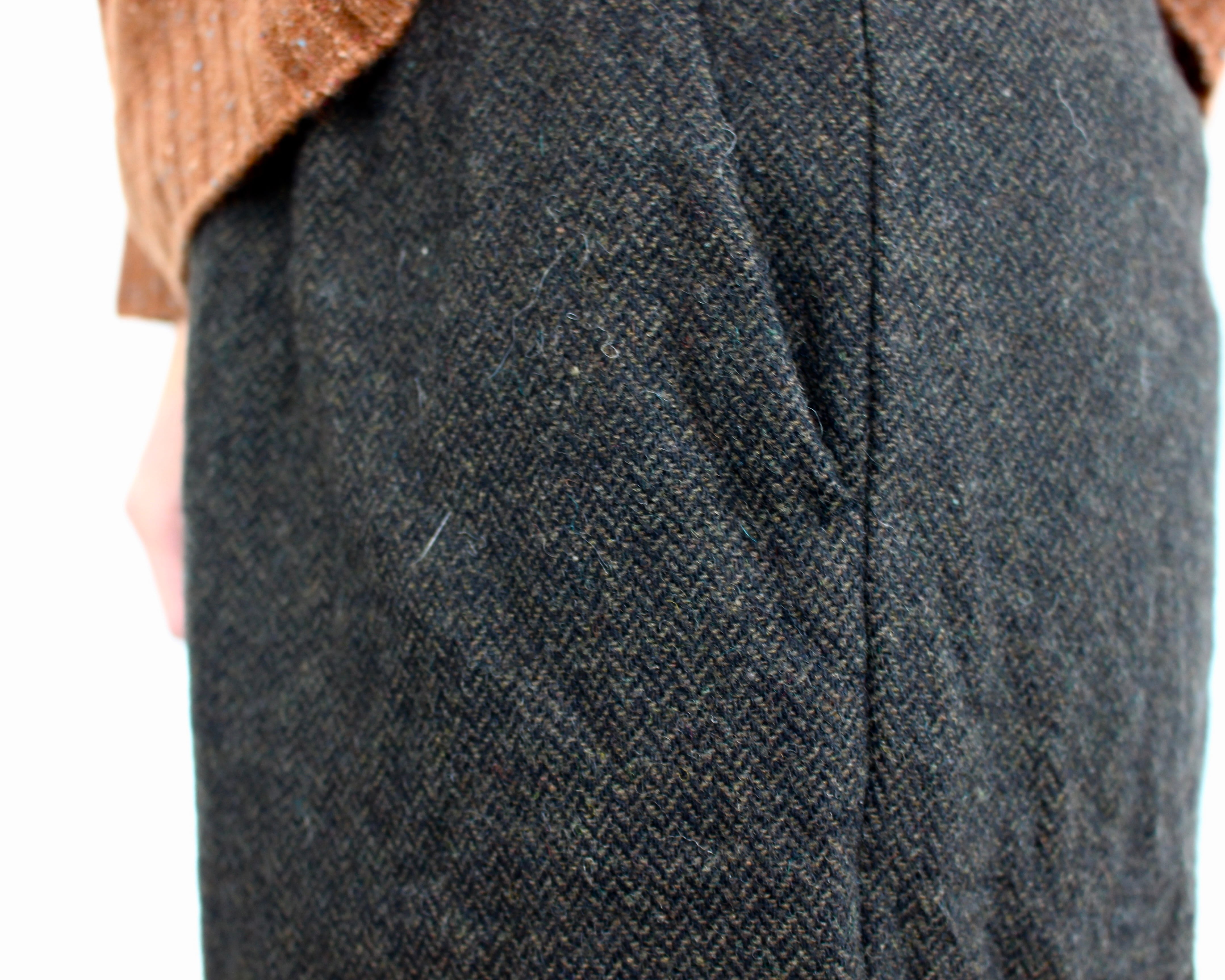 クラシックなヘリンボンウールをほんのりワイドシルエットに仕立てたウールパンツ。
