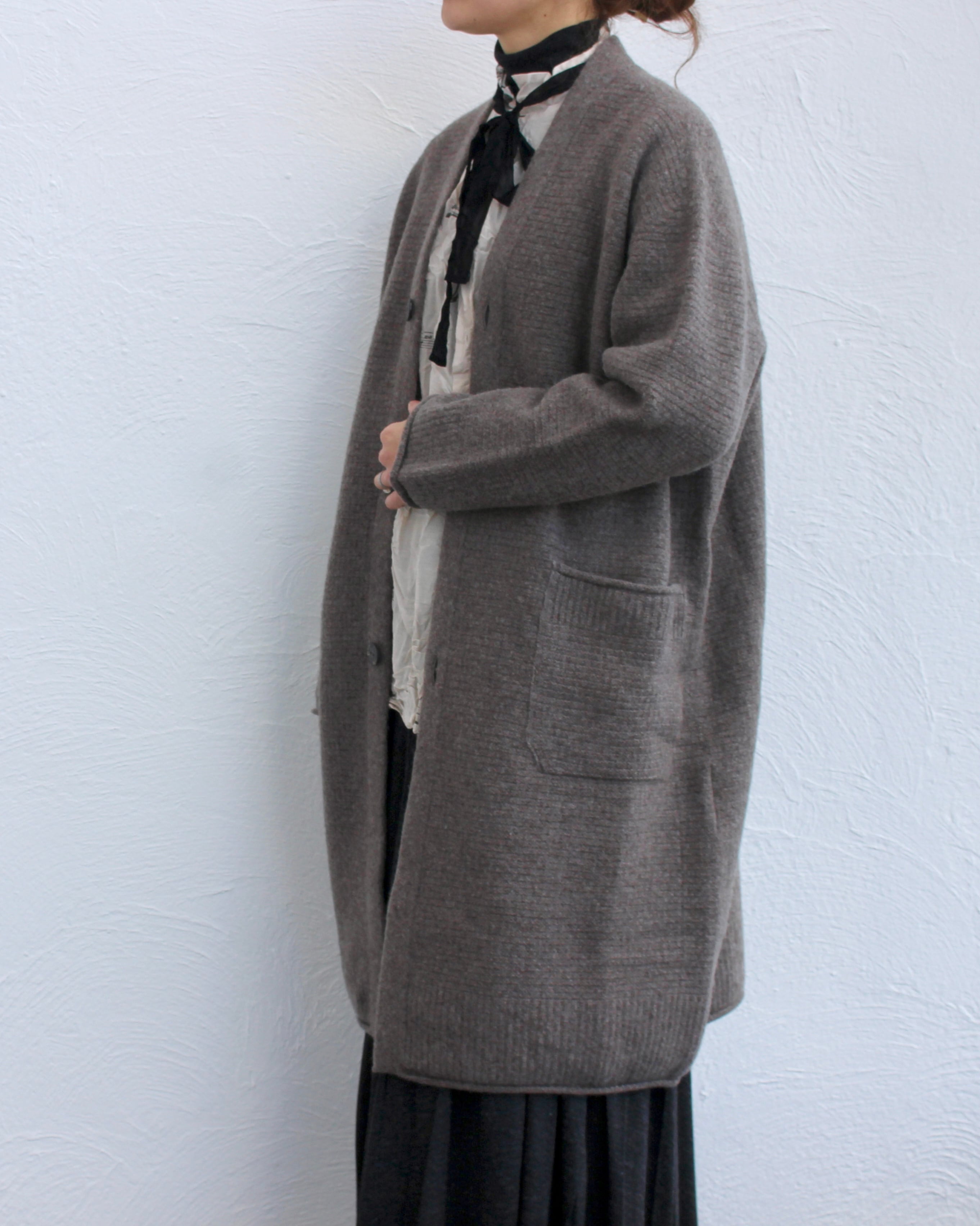 カシミヤ・ラム混のニットカーディガンは、ハリとコシがあり厚みもあり暖か。