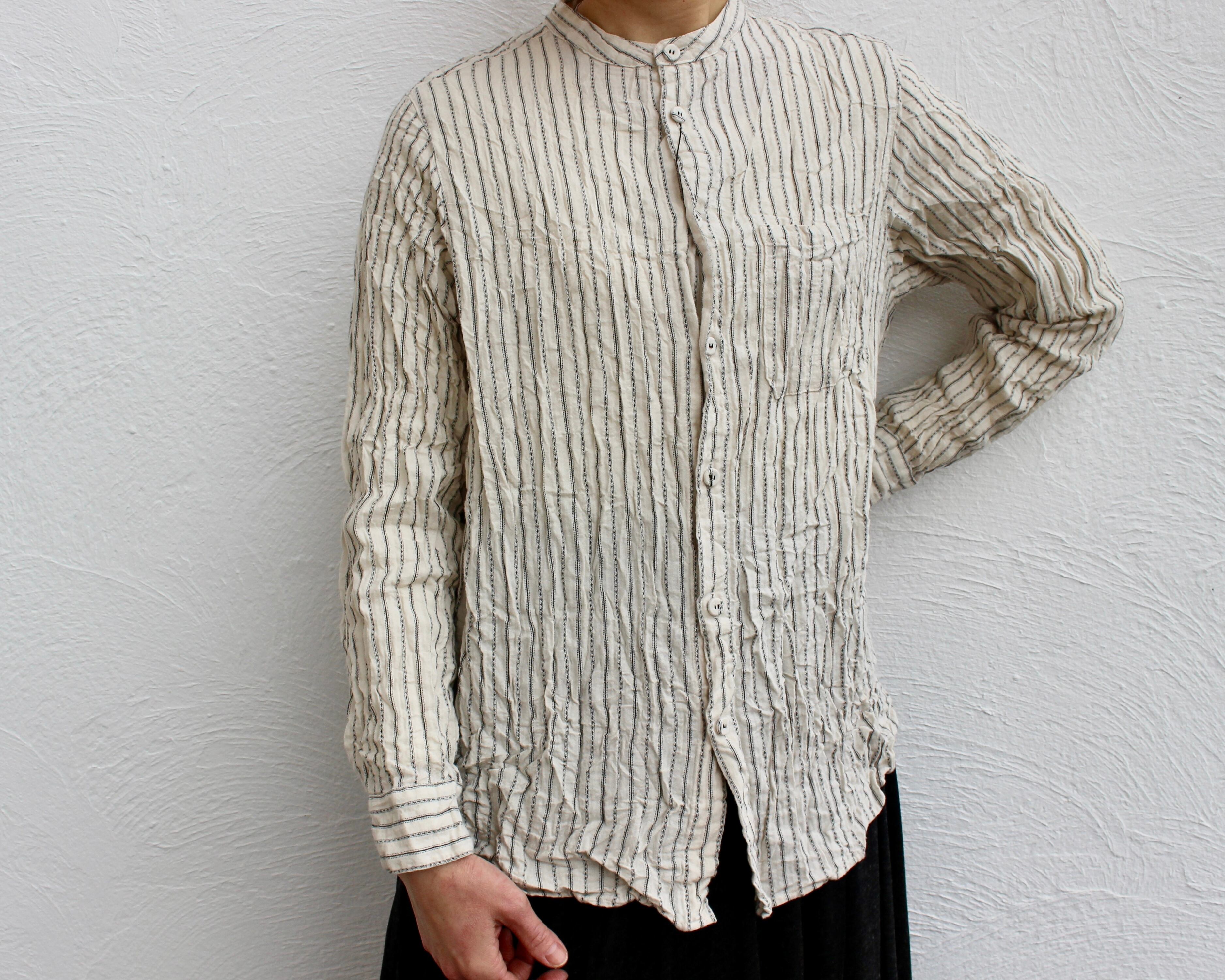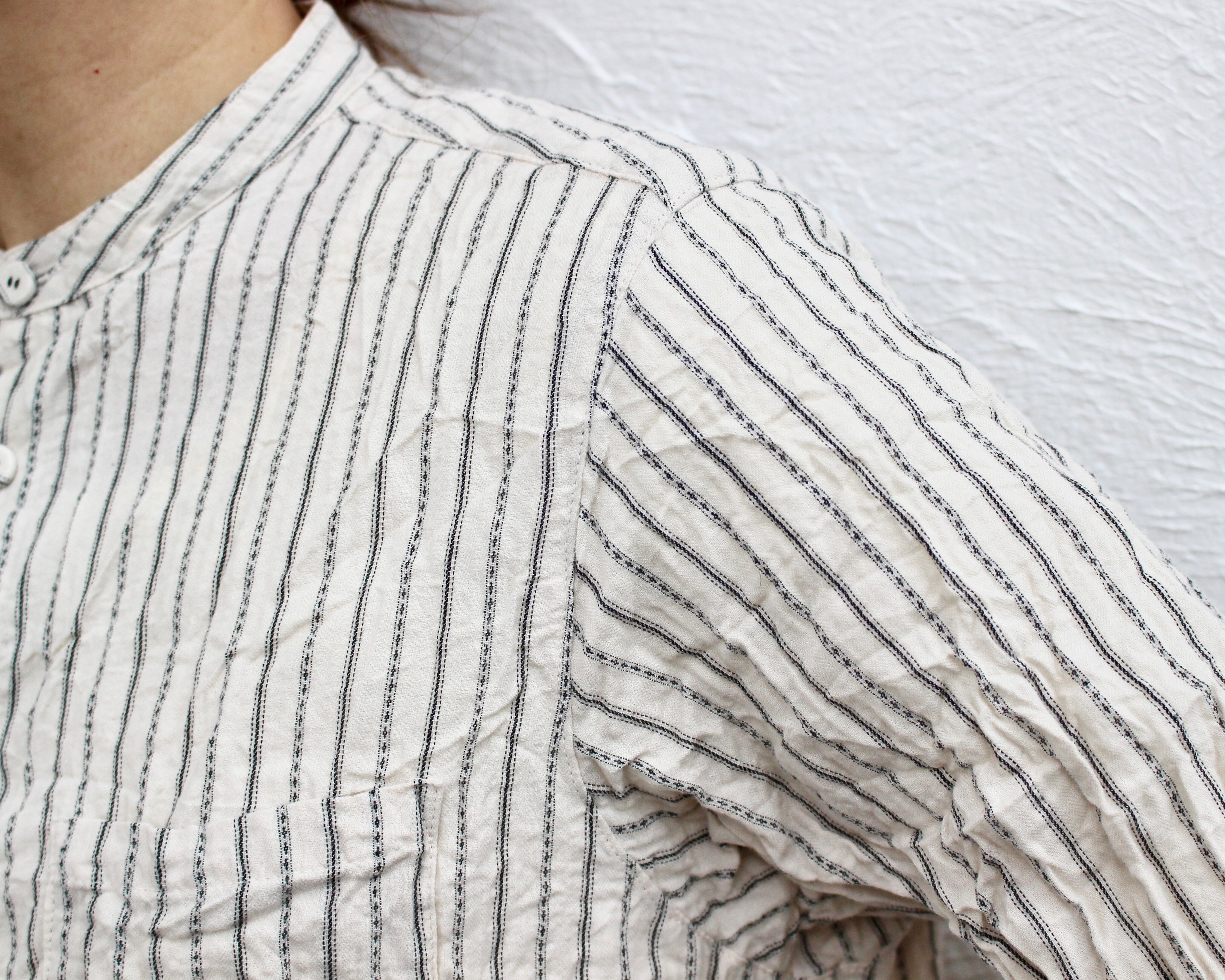ドビー織り機で編まれた、ストライプ状の変わり織生地のブラウス。