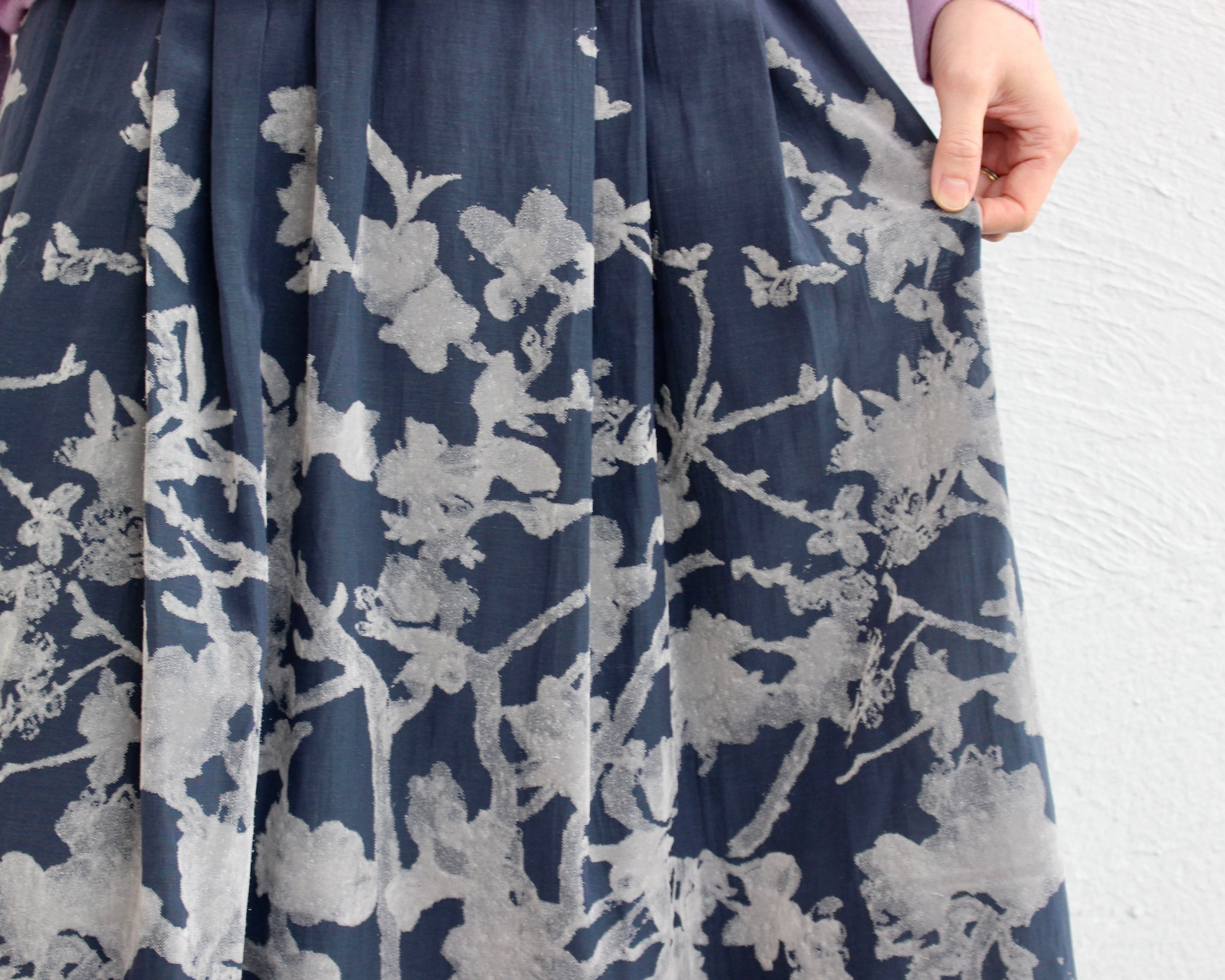 滲んだようなフロッキー加工プリントで施した上品に華やぐスカート。