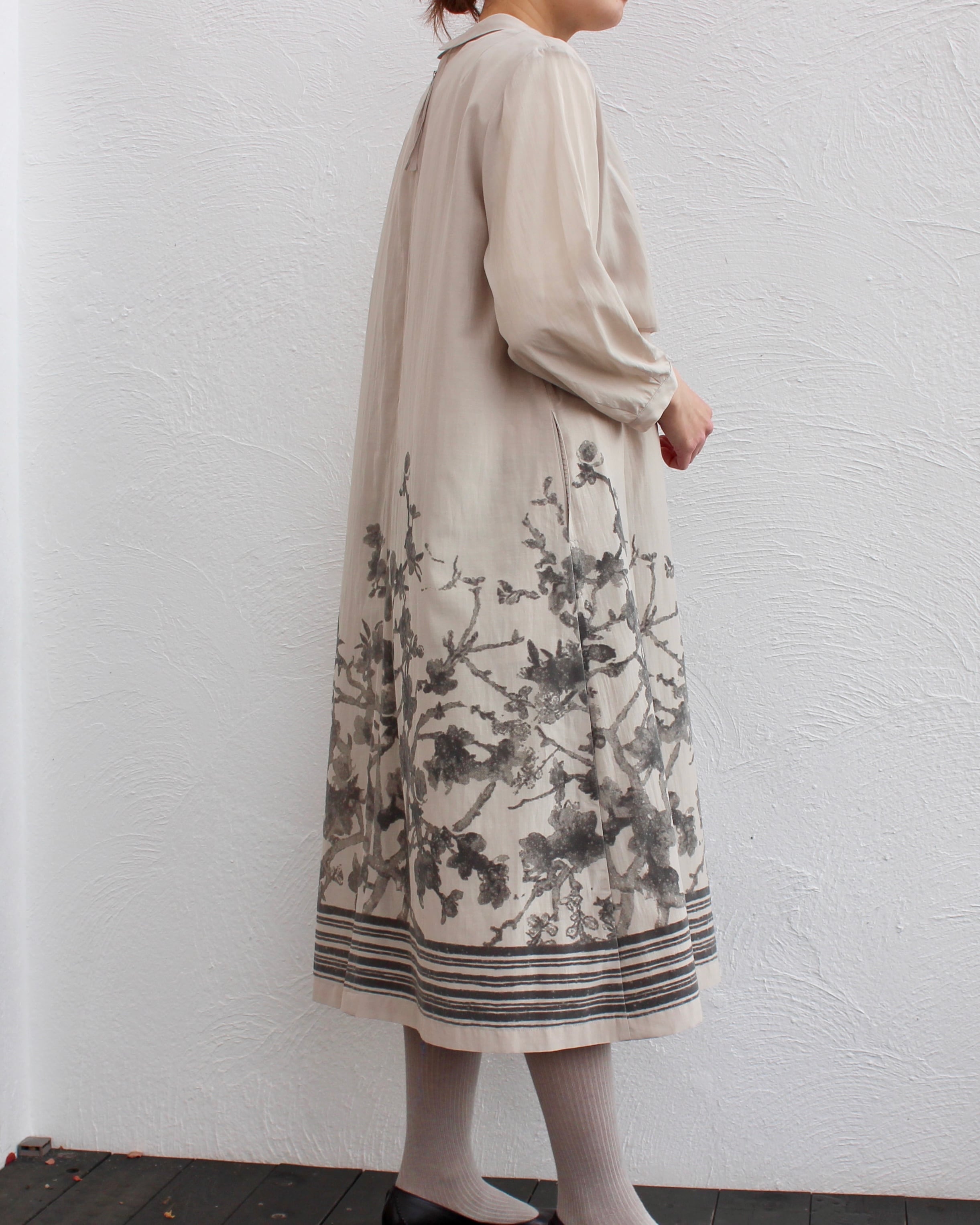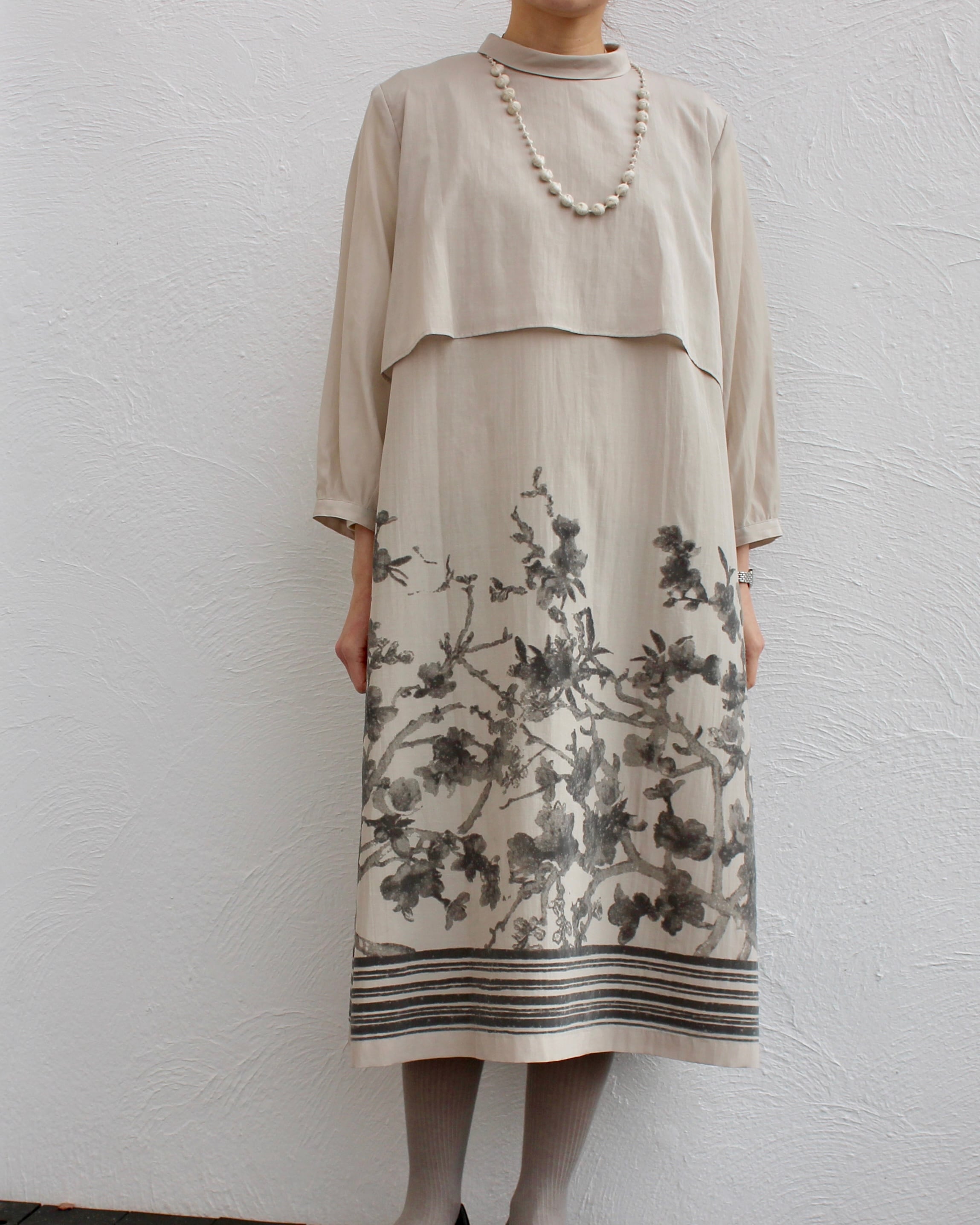 滲んだようなフロッキー加工プリントで施した上品に華やぐワンピース。