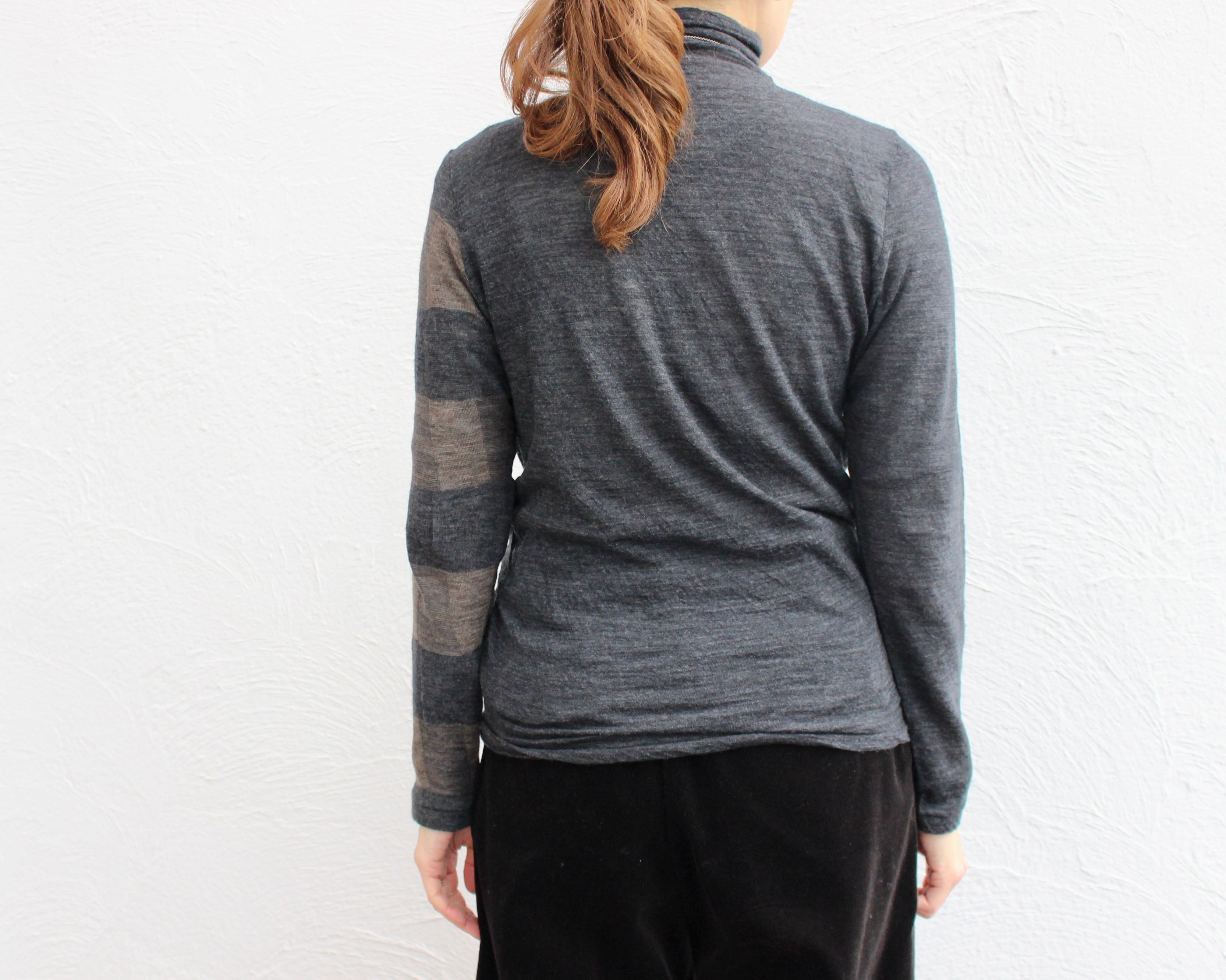 柄は前身頃と腕部分にアクセントで使用し、後身頃は無地。