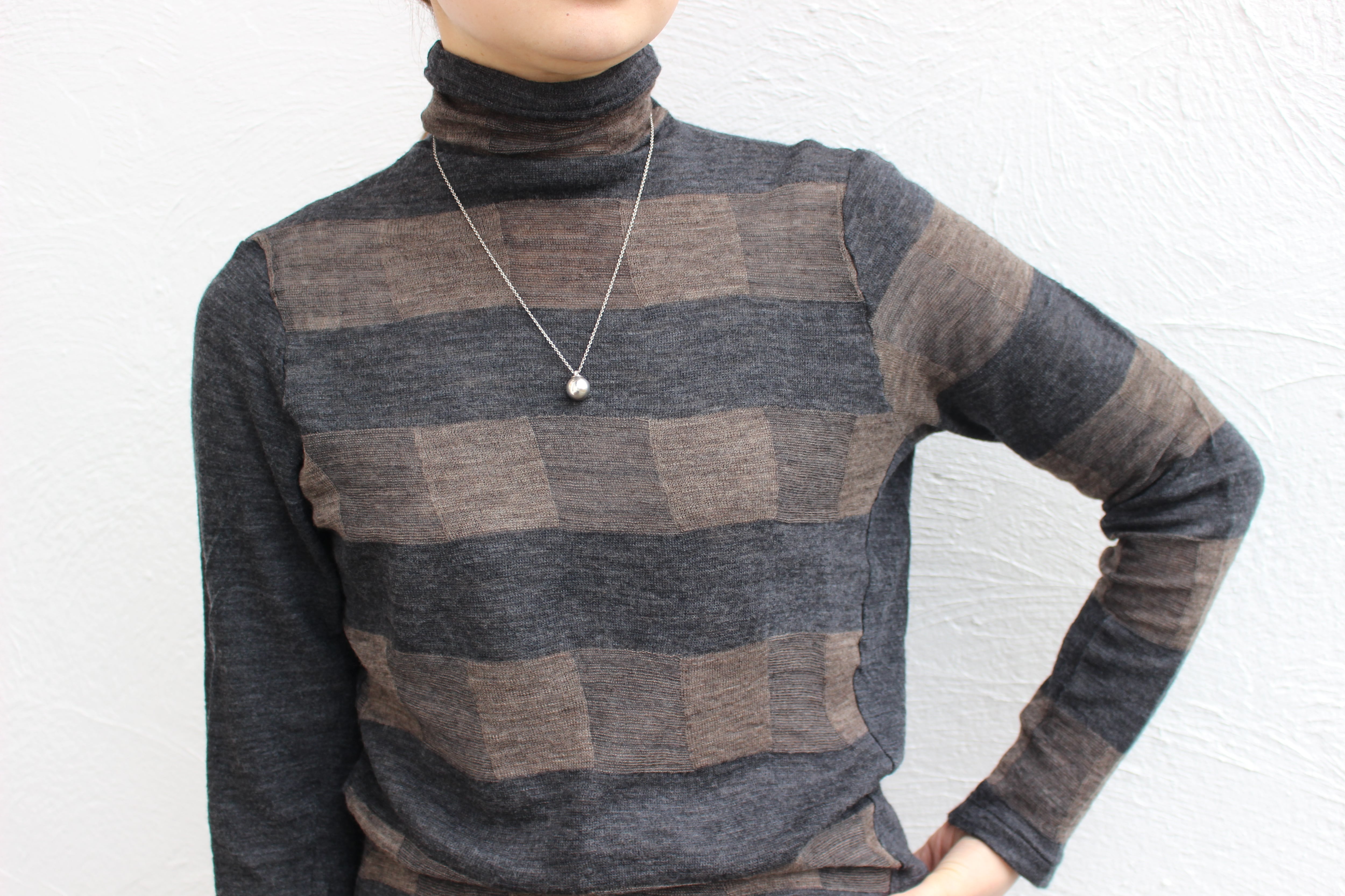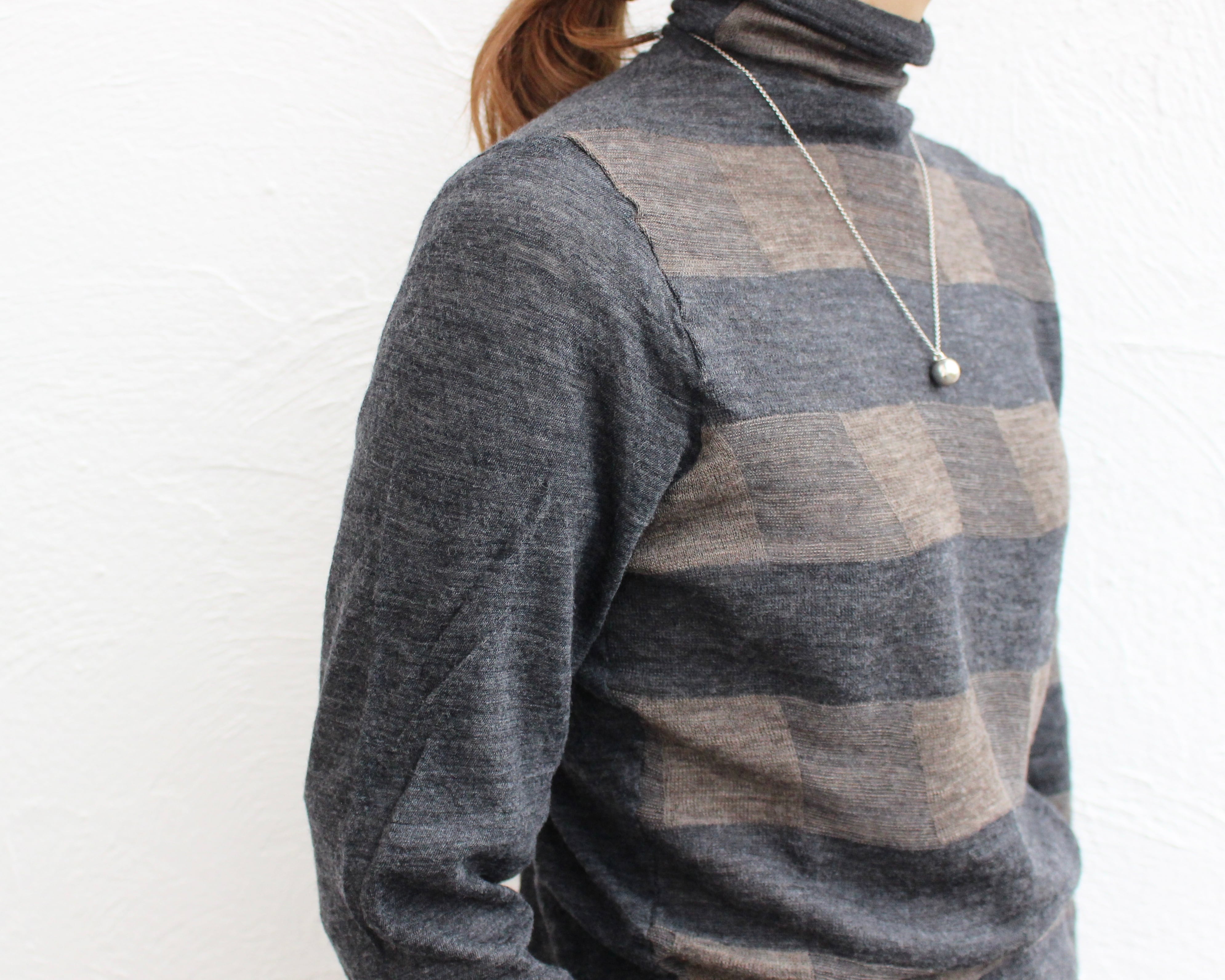 大きめなジオメトリック柄タートルネックプルオーバー。