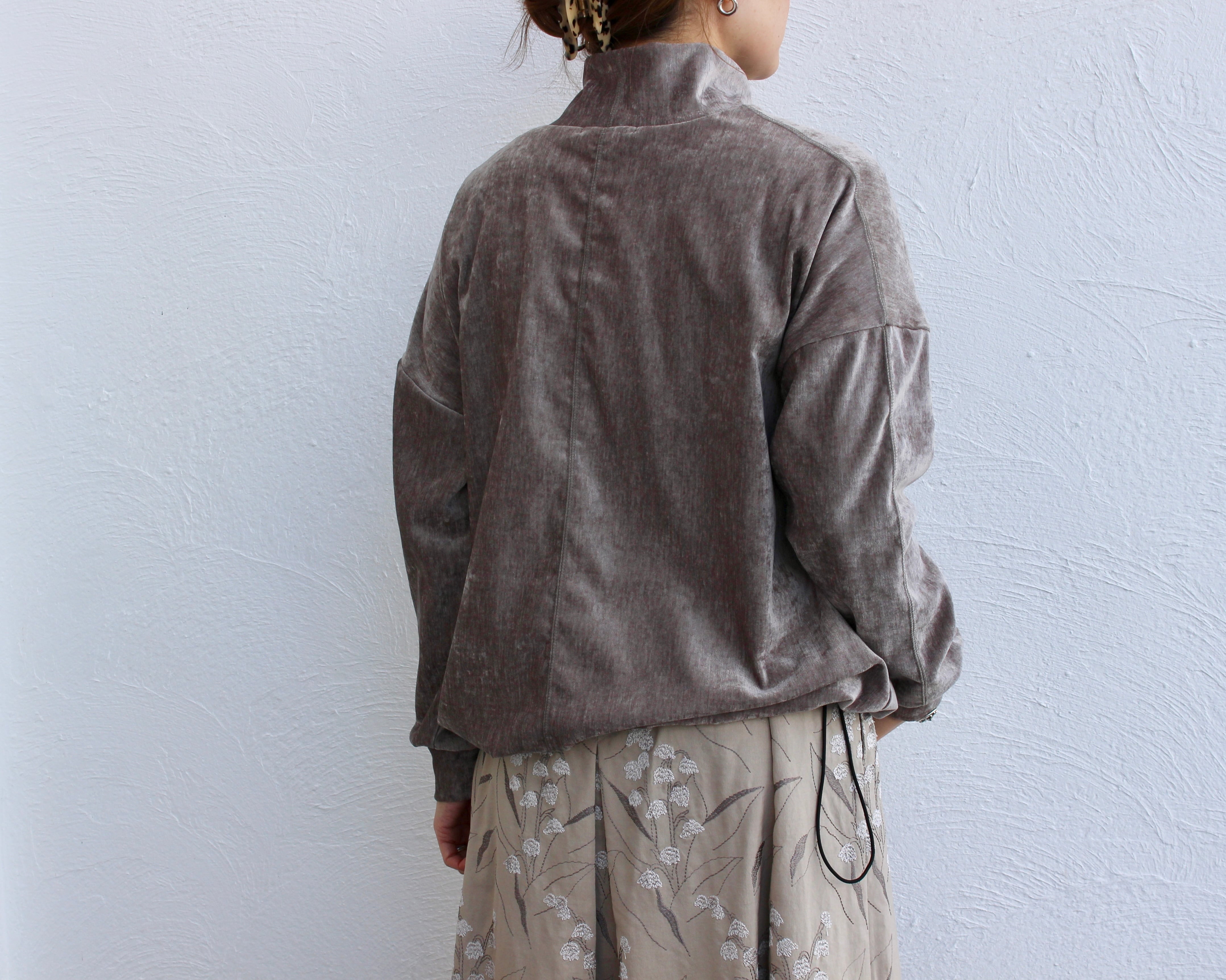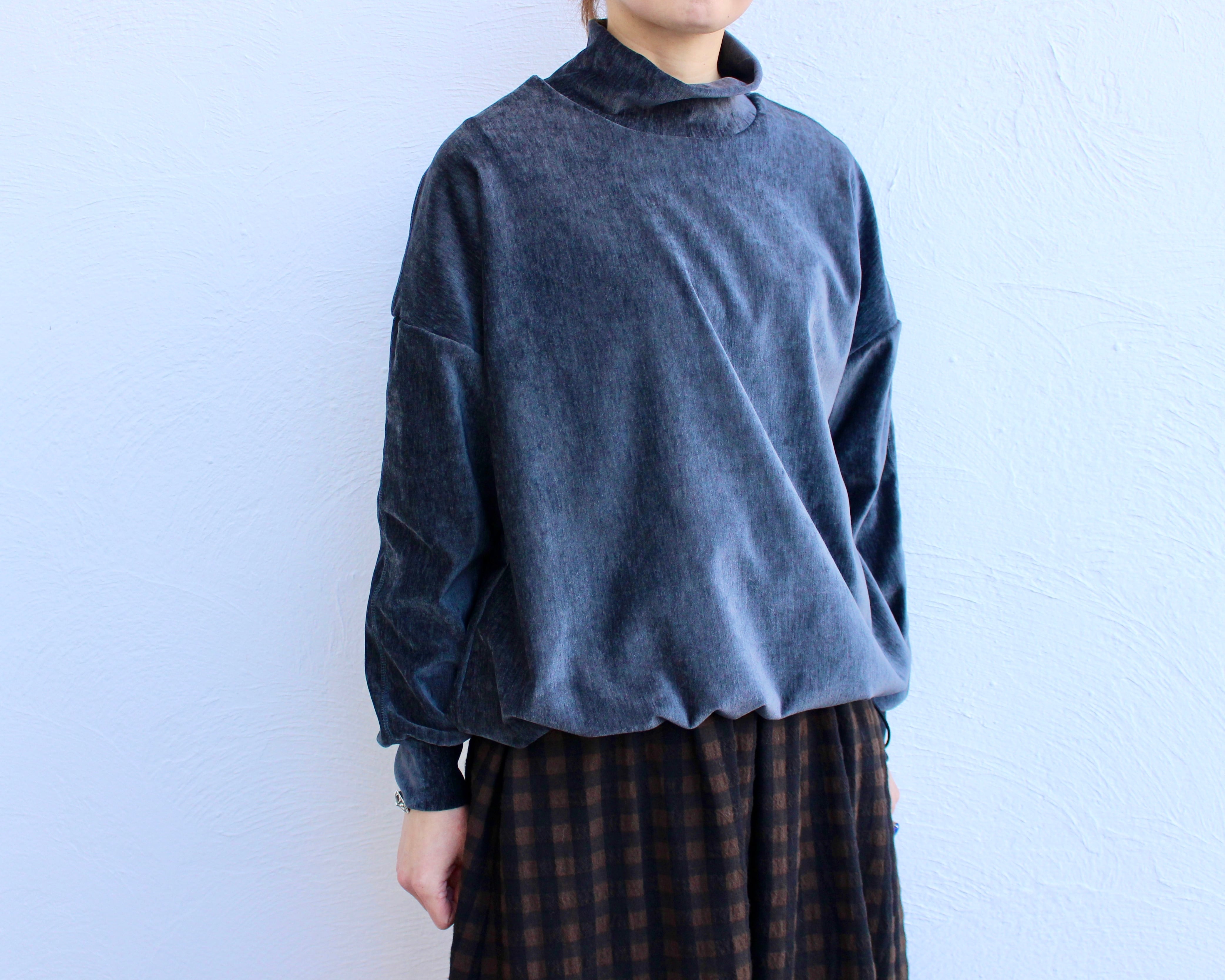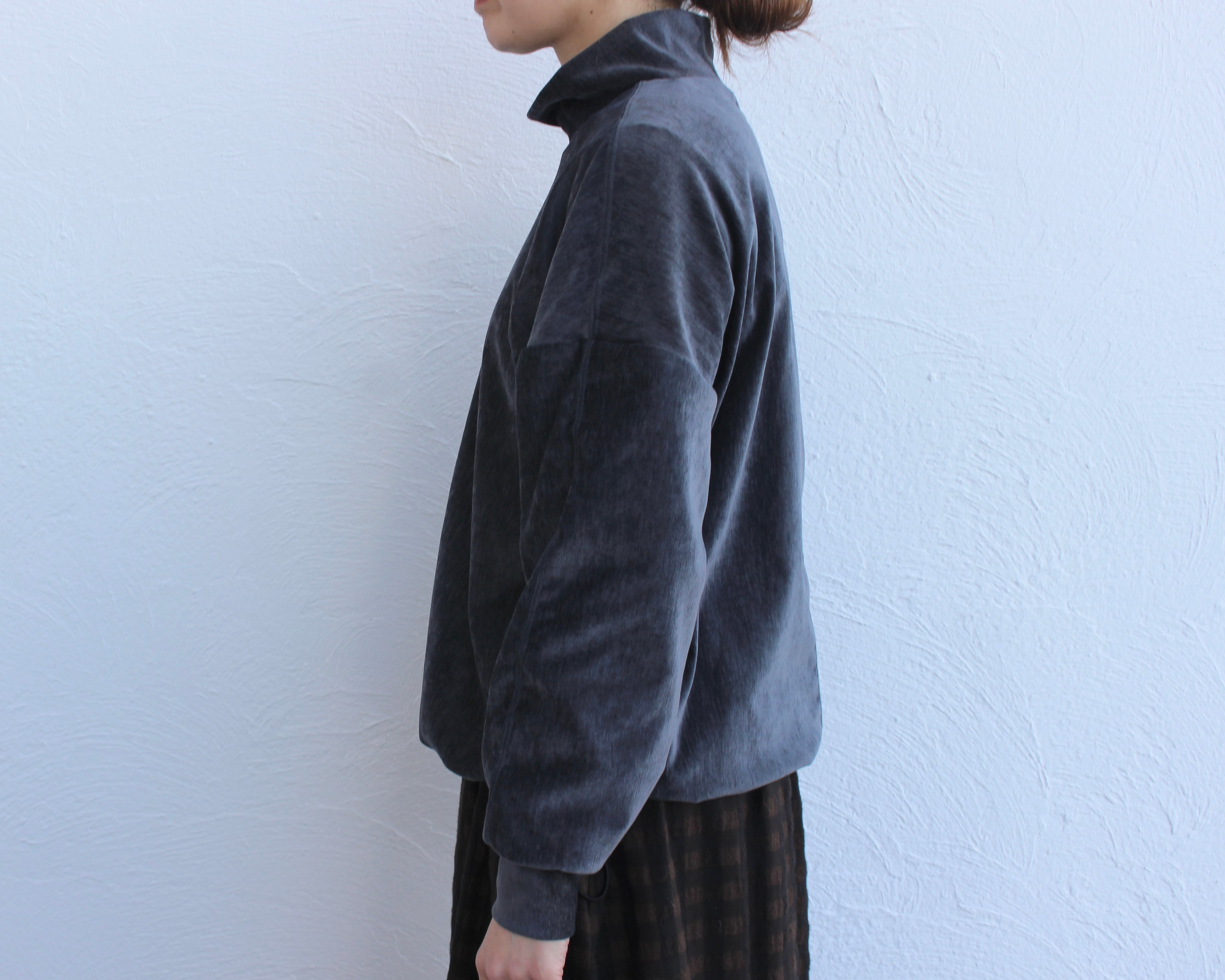 べロア調の綺麗めな起毛感が目を引くハイネックプルオーバー。