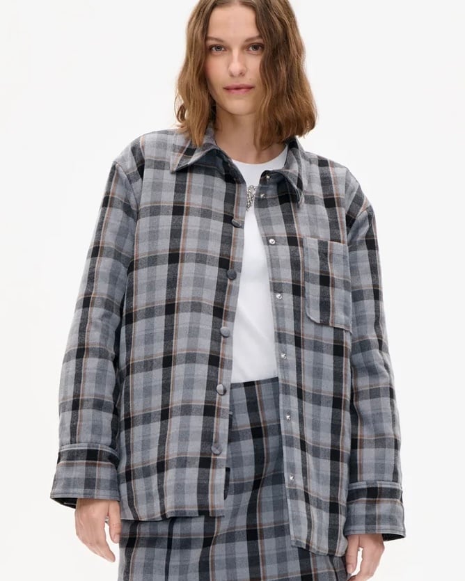 チェックのネルシャツにキルティングの裏地をボンディングしたシャツジャケット。