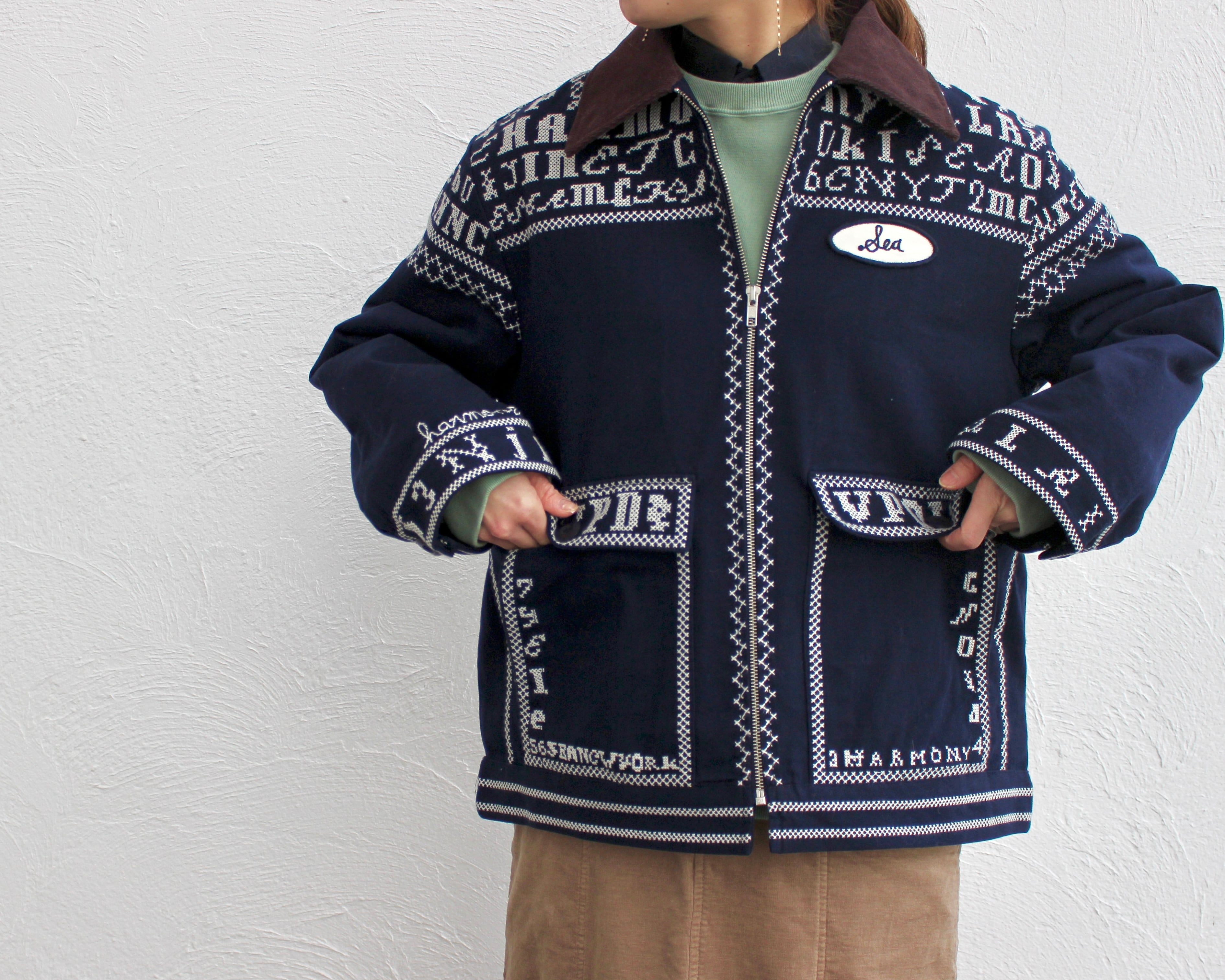 中綿入りのキルトの裏地がジップで取れる画期的な刺繍ジャケットは