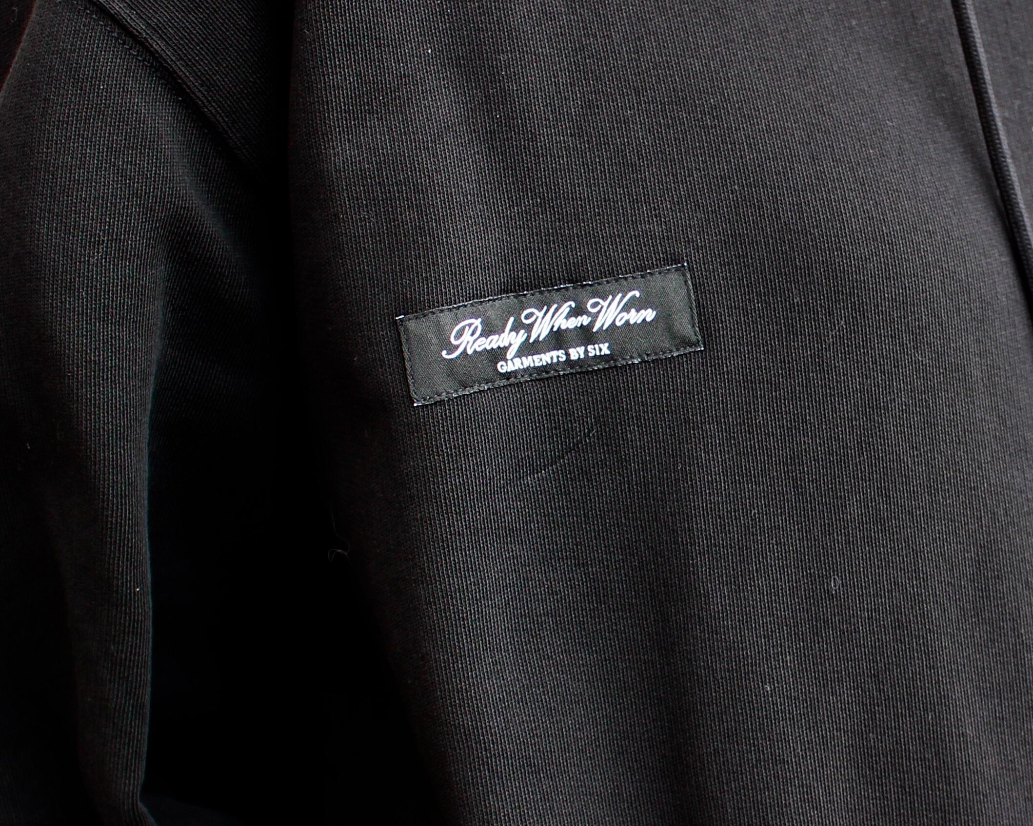 ガーメントには、白いシングルステッチでラベルが縫い付けられている。