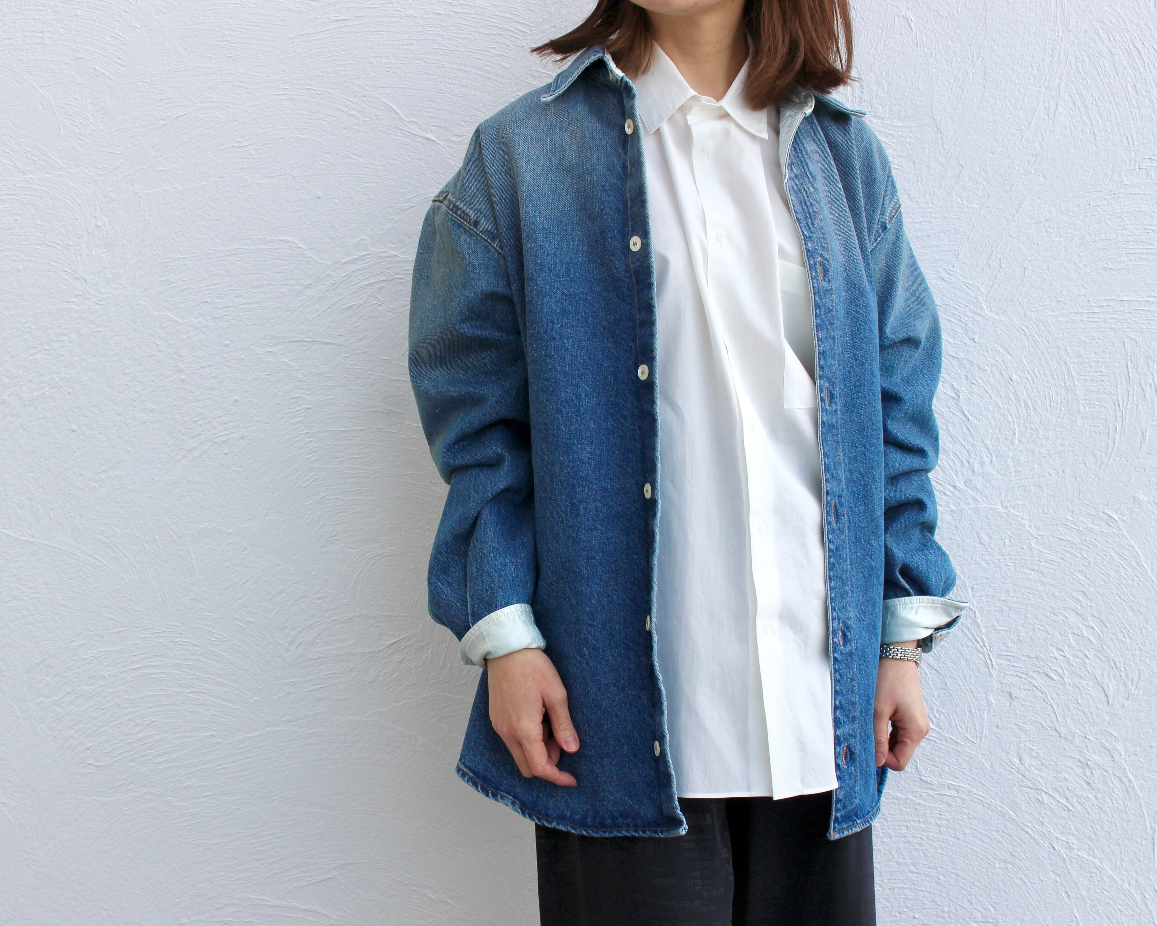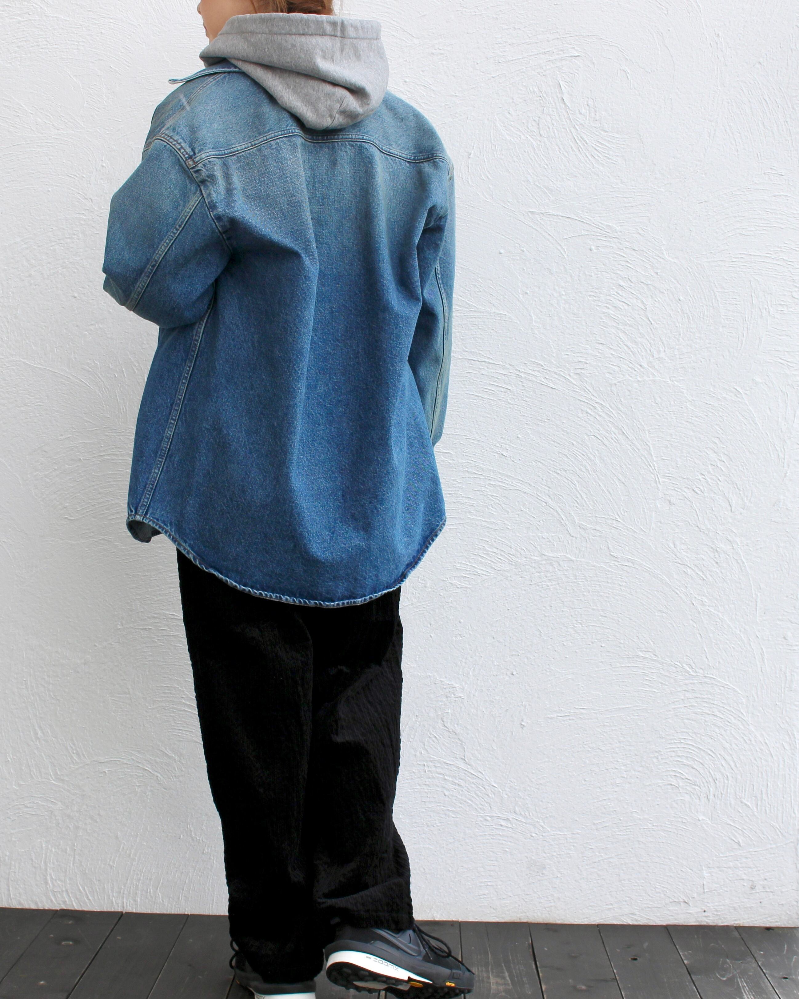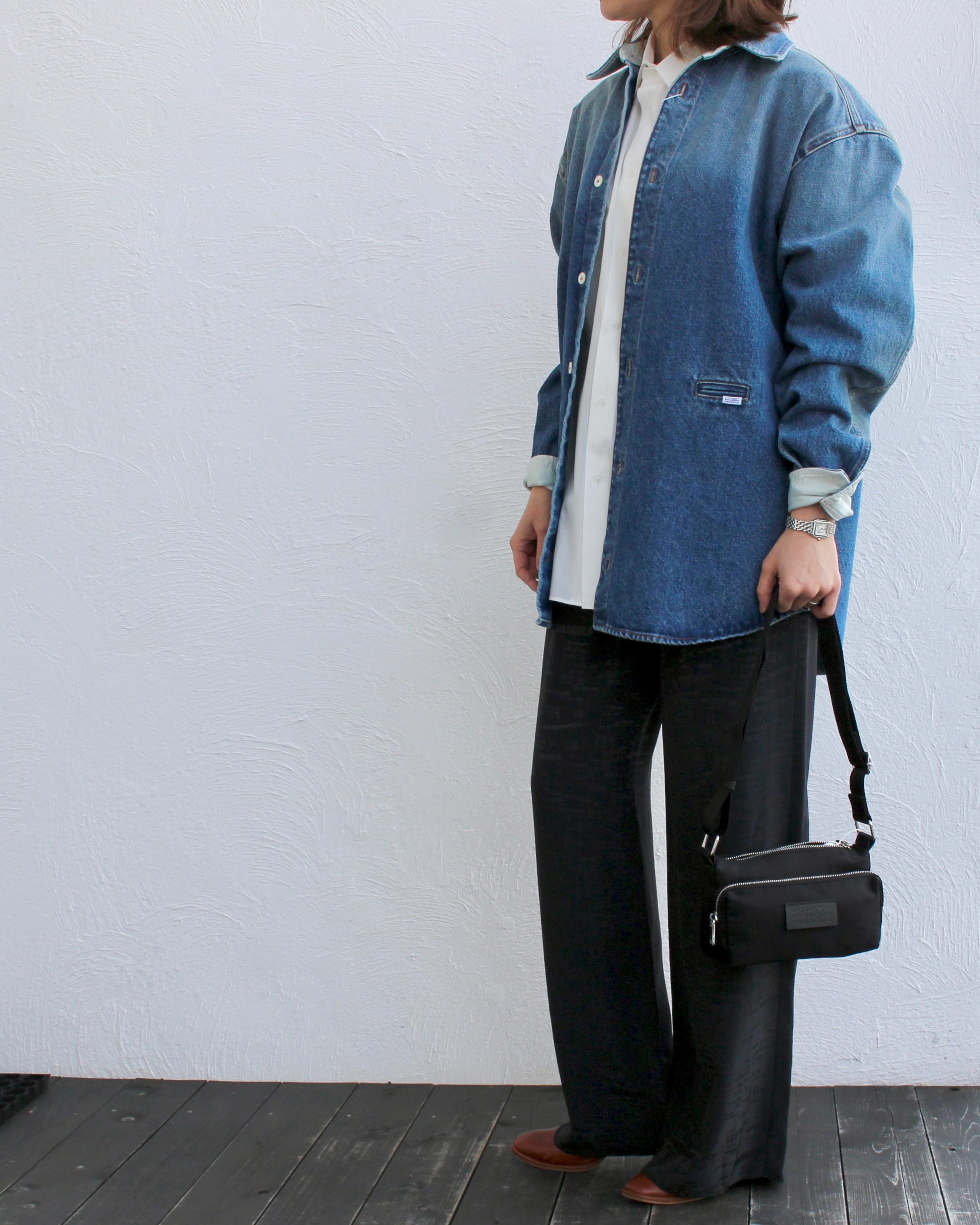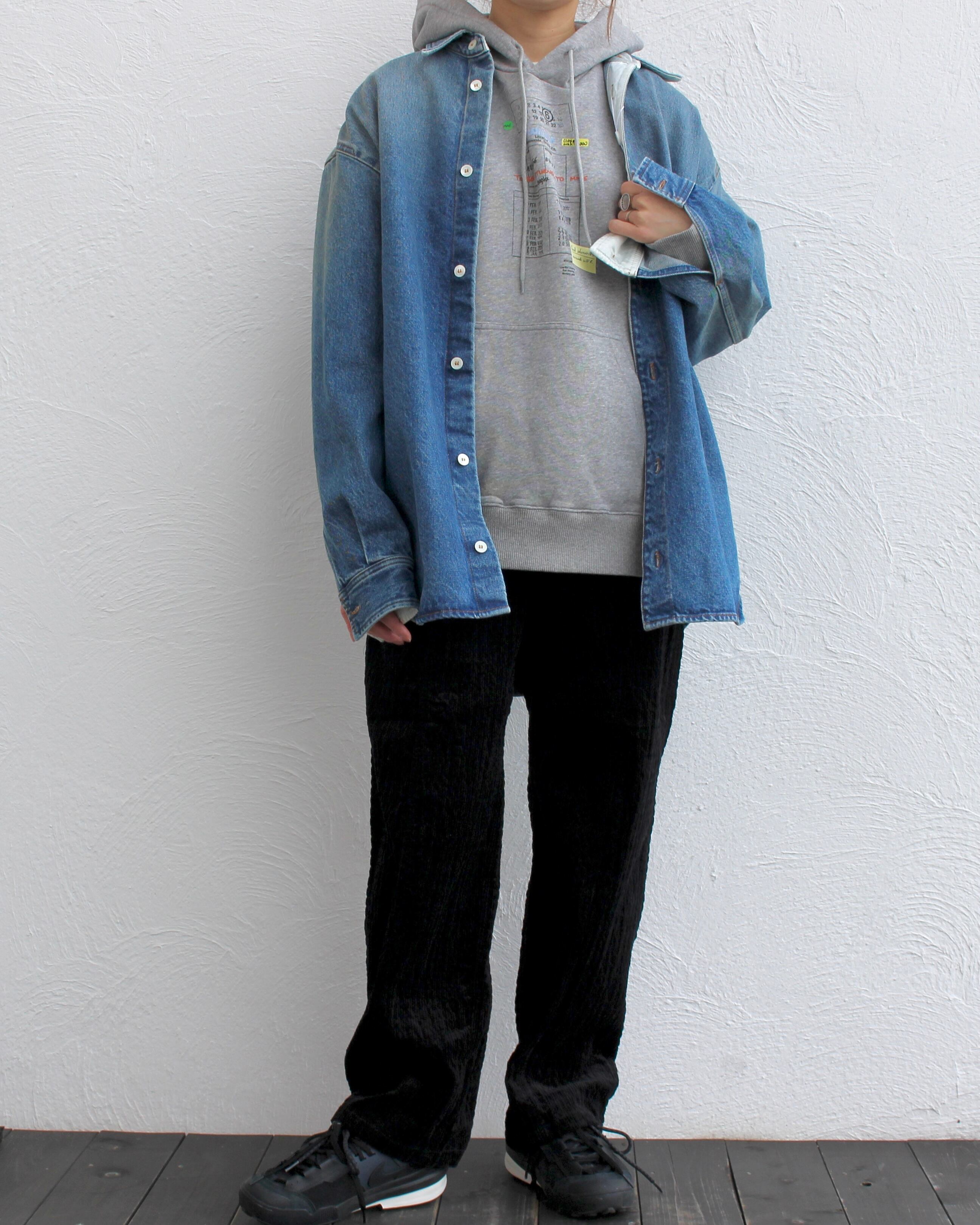 ざっくりとしたシルエットは、パーカーにざっくりと羽織るもよし、