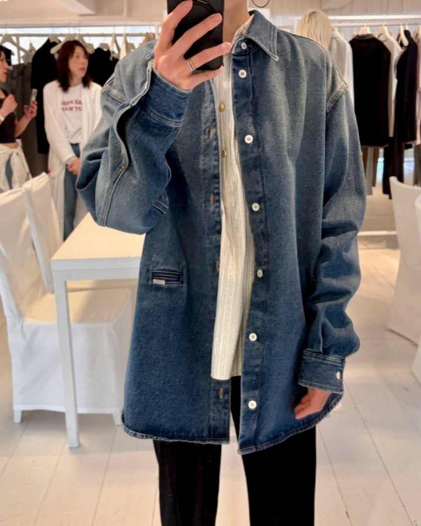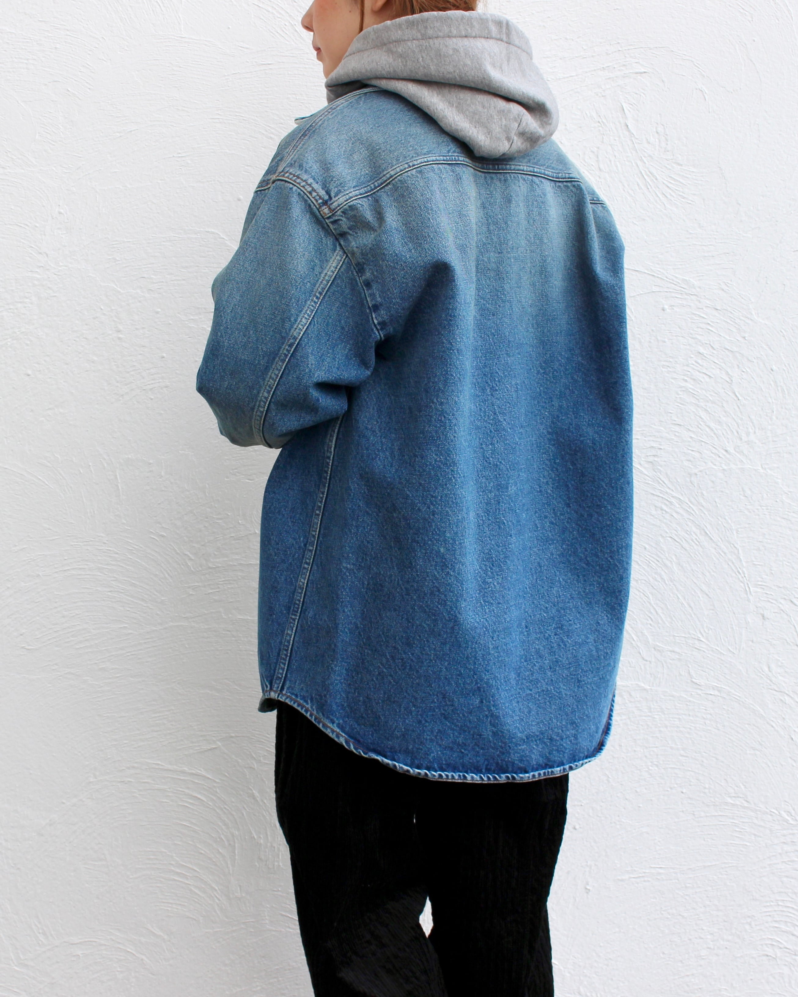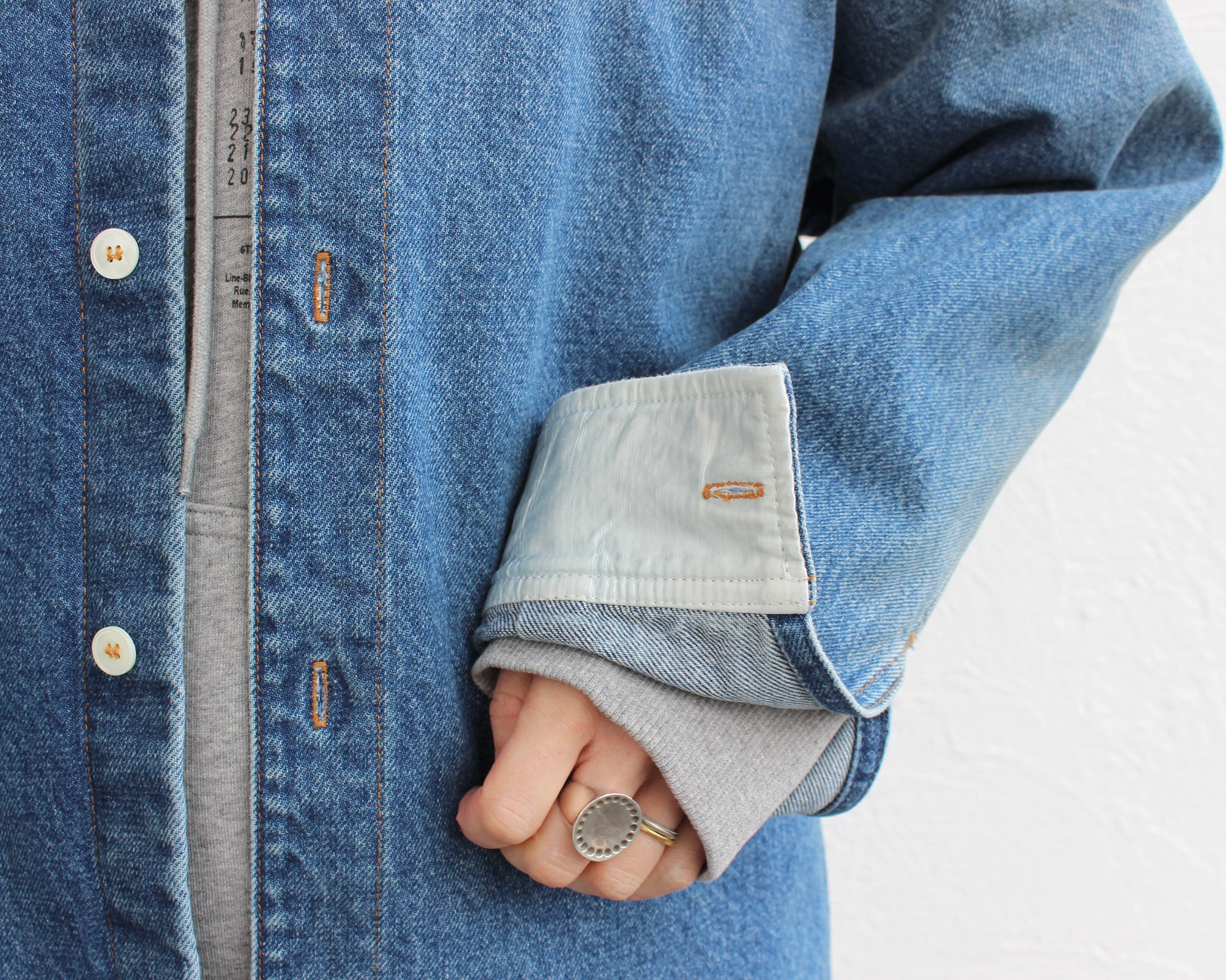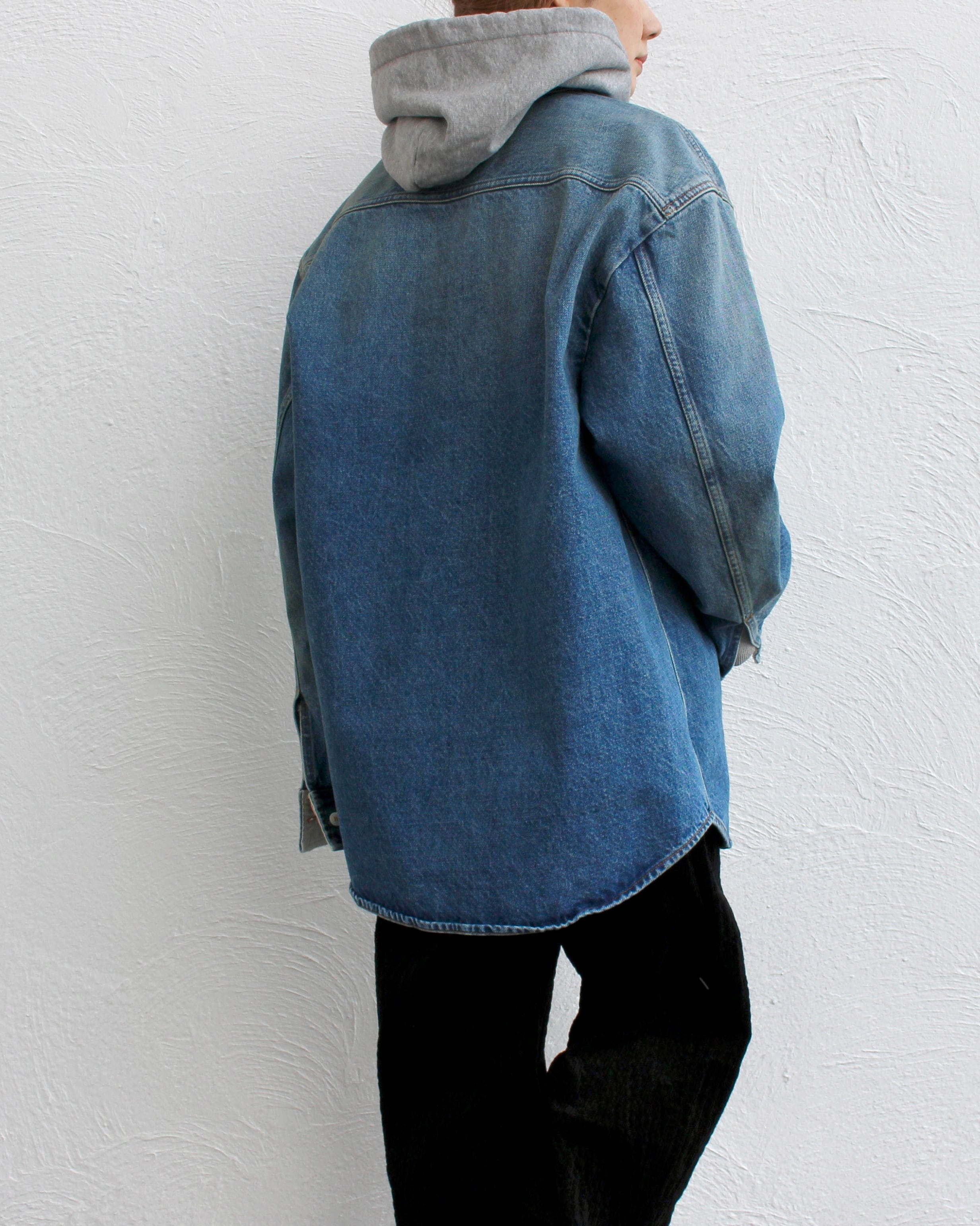 ざっくりとしたシルエットは、パーカーにざっくりと羽織るもよし、