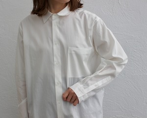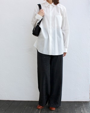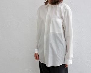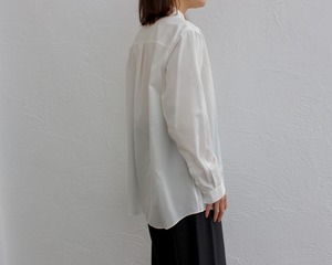 シルクの柔らかく上品な光沢感と綿のカジュアルさを兼ね備えたスタンドカラーシャツ。