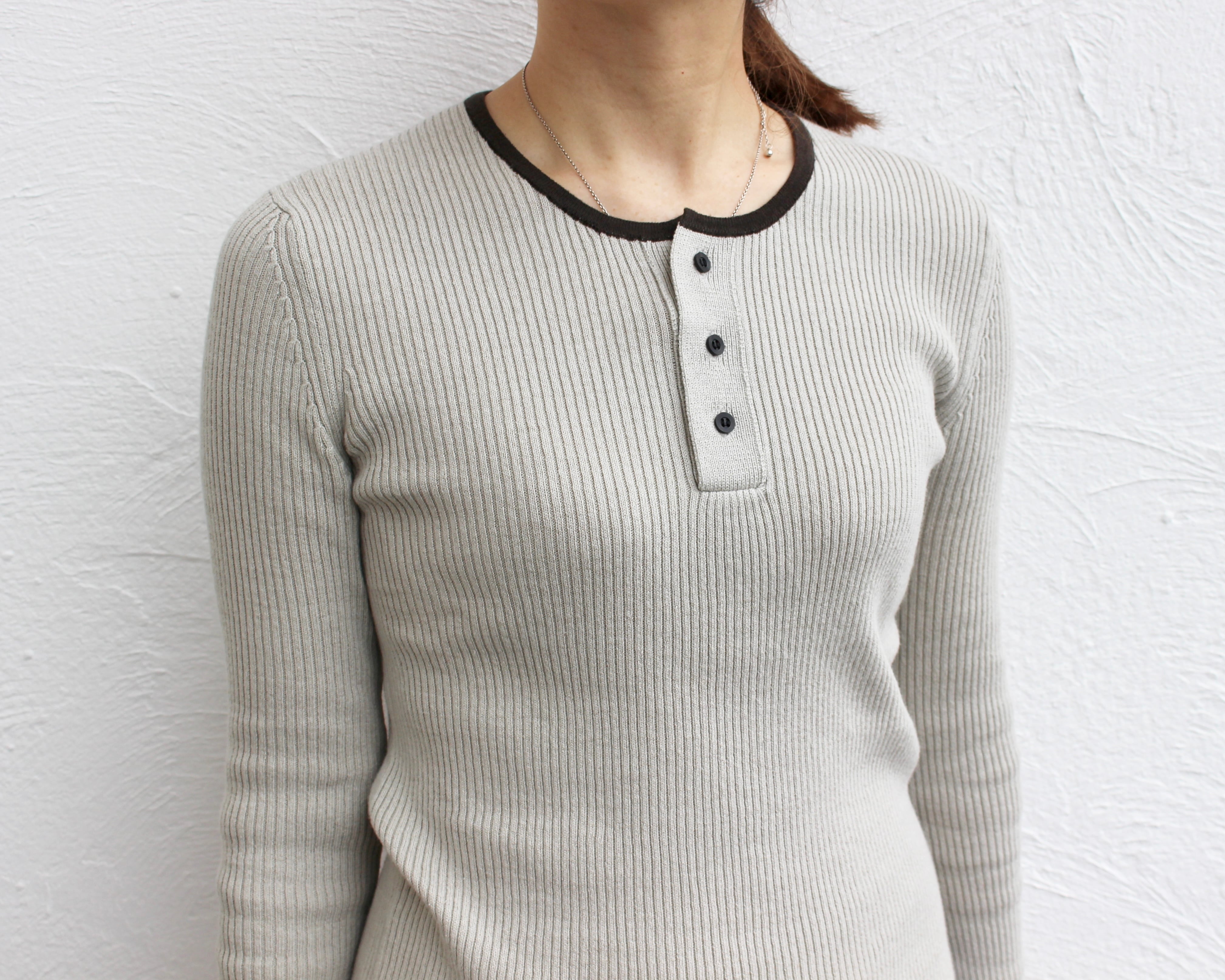 綺麗な首秋のヘンリーネックをリブですっきりとしたシルエットに仕上げることで、