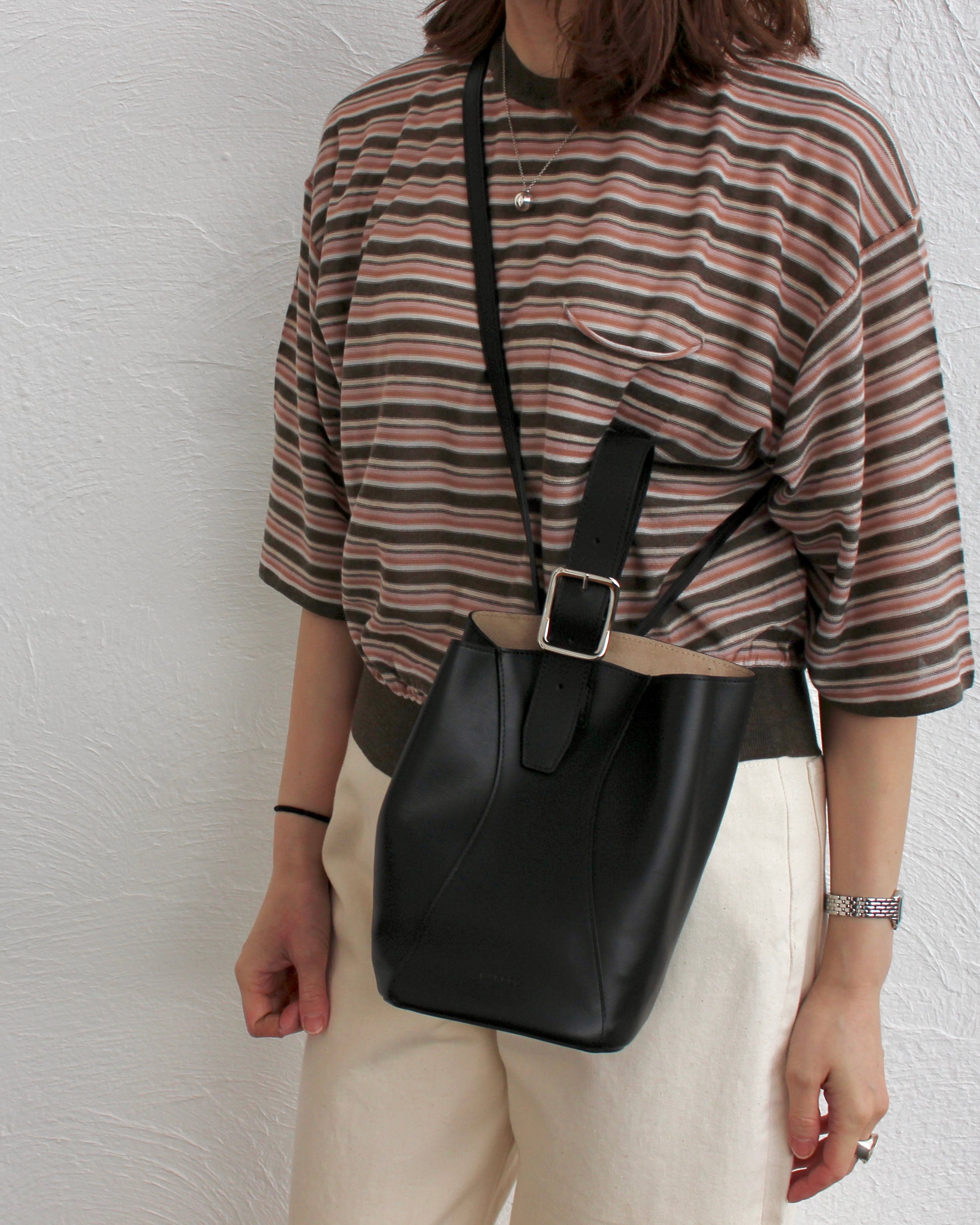 必然性のあるもので構成されたミニマルなデザインとを掛け合わせた、洗練された印象のバッグ。