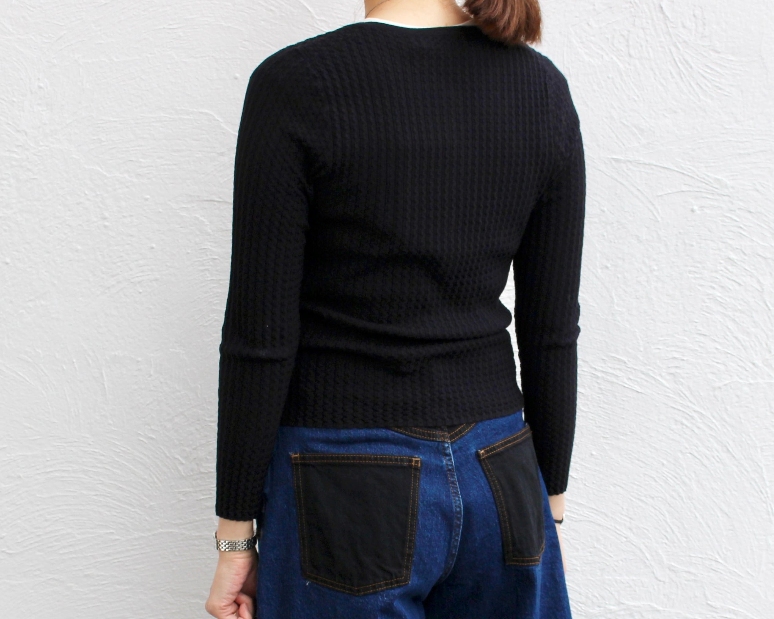 モックネックのウェイビーリブカーディガン。