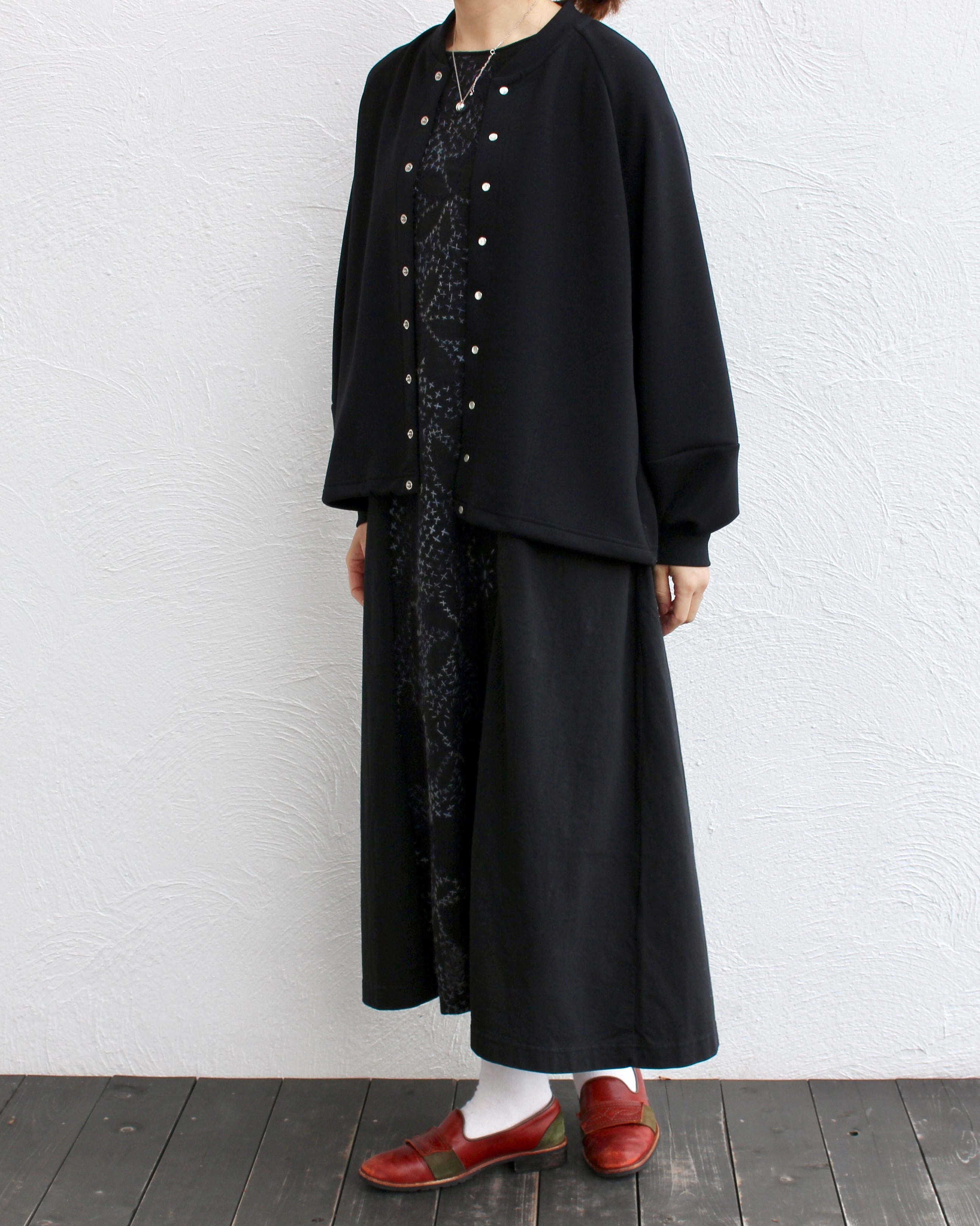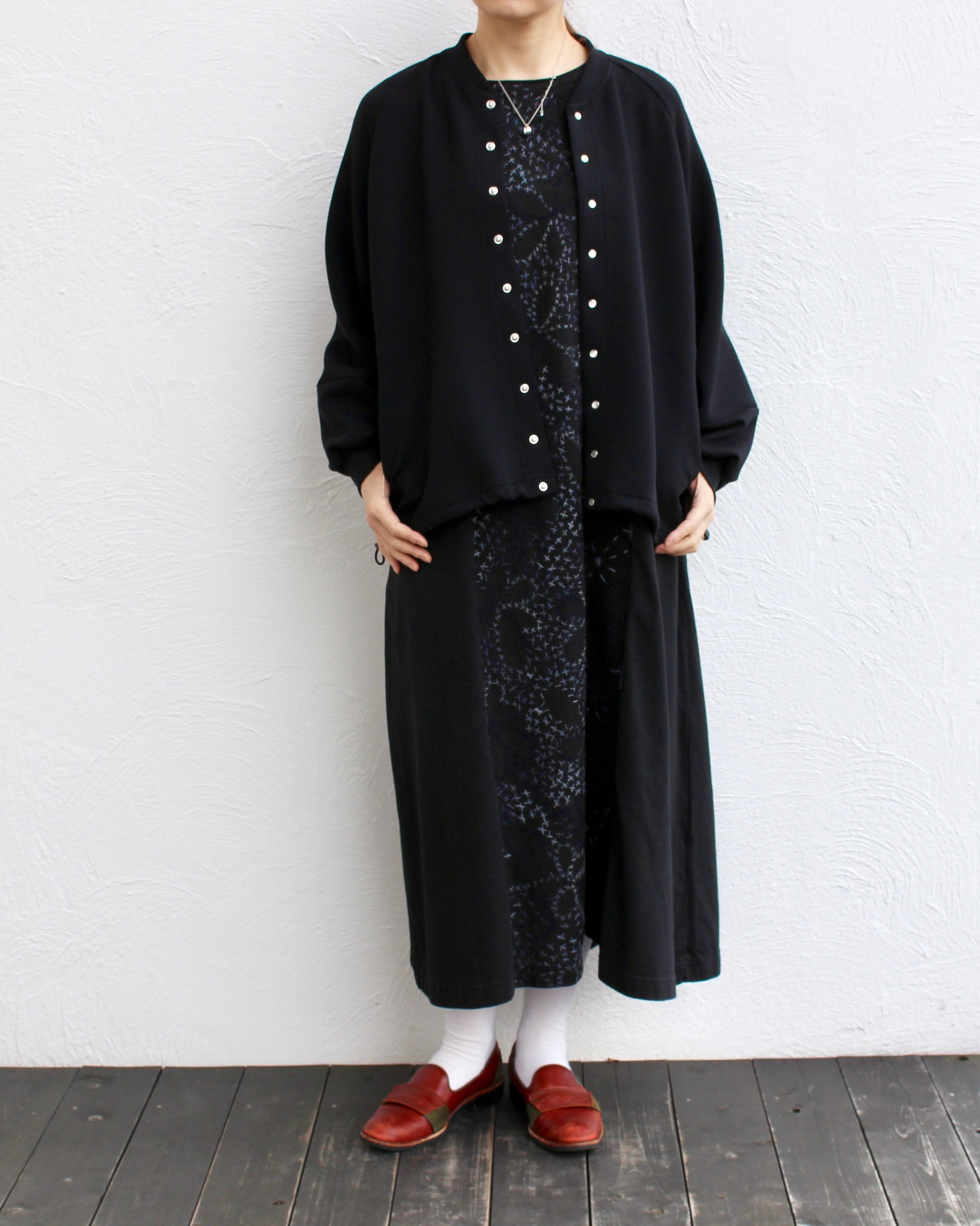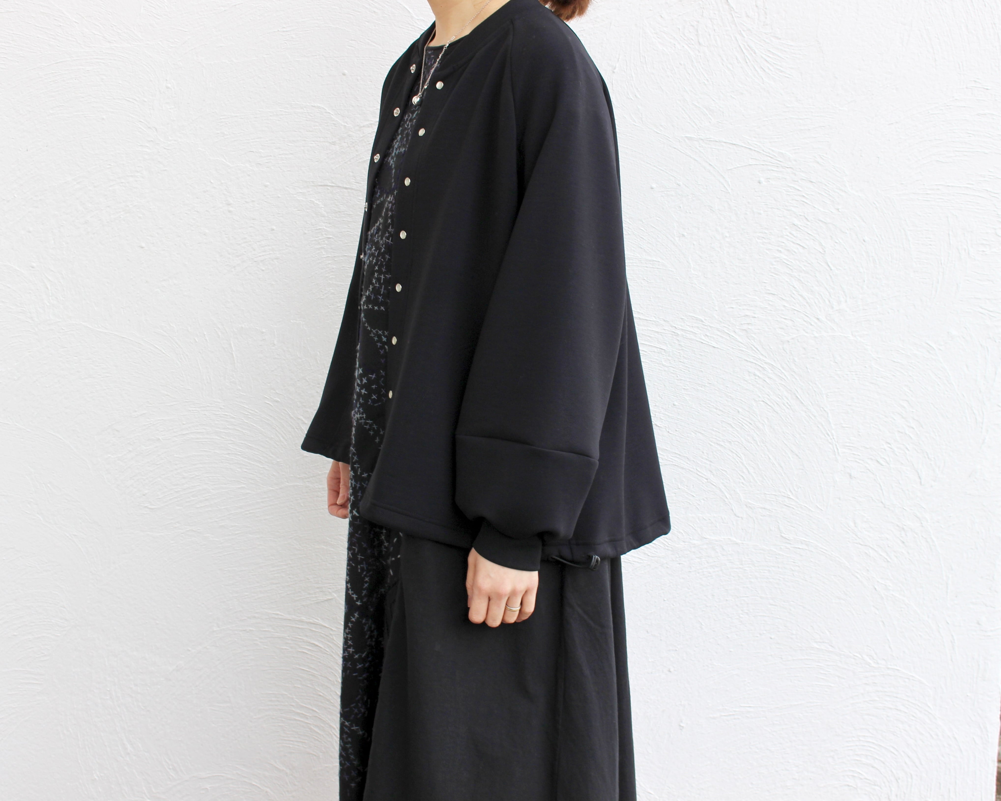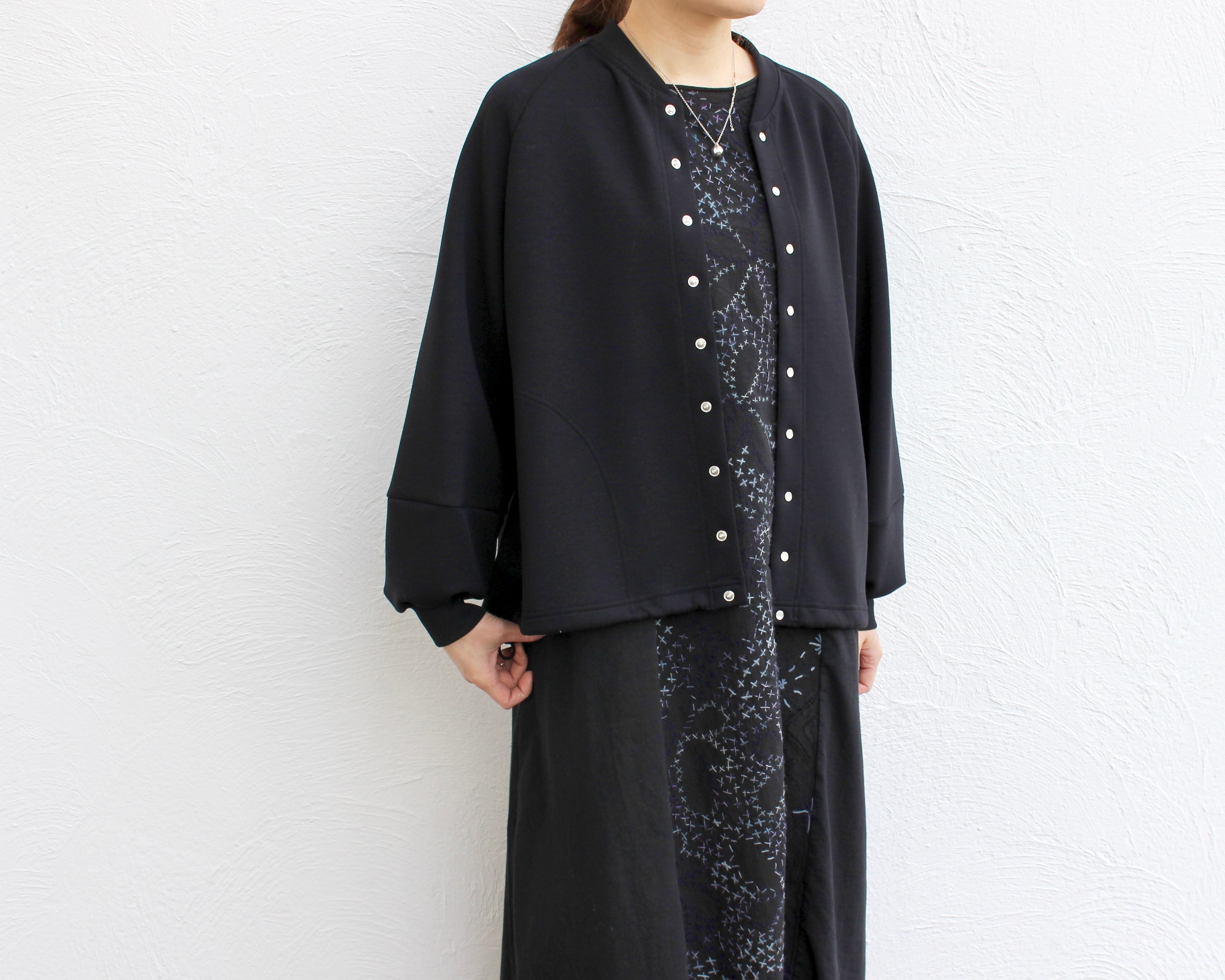 たくさんのスナップボタンがアクセントのブルゾンは、