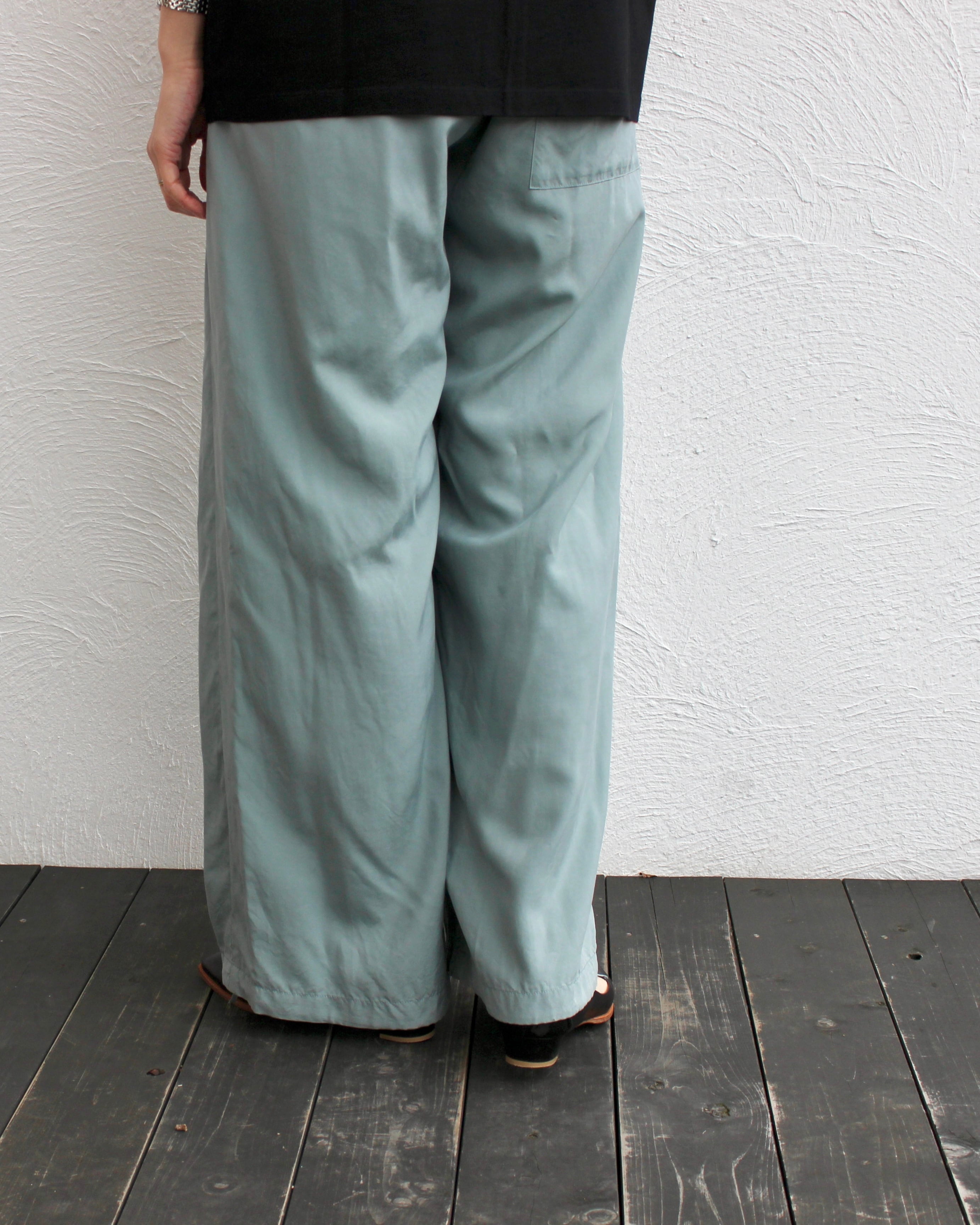 質感の異なる糸を交織することで生まれたブランドオリジナル素材のシルクスエード生地を