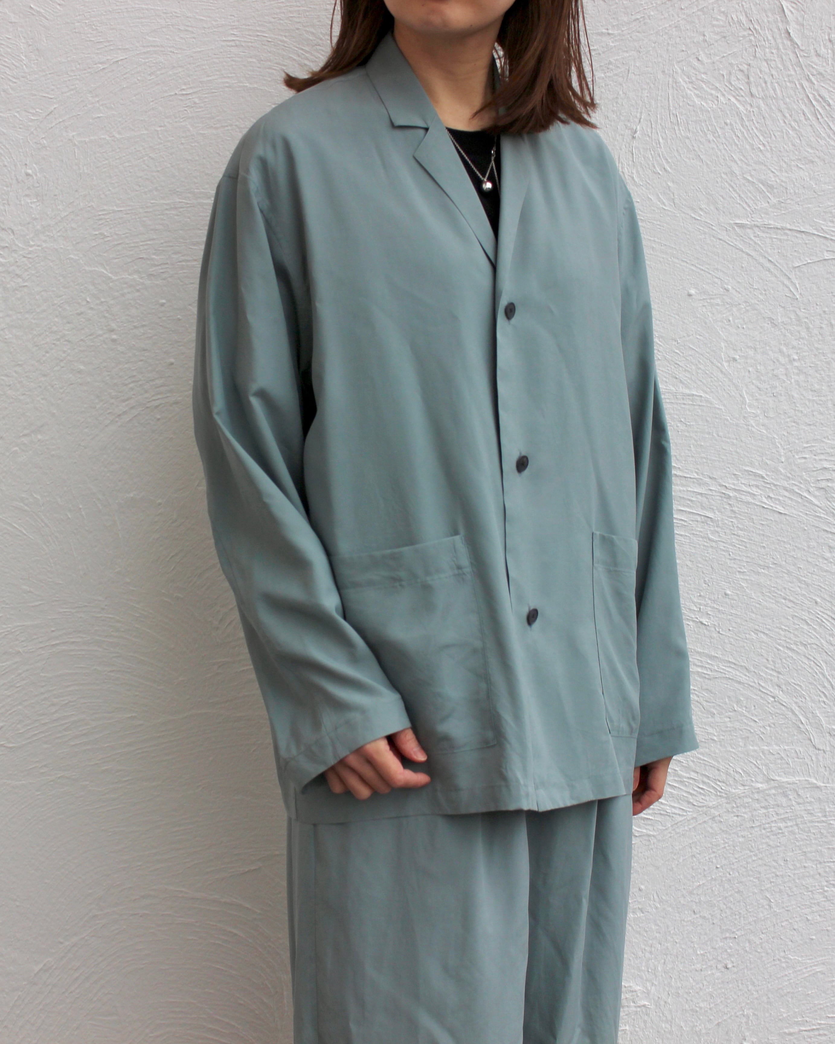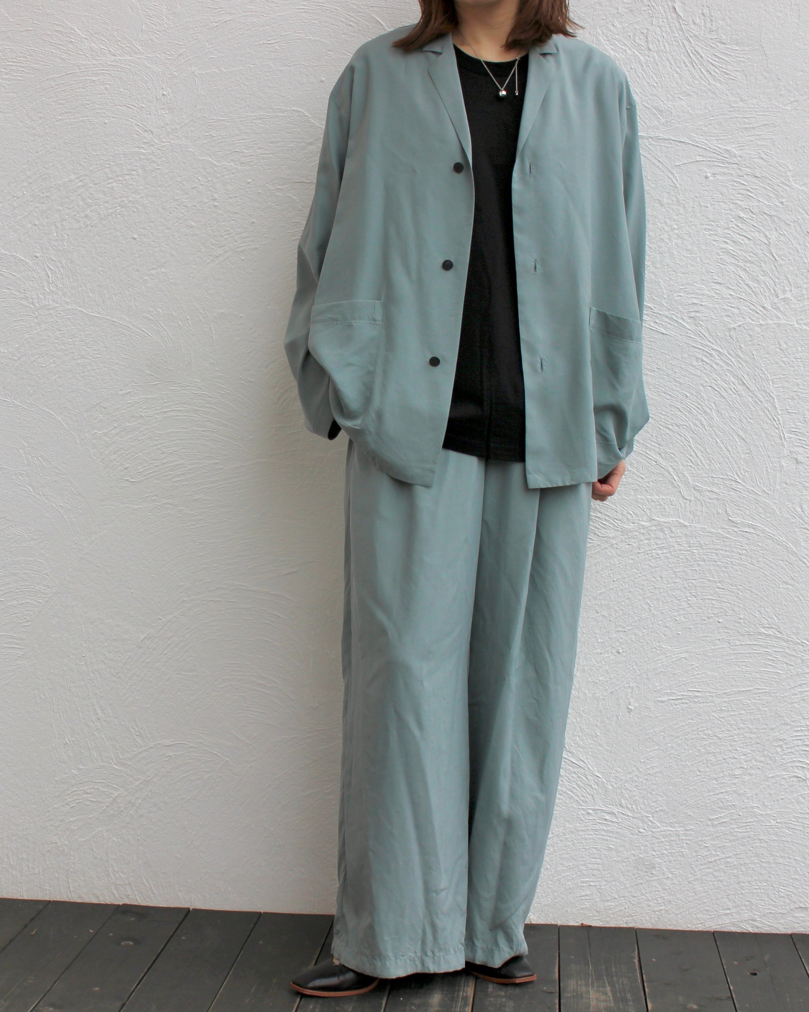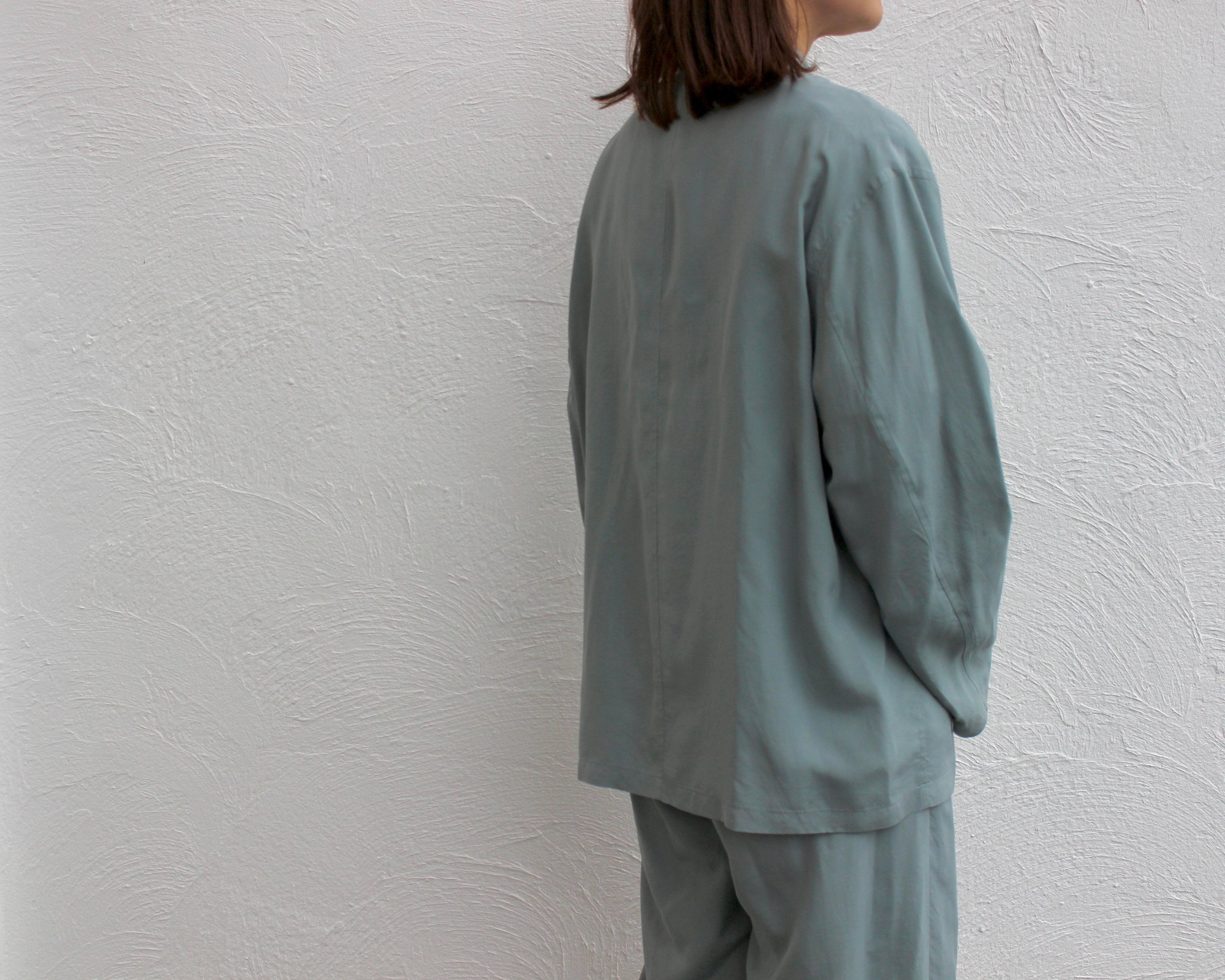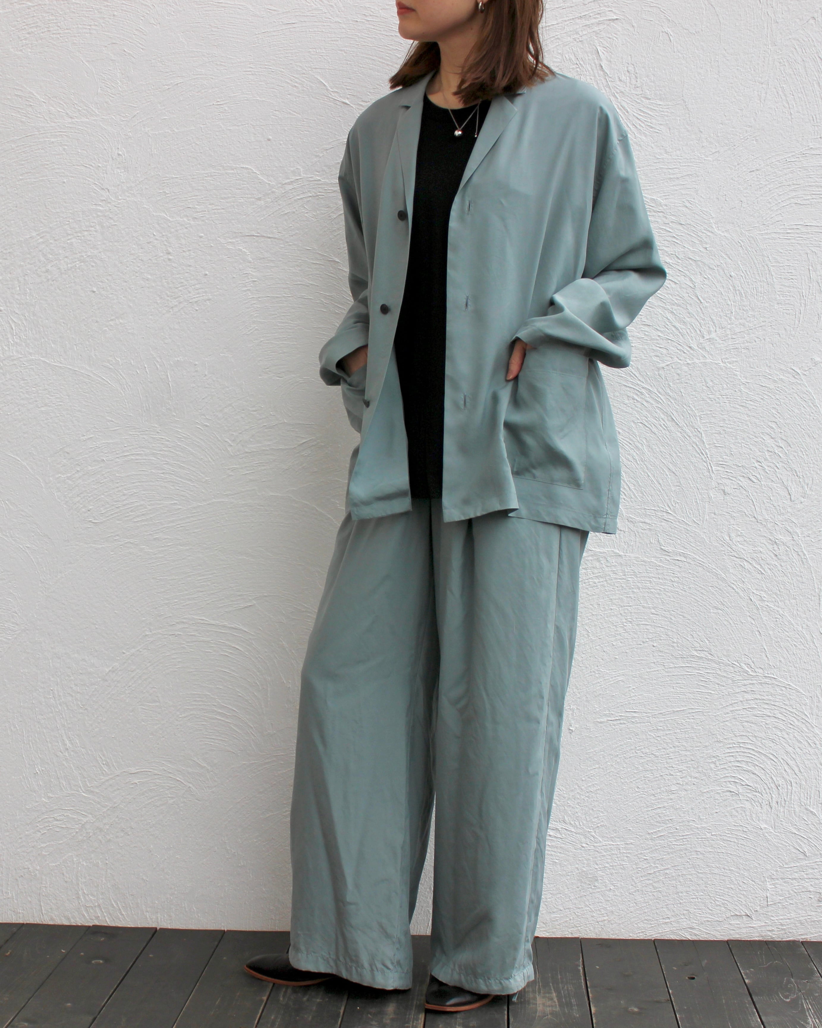 質感の異なる糸を交織することで生まれたブランドオリジナル素材のシルクスエード生地を