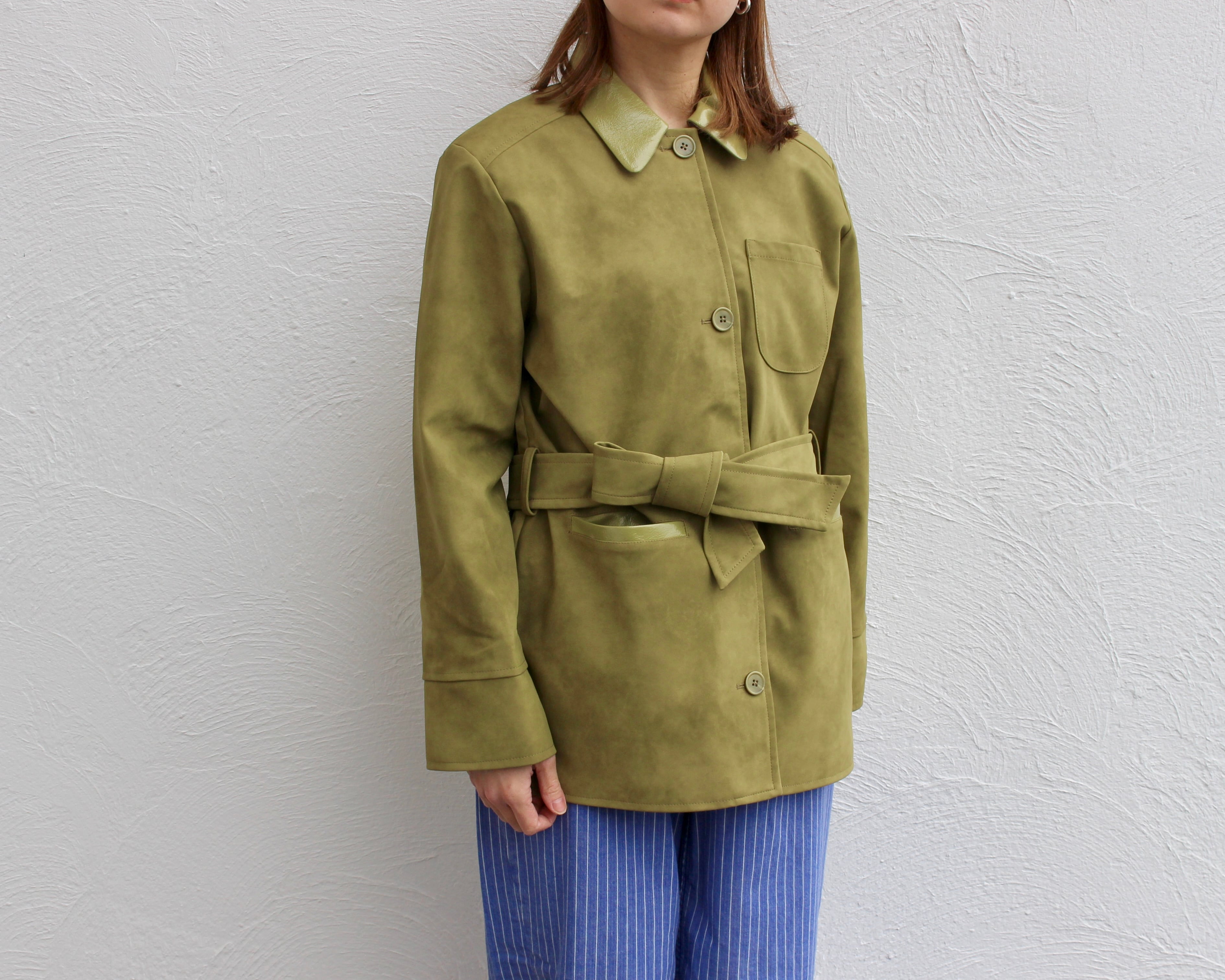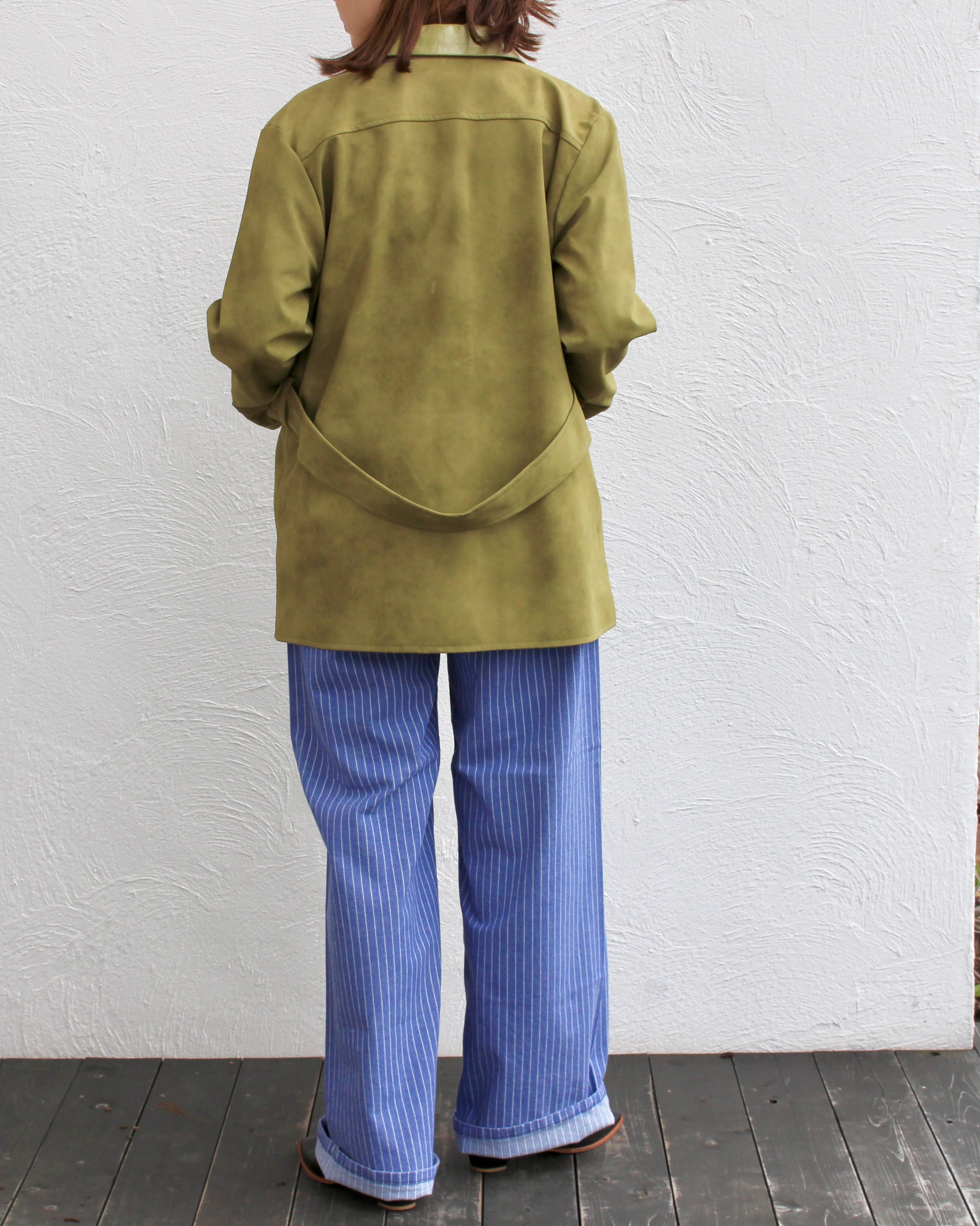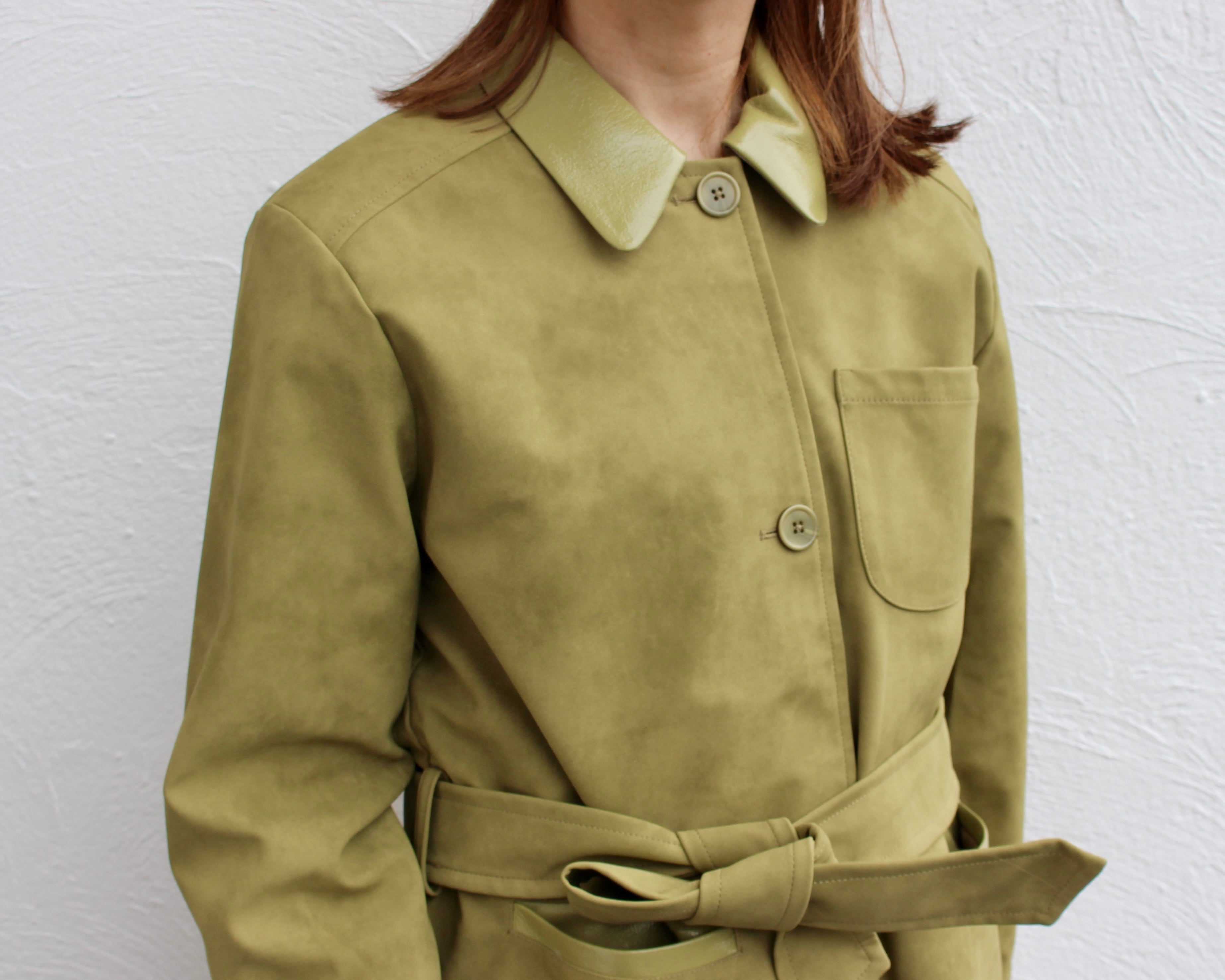 ウエストベルトをあしらっており、スッキリとした着こなしも◎。
