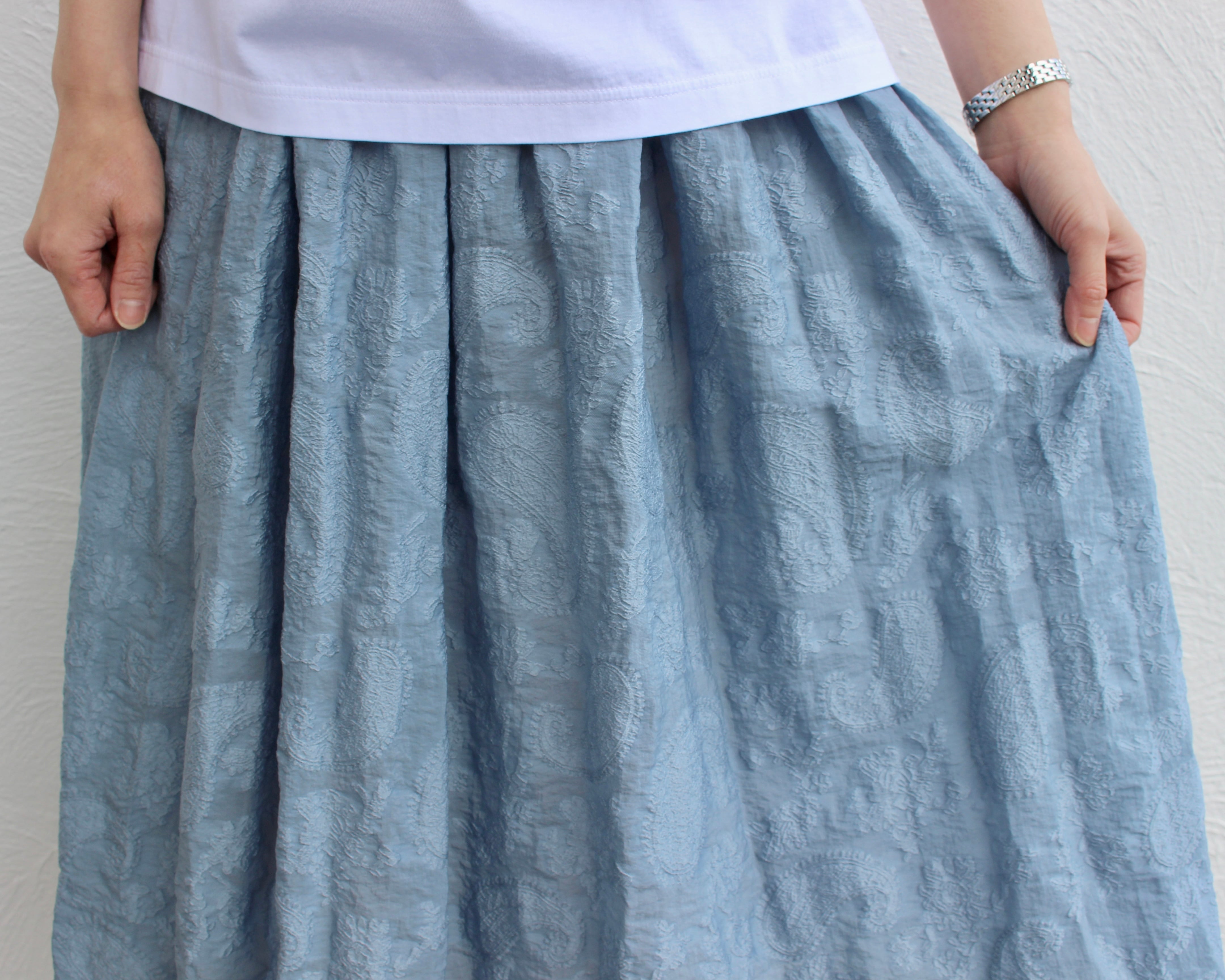 ペイズリーのジャカード織生地はシアーな光沢感が涼しげで華やかなデザイン。