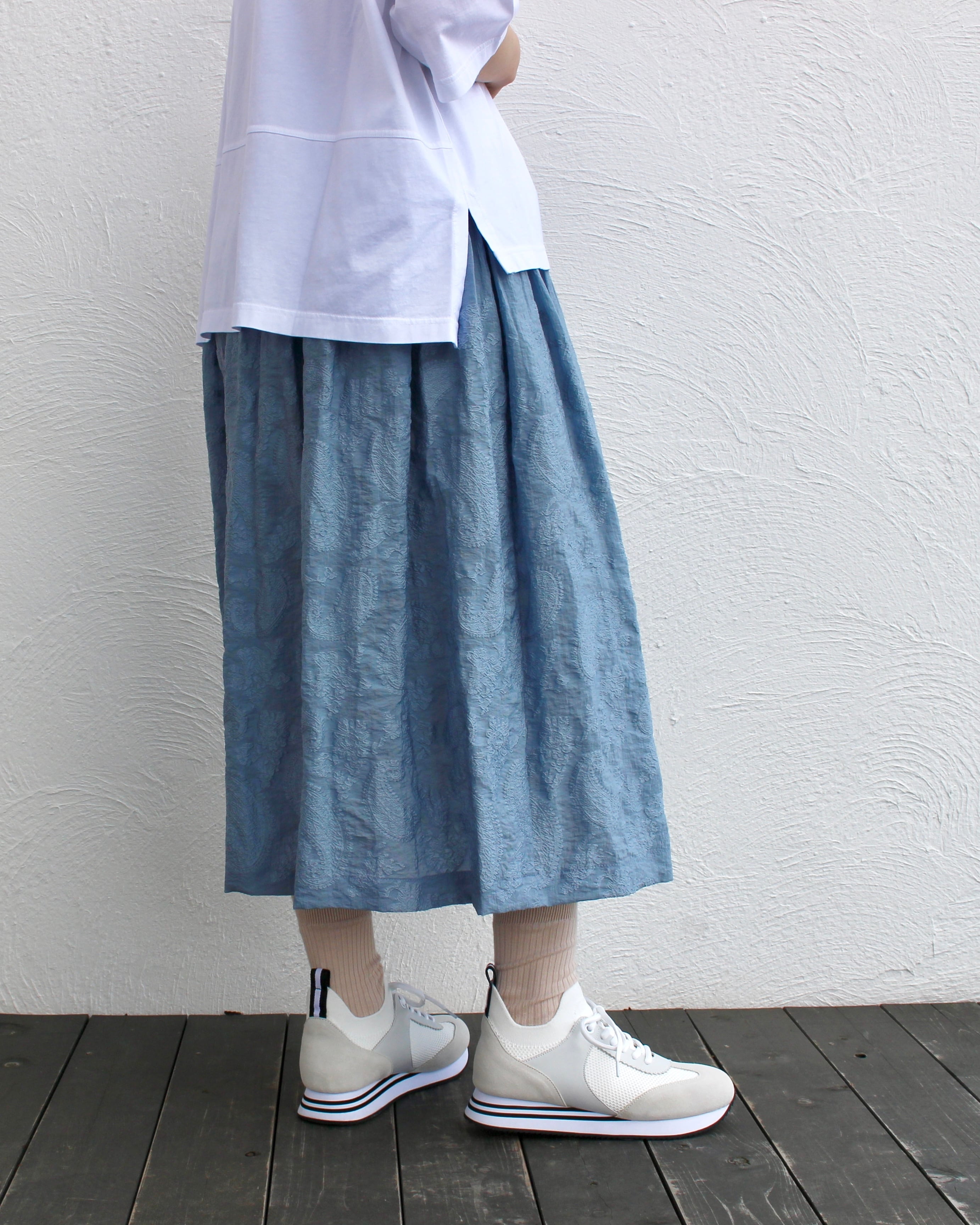 ブラウスに合わせたフェミニンな着こなしはもちろん、