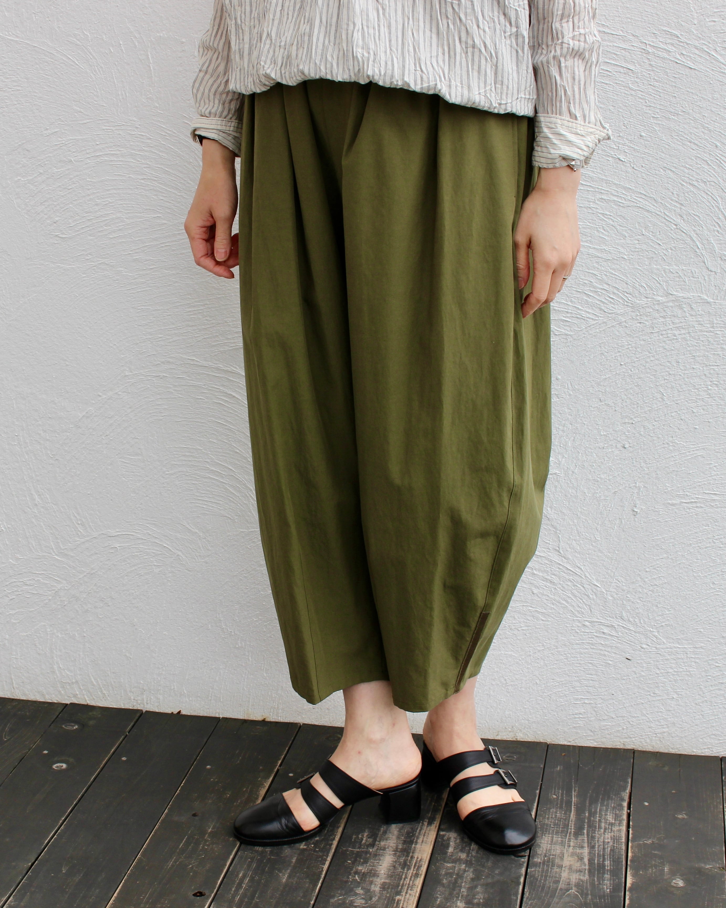 ウエストがゴムで、軽くて履き心地の良いコクーンパンツ。