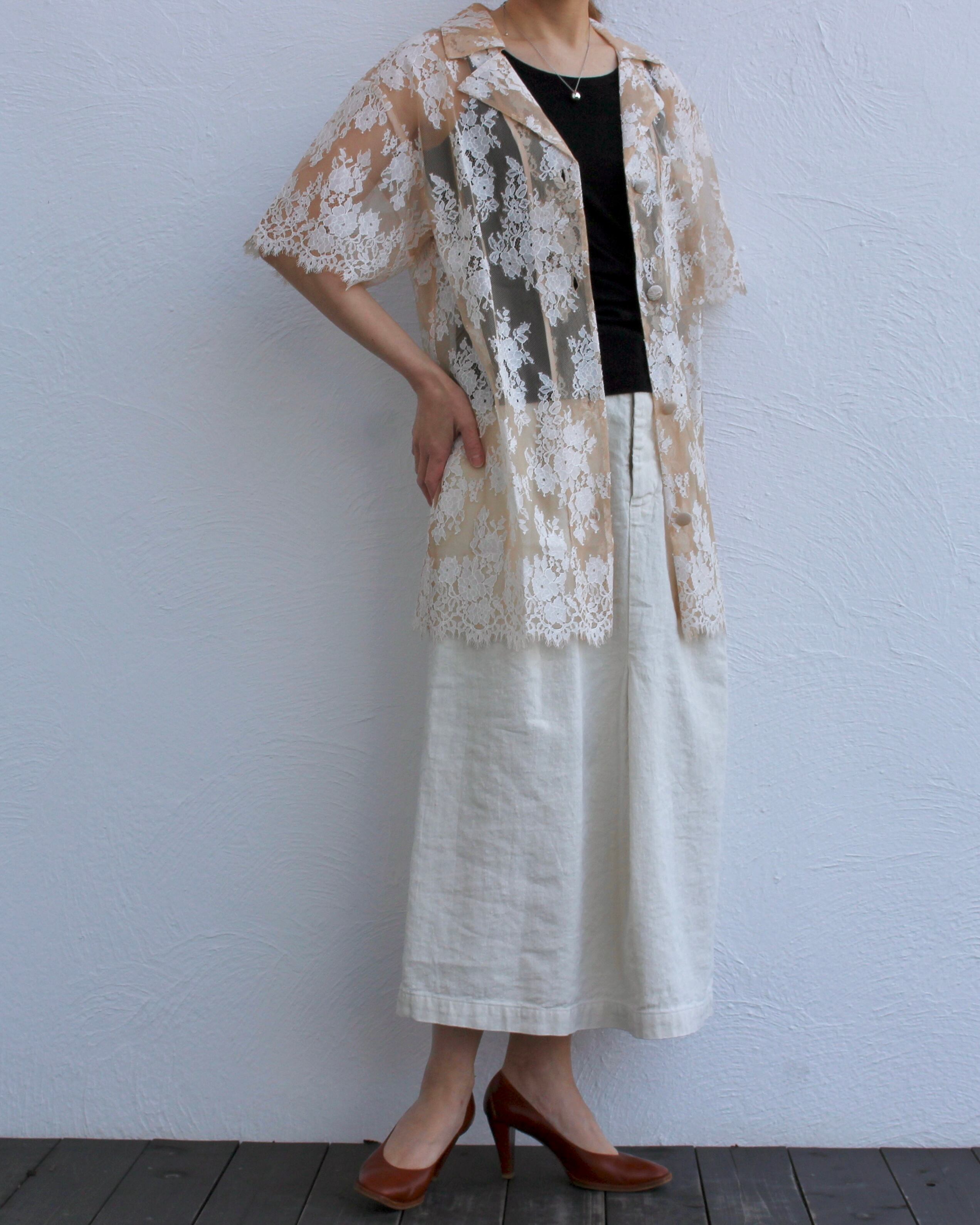 シンプルなタンクトップやTシャツに羽織ると一気に華やぎ、おしゃれな印象に。