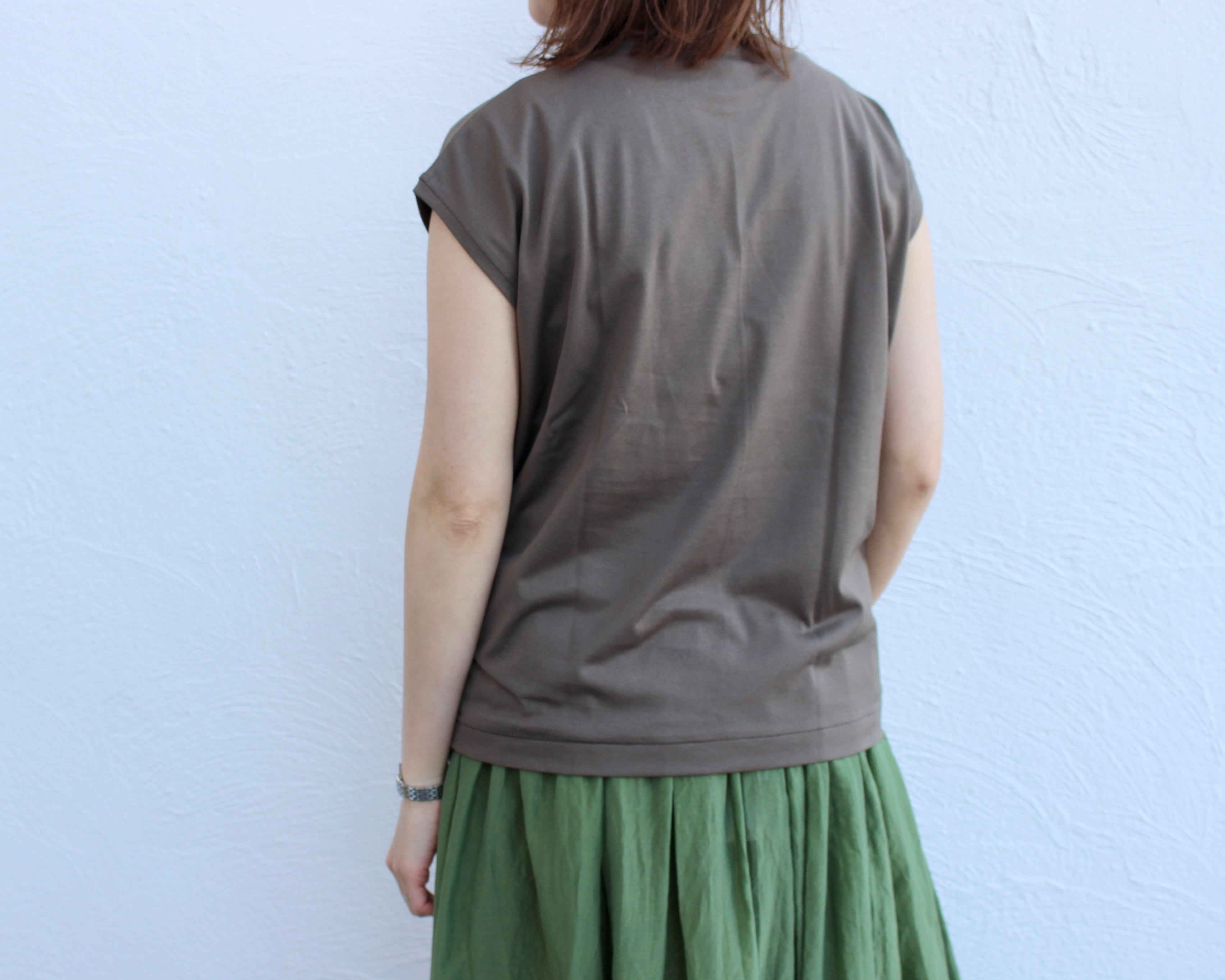 光沢感と肌触り、しなやさを兼ね備えたクルーネックのスリーブレスTシャツです。