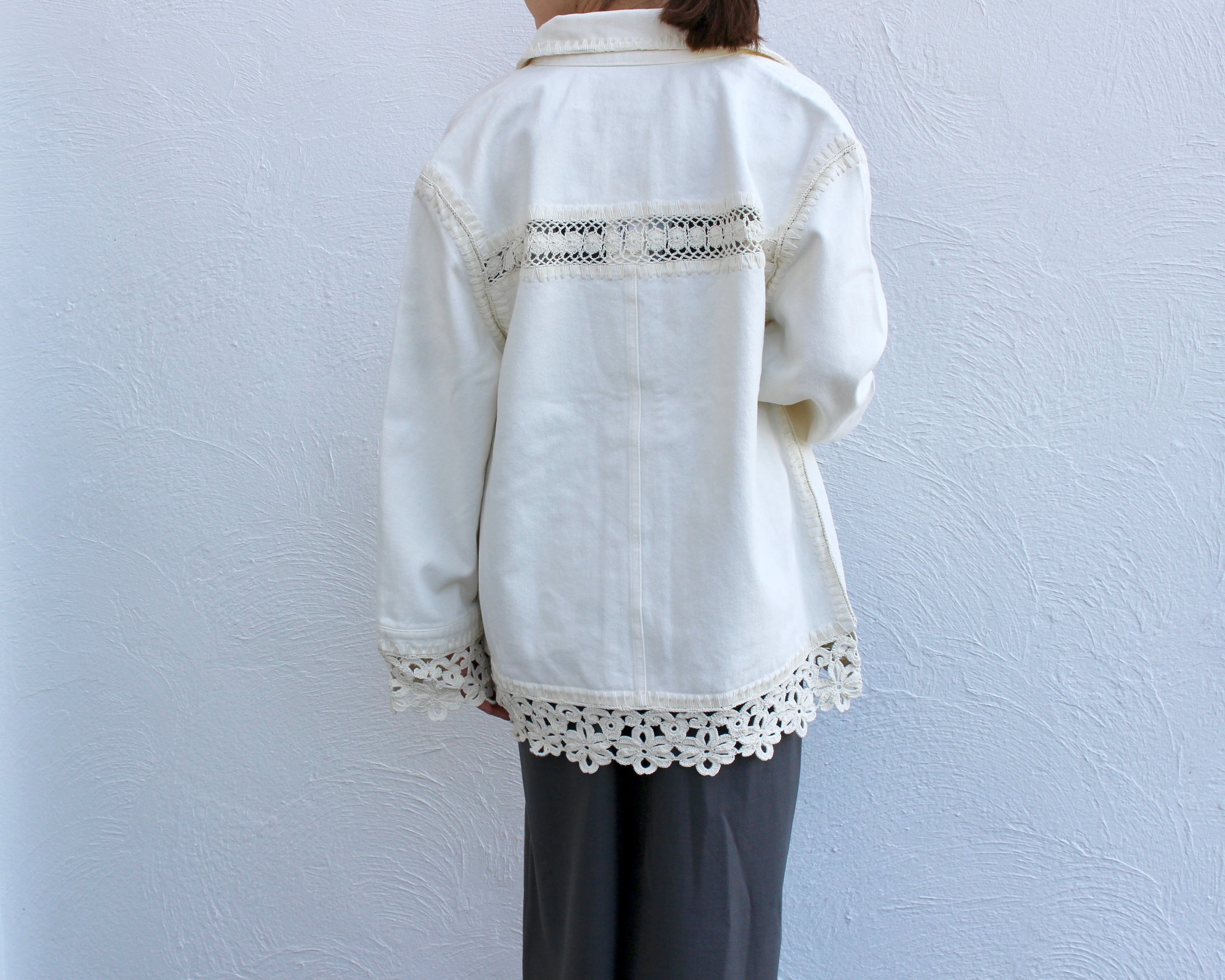 袖口と裾にあしらわれたアイレットディテールがフェミニンな印象に。