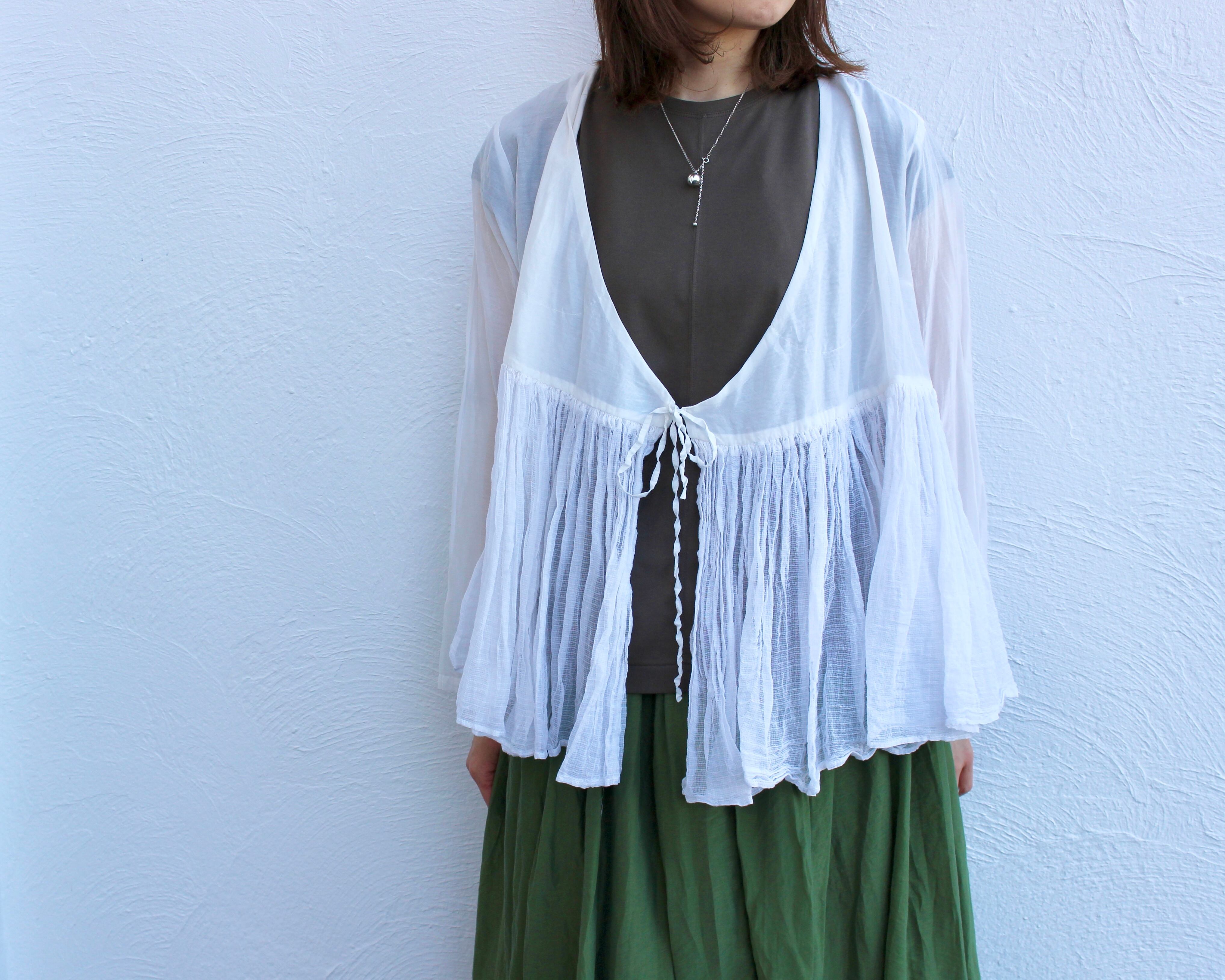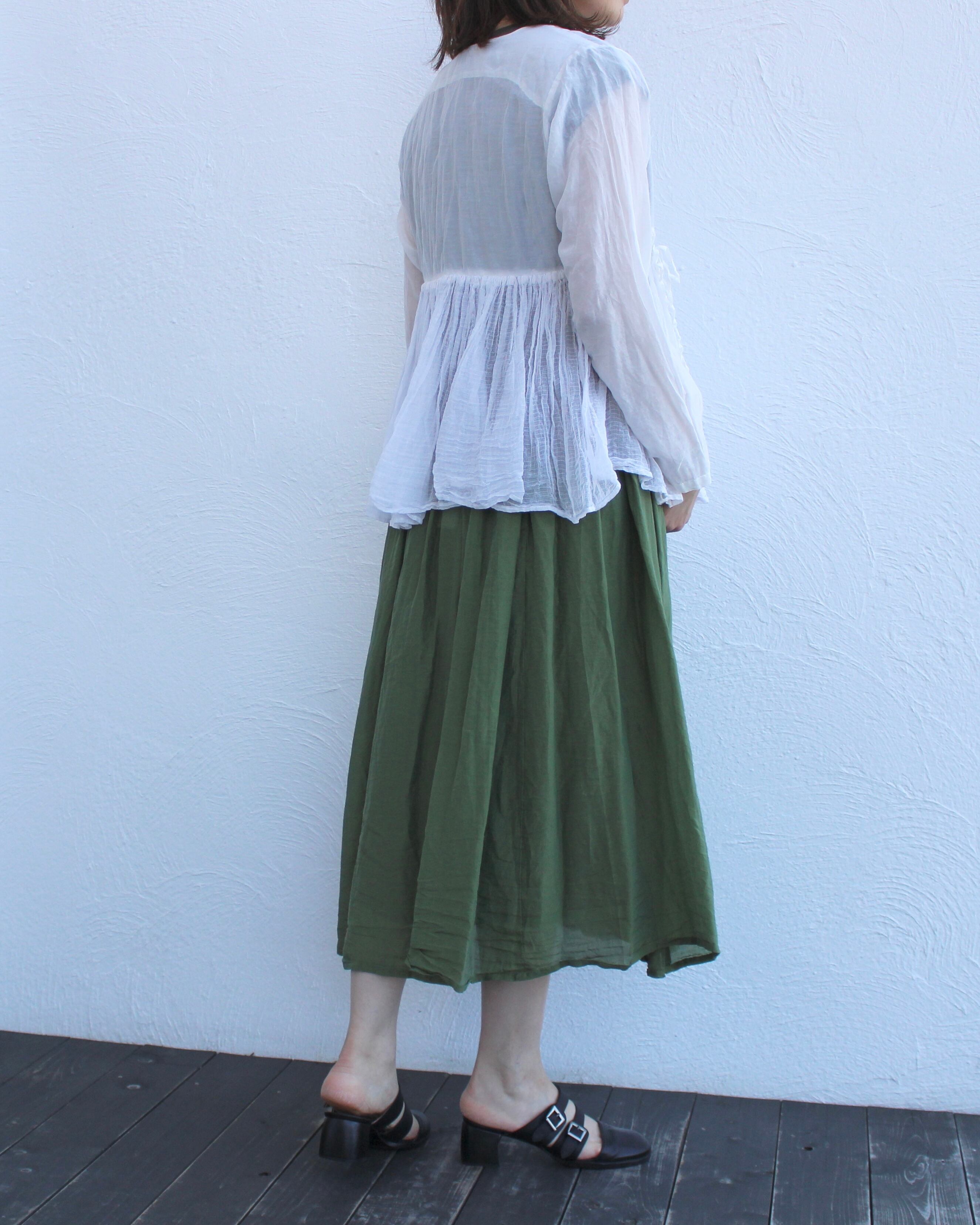 切り替えから下部分はコタチェックと言われる透け感のある格子柄素材をマテリアルミックス。