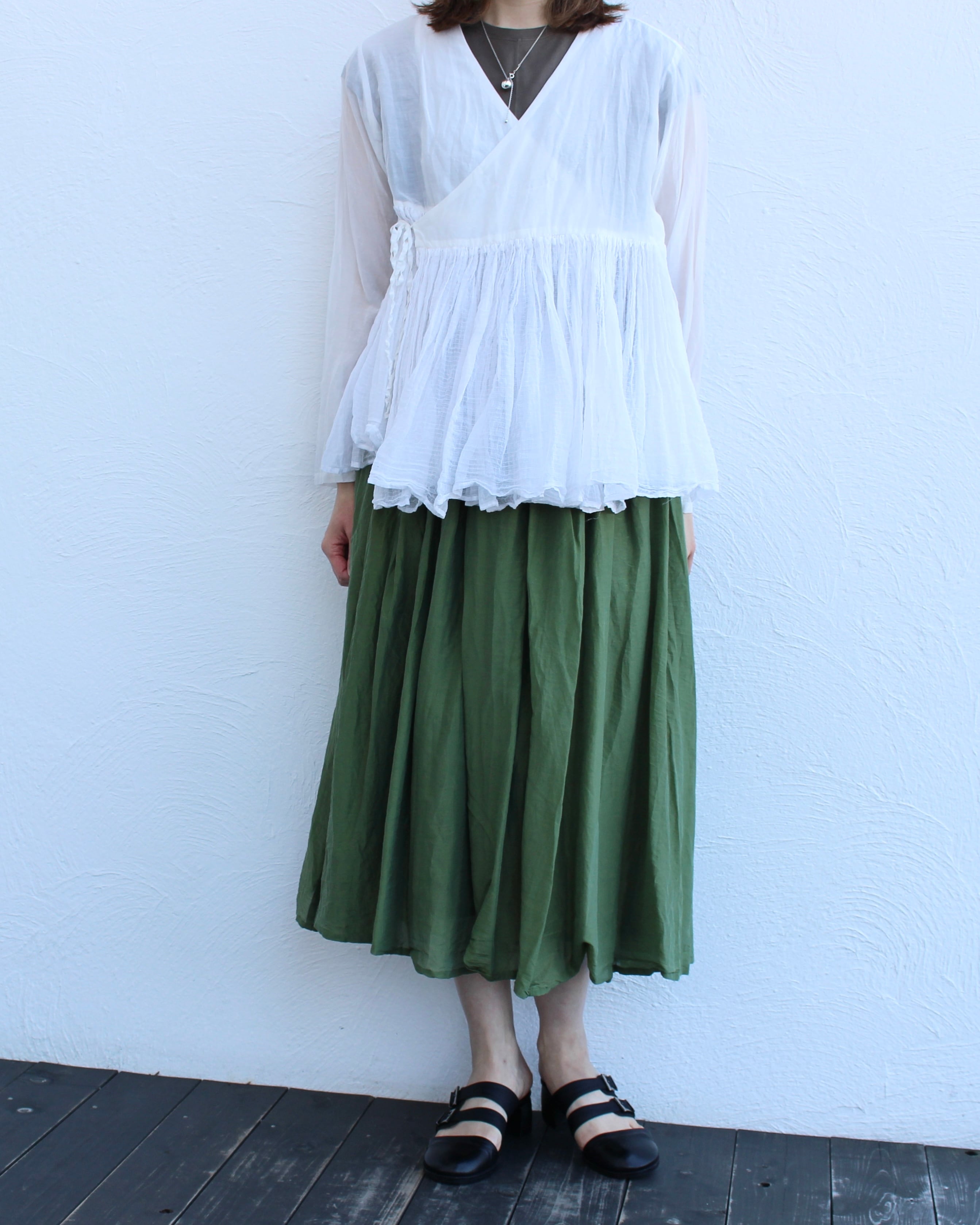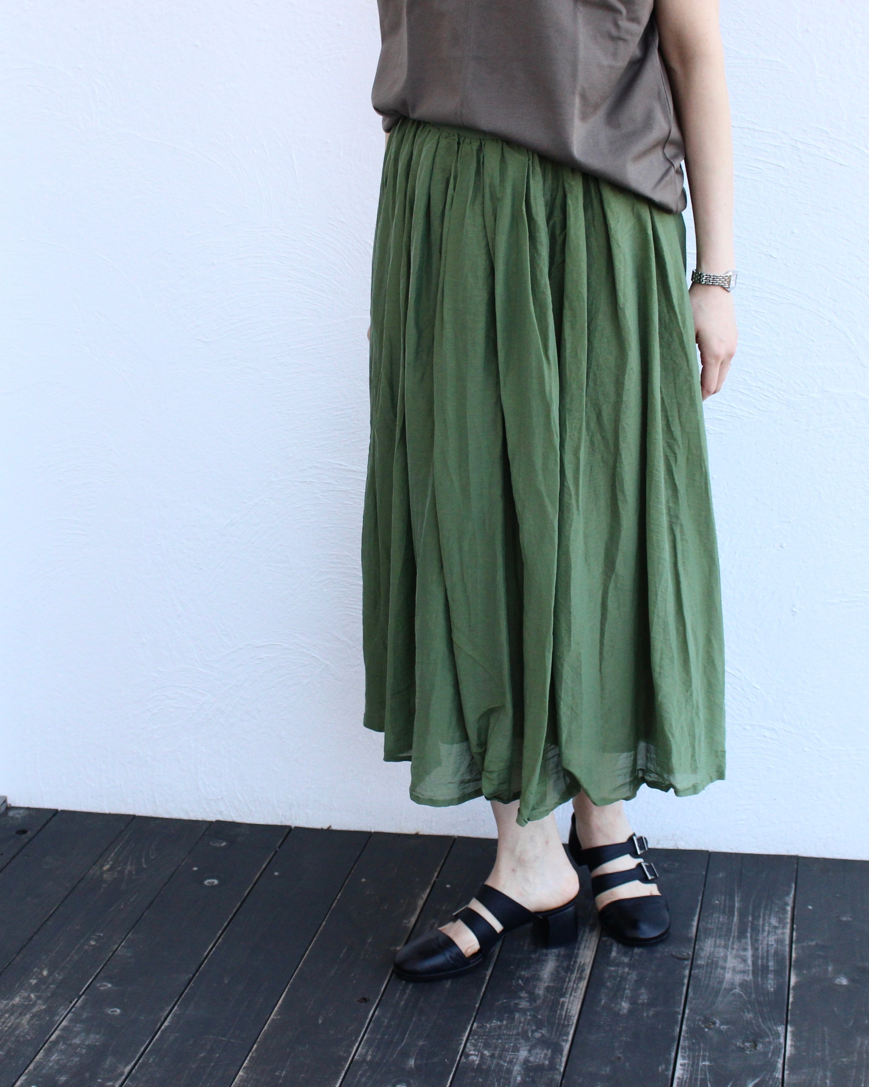 ボタニカルダイで染め上げた、タックギャザースカート。