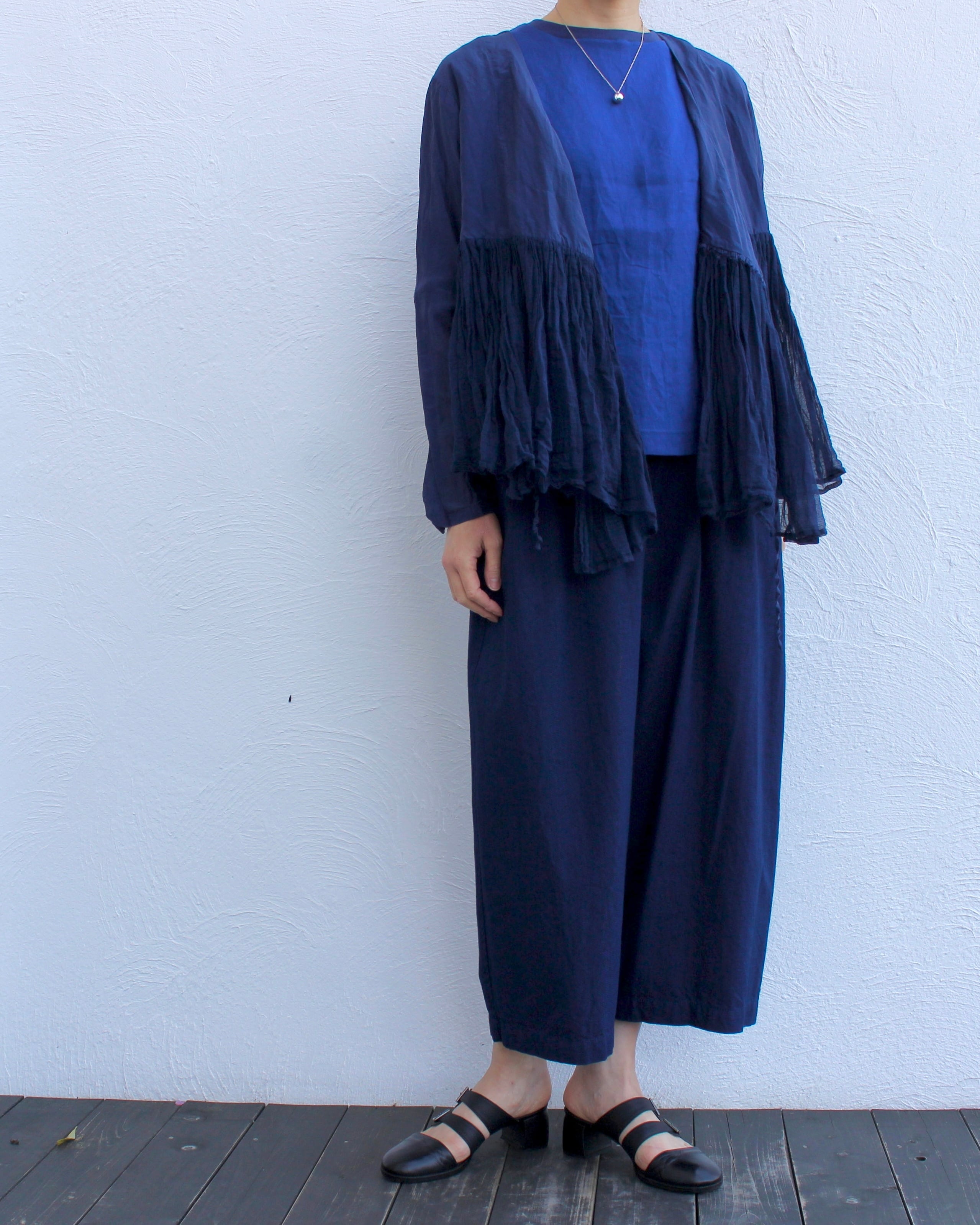 折模様に奥行きがあり、Tシャツなどの軽いアイテムでもカジュアルに見えすぎないデザインです。